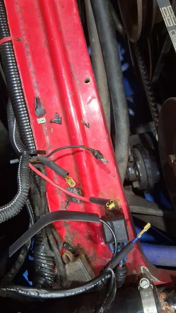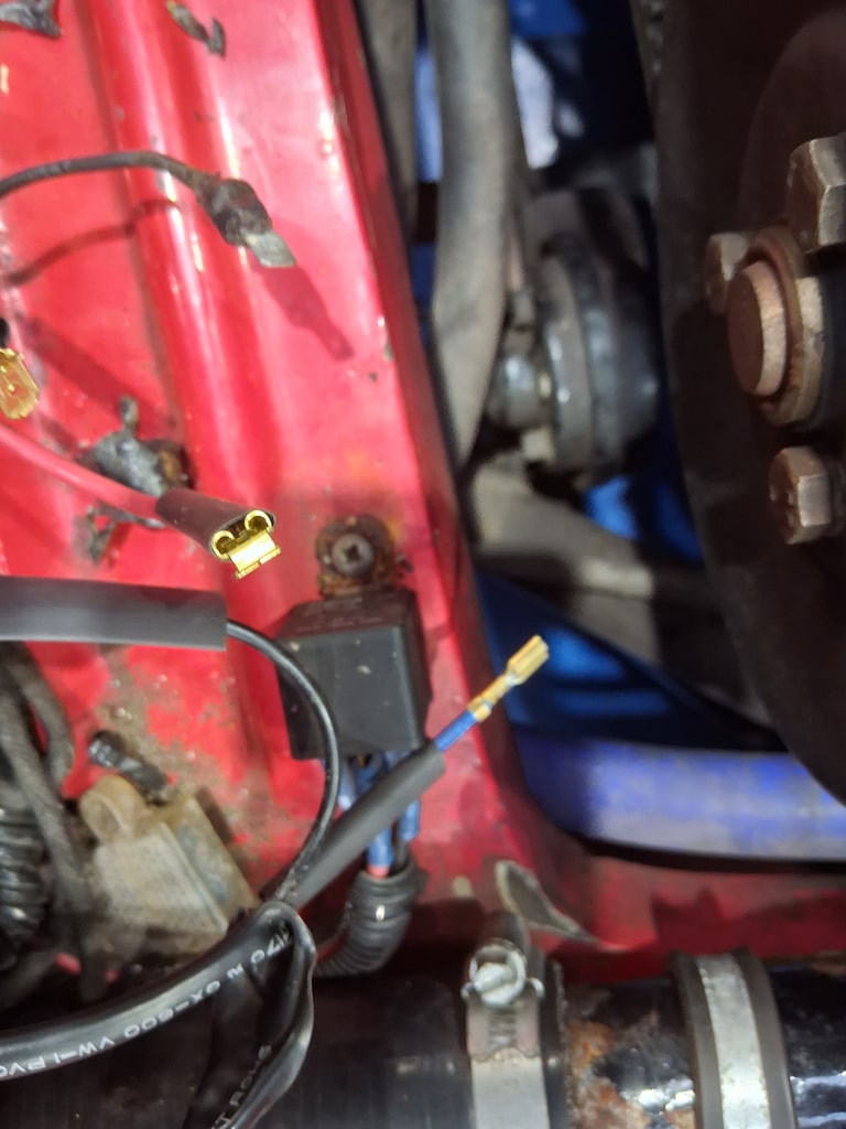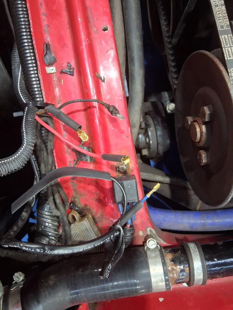 ”We ran the car up to temperature and weighted for the fan to cut in. After a while with the fan not cutting in as we would have liked we investigated the cause of the problem. The power supply and relay operation was okay and the fan worked when the relay bypassed. The wiring and connections were checked and found to be corroded. The terminals where then replaced and the system was then rechecked and found to be working okay.”