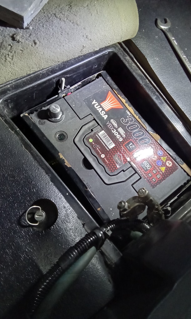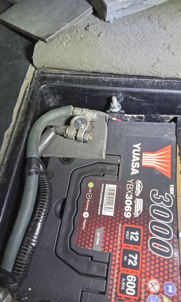 ‘Remove battery terminals and fit battery clamp. Secure and fit foam piece to protect positive terminal from touching clamp. Secure both terminals and refit cover. Run up and check/top up automatic gearbox. Check front suspension top mounts for camber adjustment.’