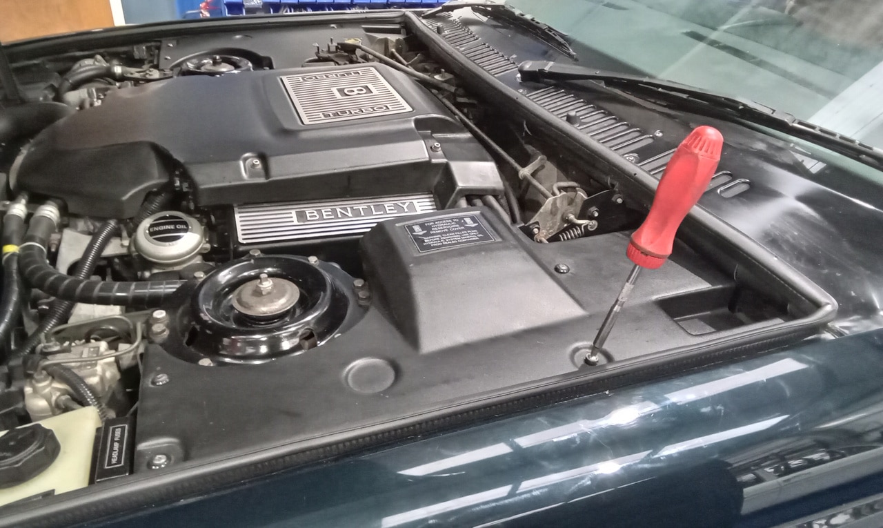 After checking over the 90’s Coupe, our technician Jon has set to work on carrying out the various repairs around the 1996 Bentley Continental R here at the Bridge Classic Cars restoration workshops. In the checkover, Jon noticed that the rear caliper had several issues – so a new one was ordered and once it arrived he could get to work on making sure this luxury land yacht can stop as well as it goes. And then, it was moving onto the other list of repairs to be carried out to get this luxury icon back to as good as new.