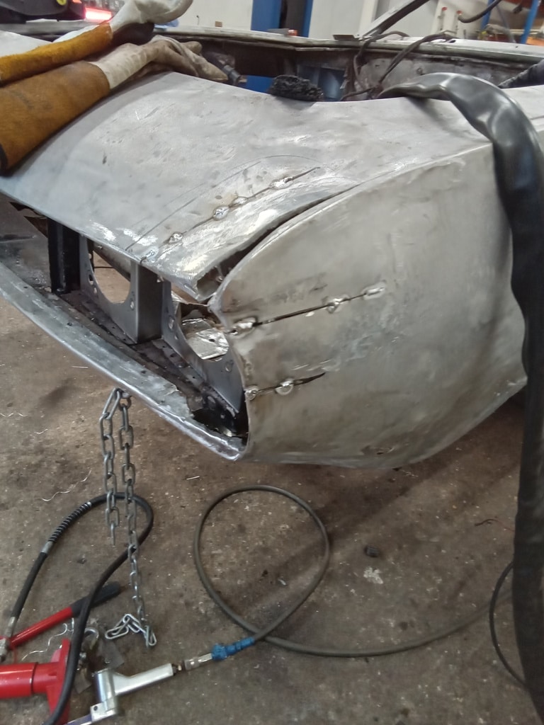 The fabrication shop have been working steadily on the 1970 Aston Martin DBS, this time our technician Greg has been adjusting the appeture that frames the front grille. Greg has made a template of the cars grille that we have, but it wouldnt fit as it should.