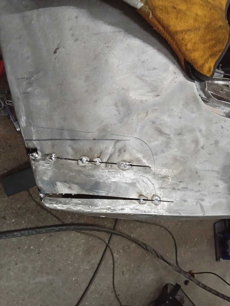 To get the piece to fit, Greg has had to cut and section the area to gently manipulate the area in order to get the template to fit flush and evenly into the bodywork.