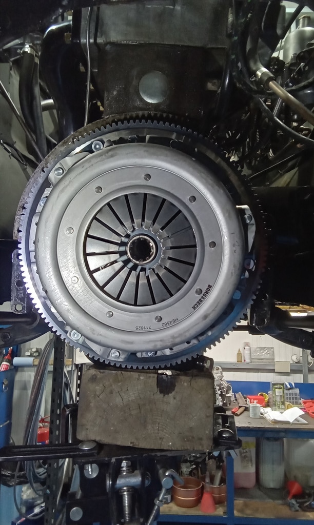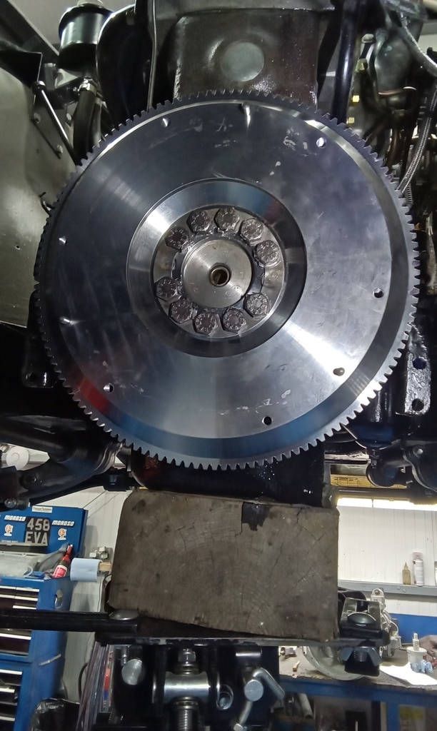 Jon strip down the bellhousing to fit up the new and modified release bearing along with its mount, Then, Jon could carefully remove the old flywheel, swap it in for the new one and go through the process of torque up with bolts before finally knocking over the locking tabs. However, when it came time to fit the new clutch Jon discovered the wrong unit had been recieved.