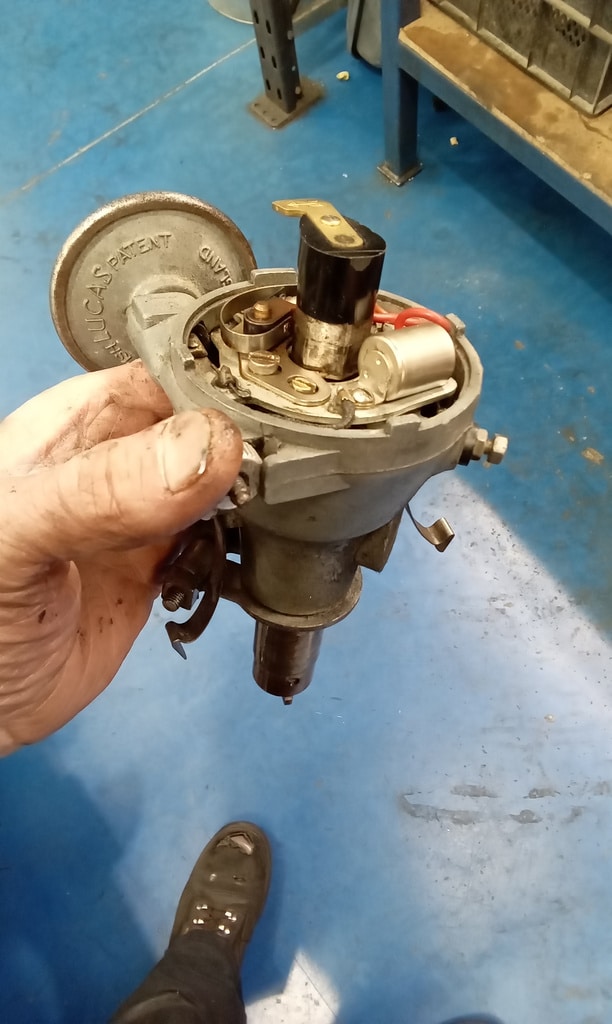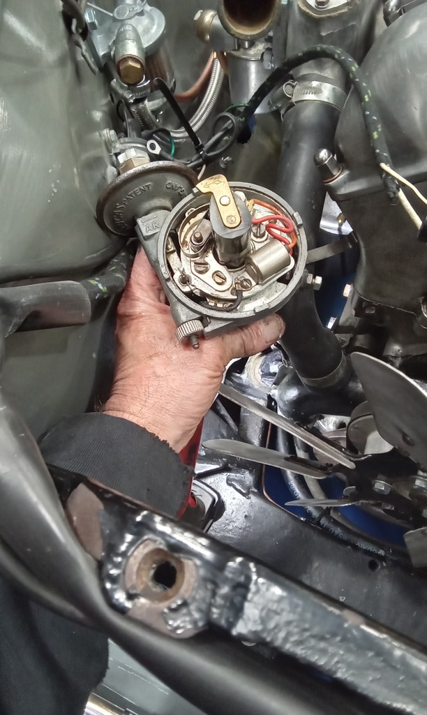 With the engine at TDC on cylinder 1, Jon could remove the old distributor ready for a new unit to be put in its place.