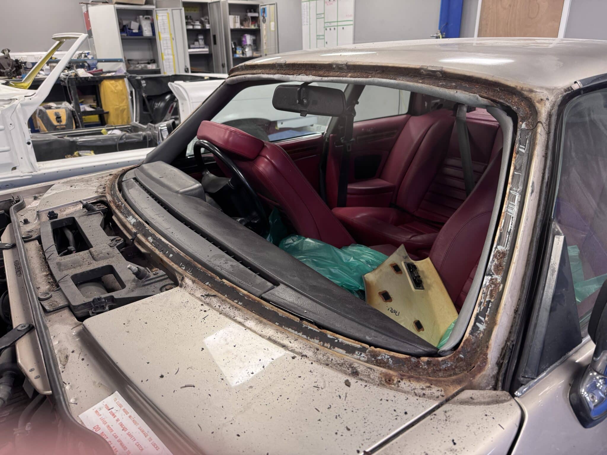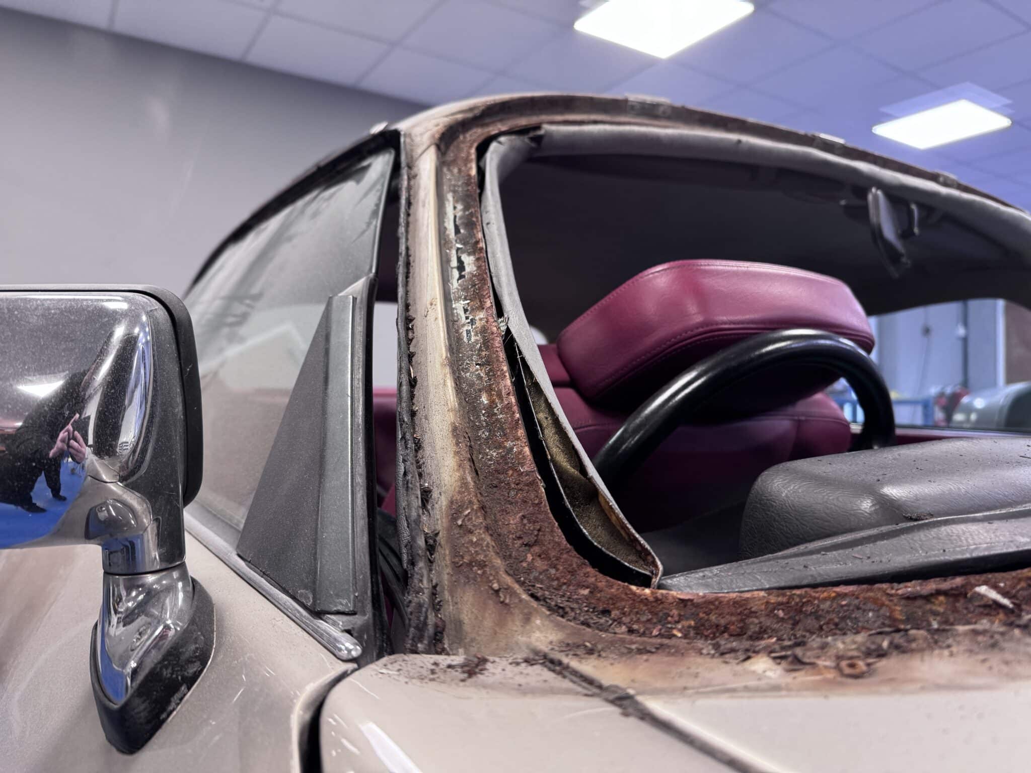 As part of this, the team have had the front and rear screens from the car removed and put into storage not only because it allows the team better access to paint but also behind the screens tend to be where corrosion hides.