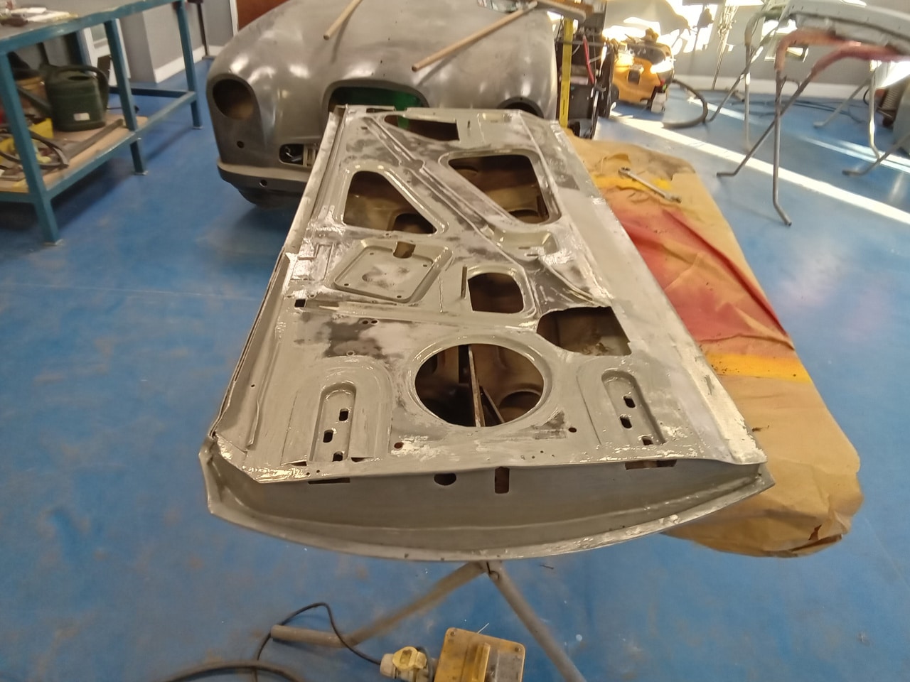 Bridge Classic Cars paint and body manager Chris has been working through the various parts and panels alongside our paint and body technician Mauro who has been busy prepping each individual piece.