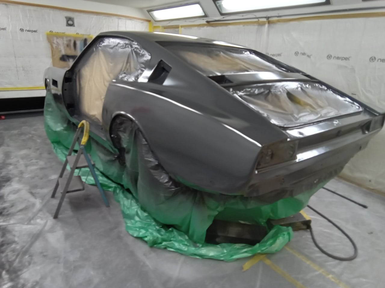 The 1970 Aston Martin DBS Vantage project is moving along at a solid pace now. The team have got the bodyshell, doors, bonnet, boot lid and various other pieces into epoxy primer to protect the metal work.