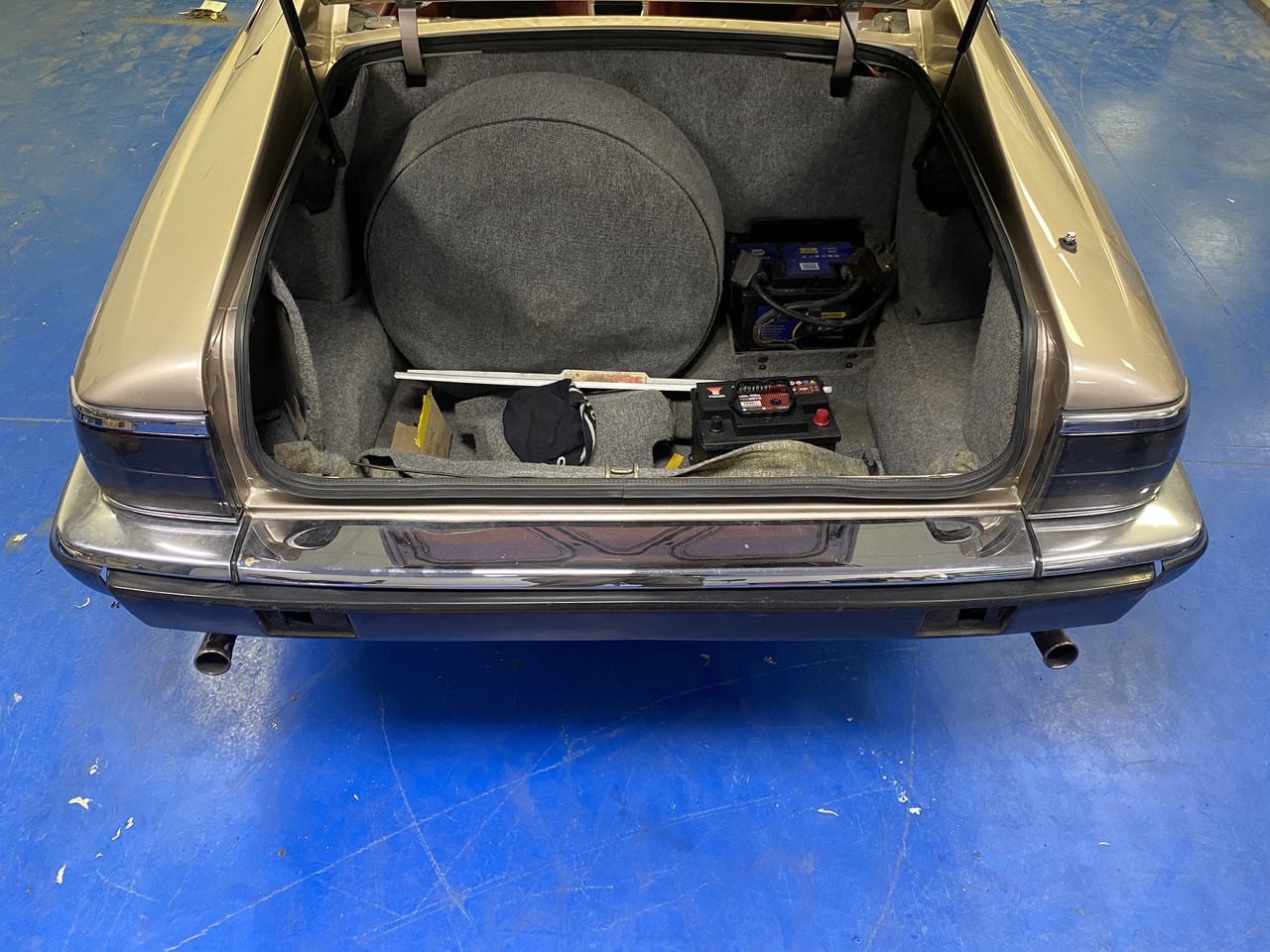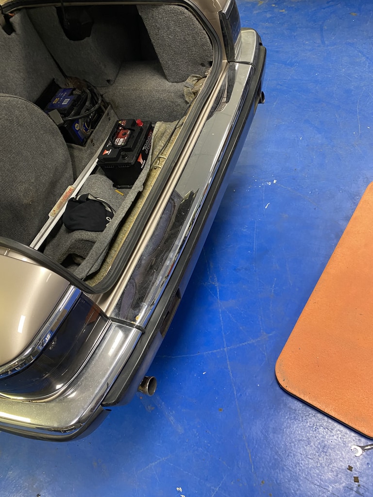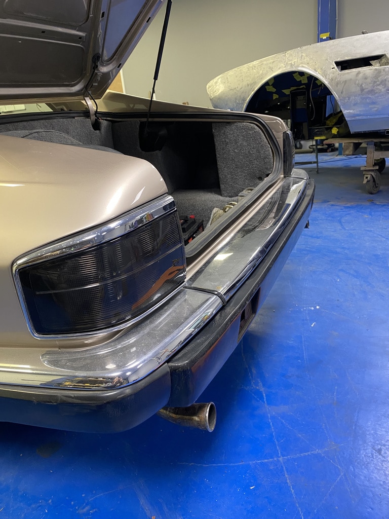 After its time in the paint shop, the 1991 Jaguar XJS has begun to get put back together. Our paint and body technician Adam has been working on getting the various parts, pieces and trims put back onto the classic GT car. One of these, was the rear bumper.