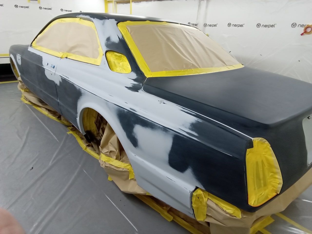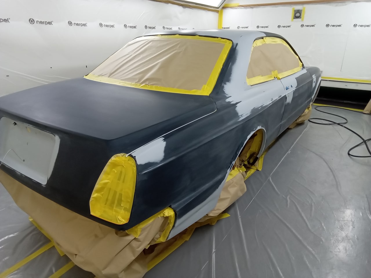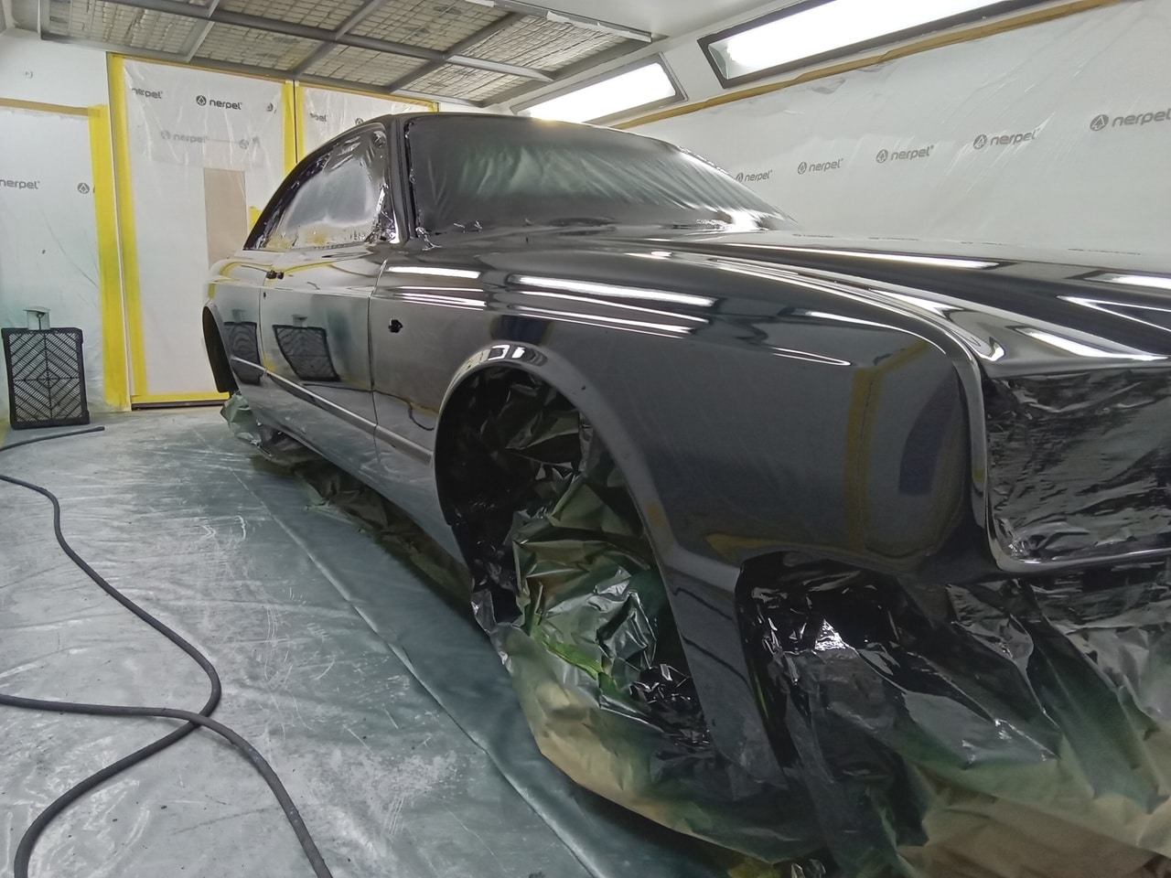 The 1996 Bentley Continental R has undergone quite the transformation in the past few days. Our paint and body team have spent the past few weeks getting the bodywork corrected and refined before it could be signed off for the team to lay down both colour and clear coat on the car.