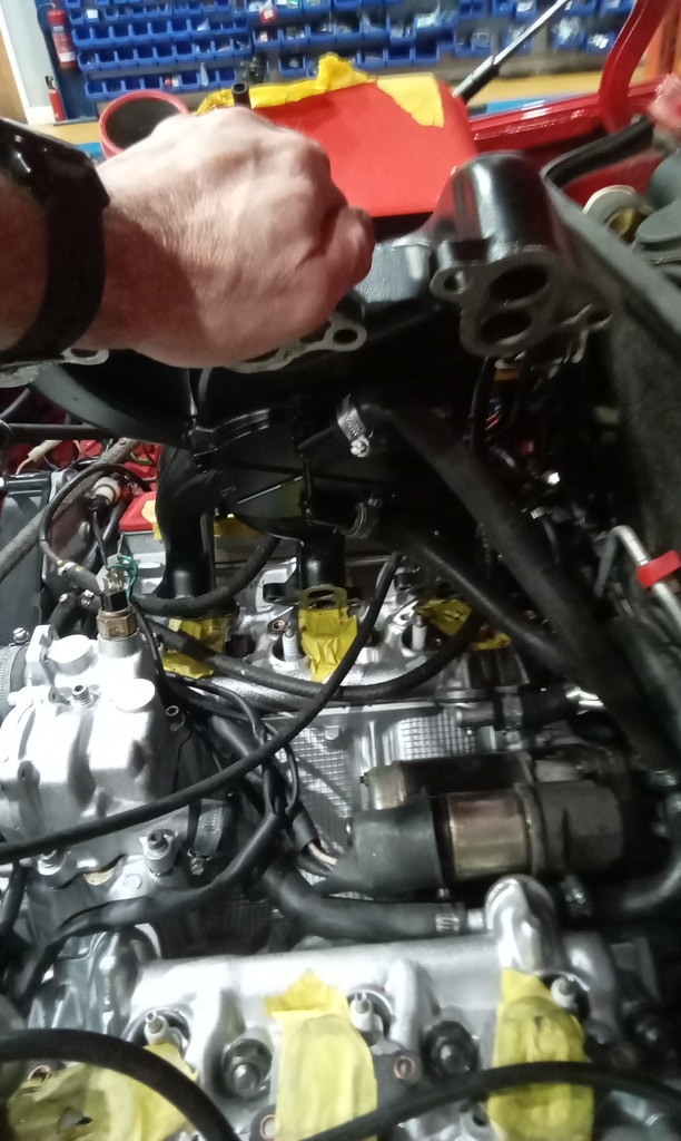 ”Remove unwanted hoses from 5 way connector. Fit 3 way connector and fit pipes. View pictures and work out pipes location and fit. Run vacuum pipes to turbos and up to boost solenoid. Refit inlet manifold. Fit throttle cable and route wiring.”