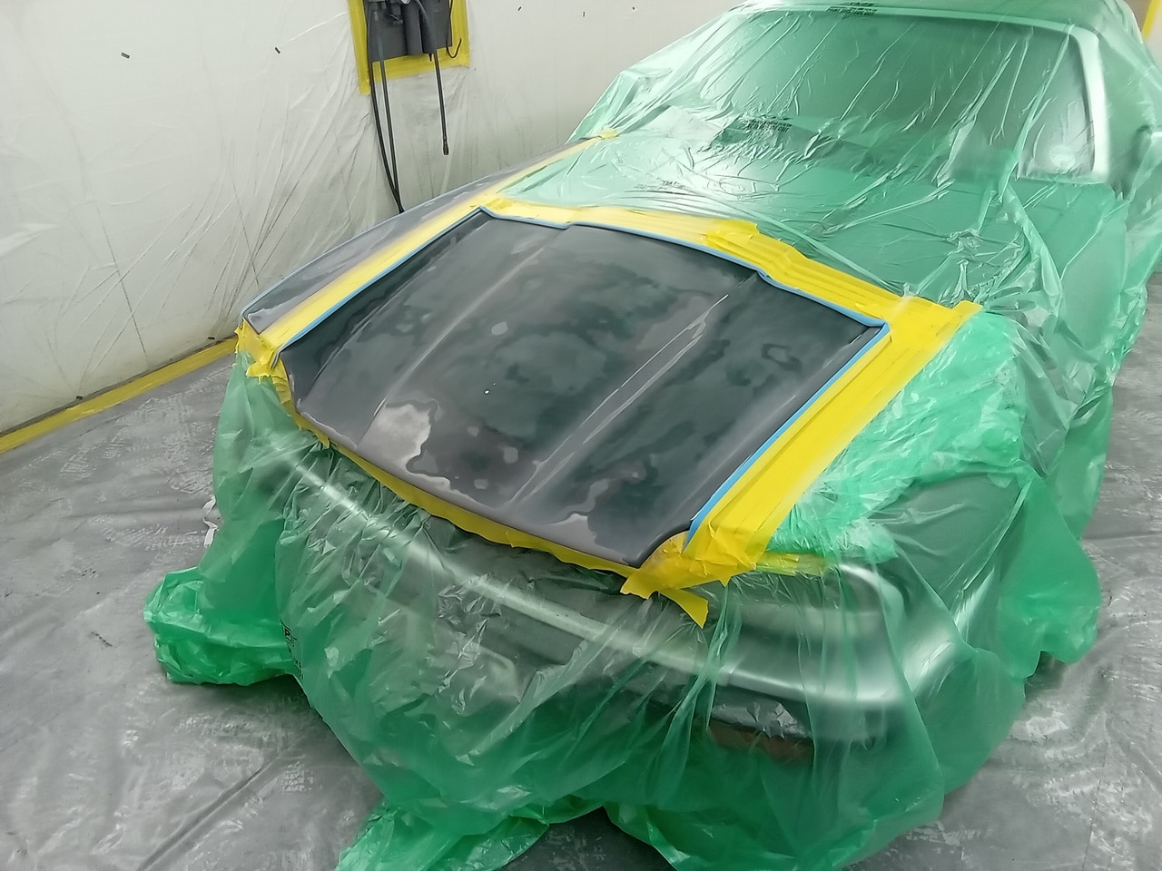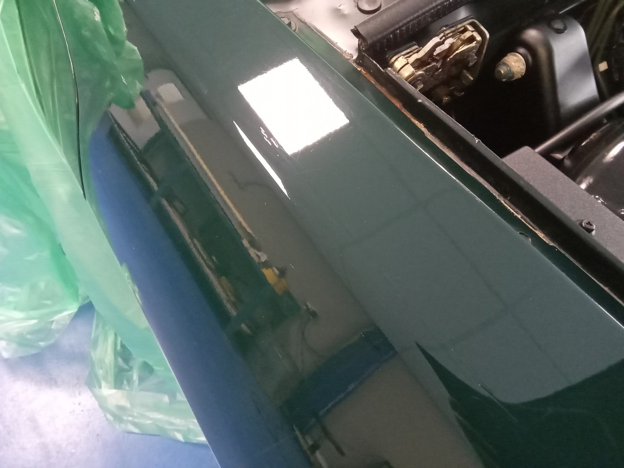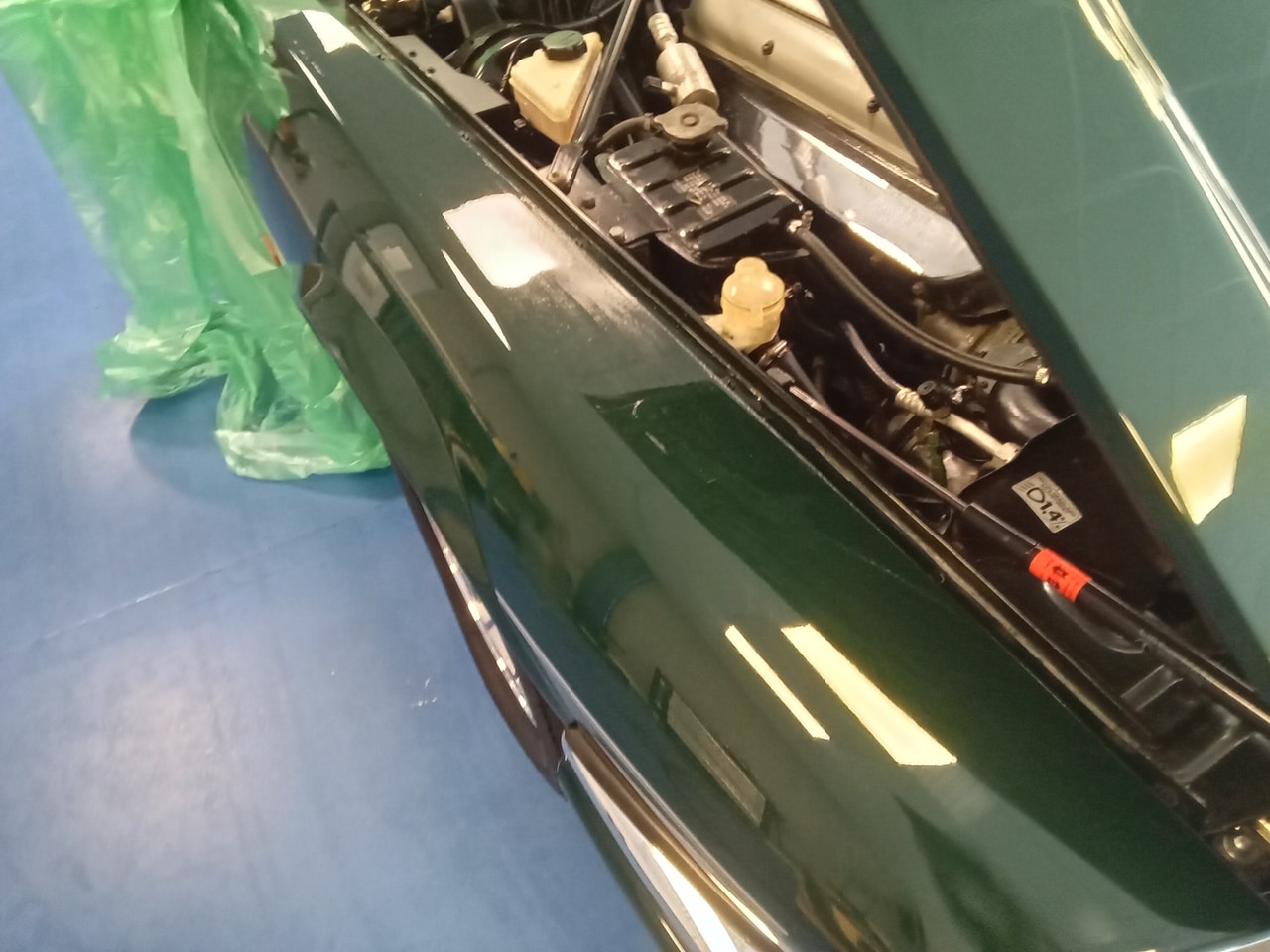 Our paint and body manager Chris has worked his magic on the 1995 Jaguar XJS Convertible currently being prepared in the Bridge Classic Cars workshop. After some imperfections in the paint and some areas had degraded, Chris carefully masked and prepared them to be painted and repolished to get this 1990s convertible grand tourer back to as good as new.