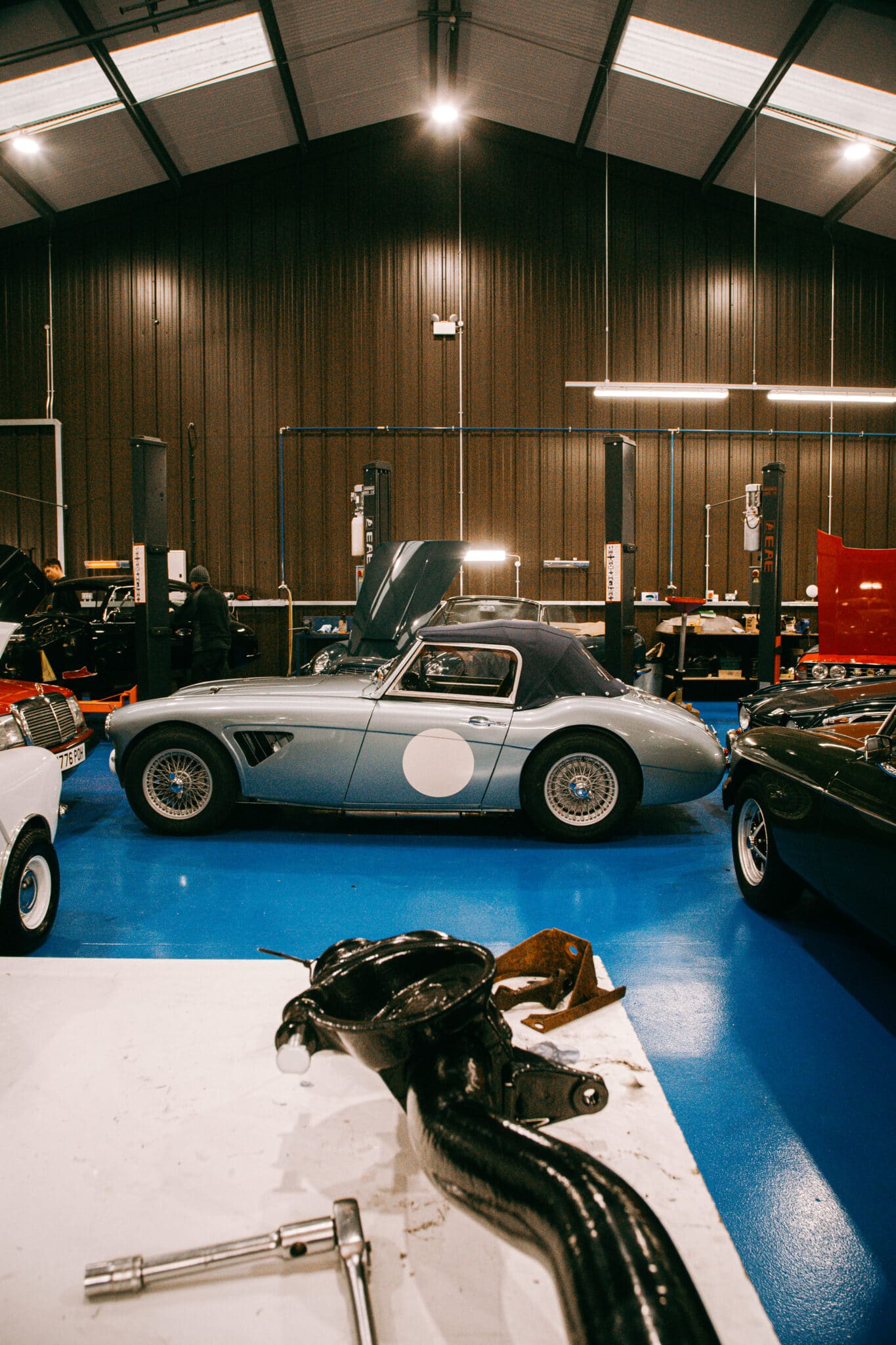 The 1960 Austin Healey 3000 rally car is finished and ready for its owner to get this absolute beauty out there into the world. The team have really enjoyed getting the car ready, with a few modifications, to head out. The team have put on the new sump guard, modified the roof frame to fit around the roll cage and set up the suspension and steering.