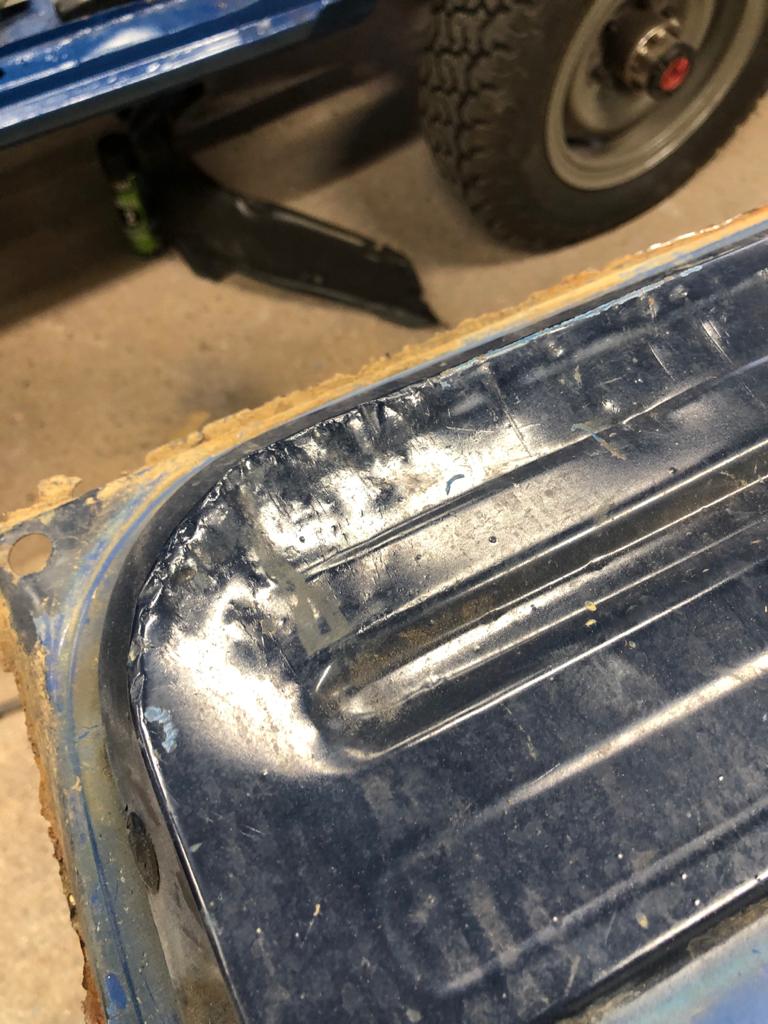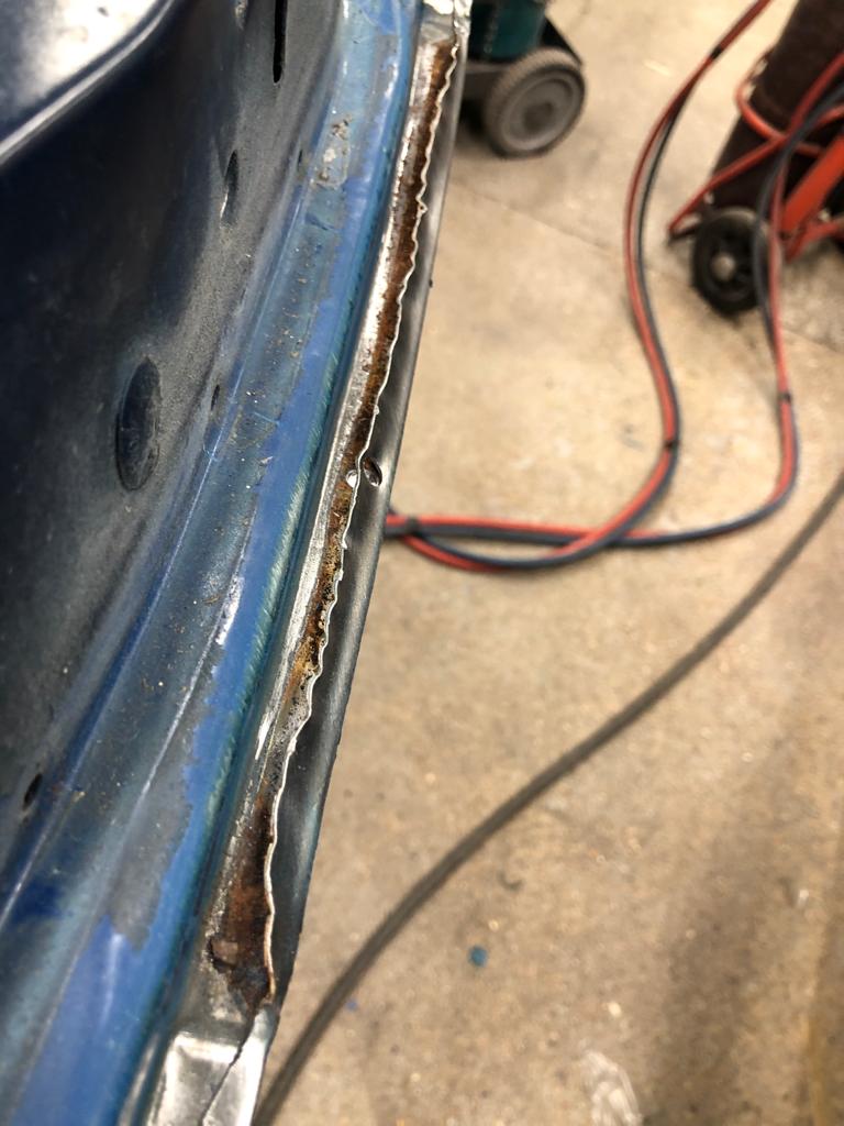 James has been working on the door panels which he’s removed to strip down and fabricate replacement elements. After repairing the rust, James was able to correct the dents and refit the skin to the door. This process will then be repeated on the other side. The wings that had been previously fit were misshapen and ill-fitting.