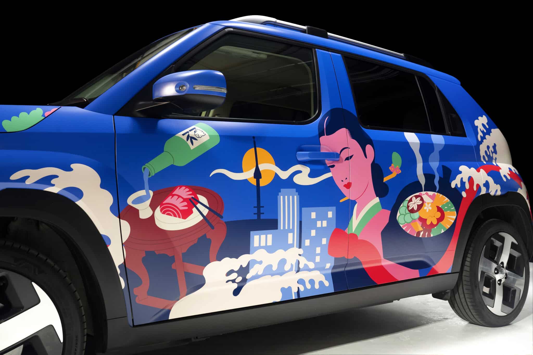 The INSTER that is being used as the first car-based restaurant has been decorated with bespoke Korean street art by illustrator Yoy Han. Apparently, the INSTER’s spacious, fold-flat interior makes for a perfect restaurant and is a great way of acknowledging what Hyundai describes as a “celebration of doing things your own way.”