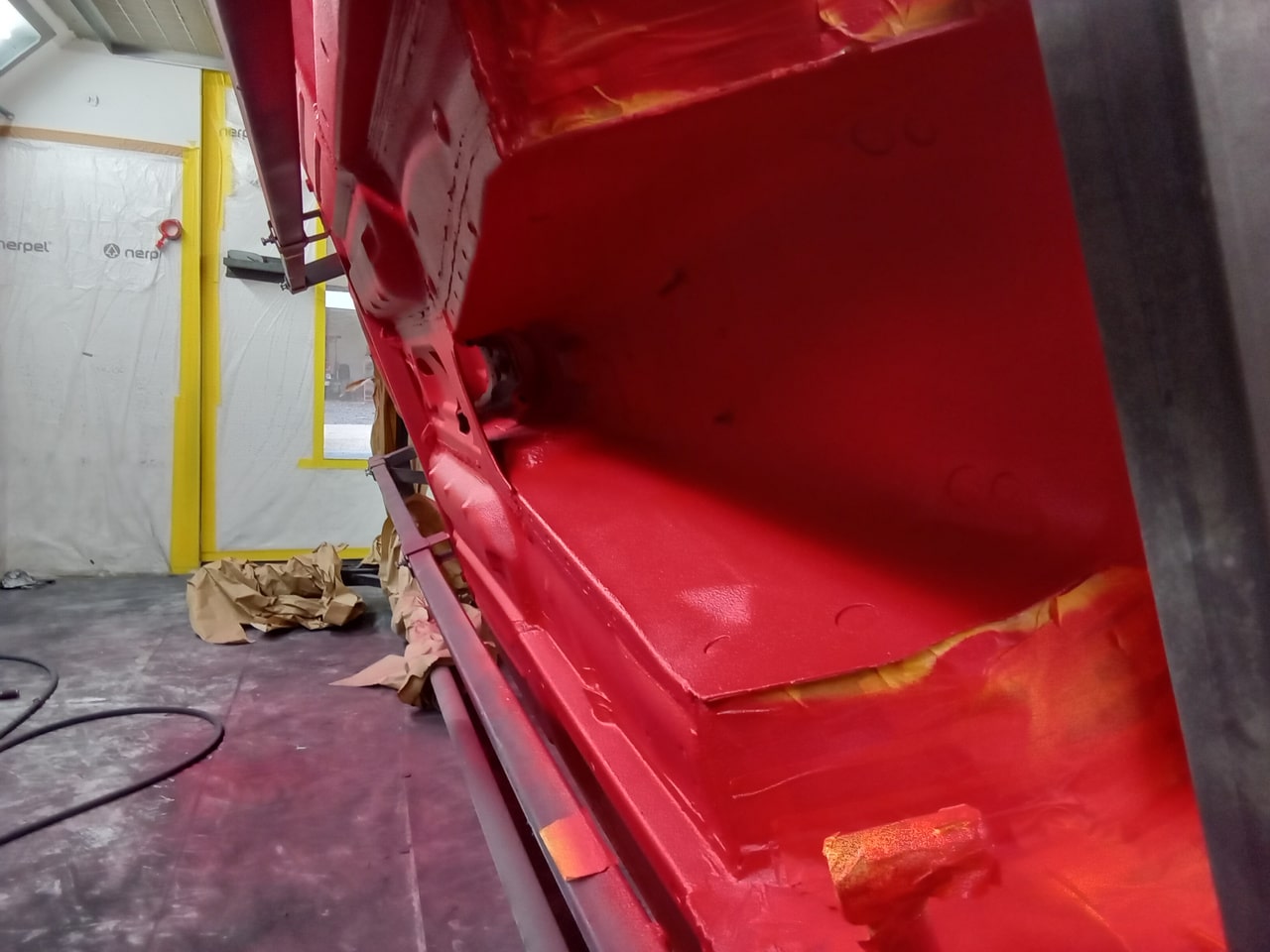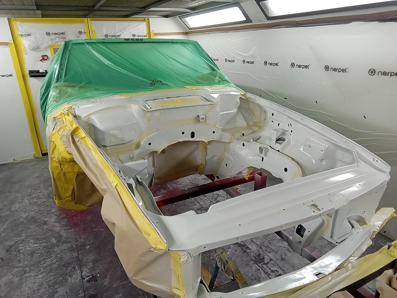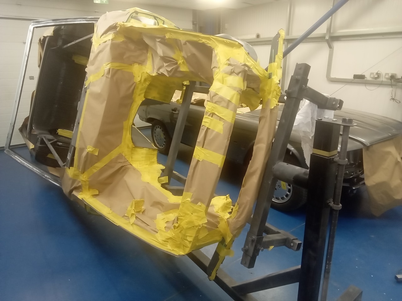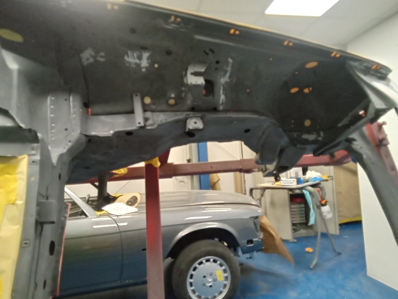The 1978 Mercedes 350SL is well on its way to getting back to a former glory, if not even better. The paint and body team have been working their magic on the classic Mercedes convertible over the past week or so. Chris, our paint manager, has seam sealed the entire underside and engine bay of the car ahead of spraying it in colour match raptorguard. Then, he could begin the process of cleaning, prepping and painting the engine bay in its final colour.