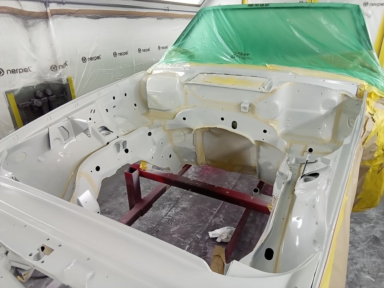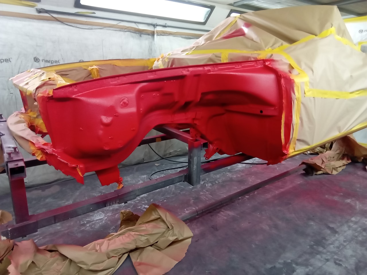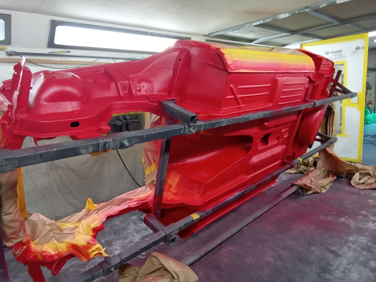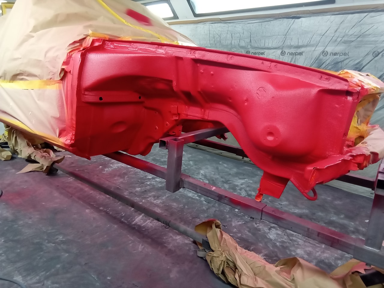 The 1978 Mercedes 350SL is well on its way to getting back to a former glory, if not even better. The paint and body team have been working their magic on the classic Mercedes convertible over the past week or so. Chris, our paint manager, has seam sealed the entire underside and engine bay of the car ahead of spraying it in colour match raptorguard. Then, he could begin the process of cleaning, prepping and painting the engine bay in its final colour.