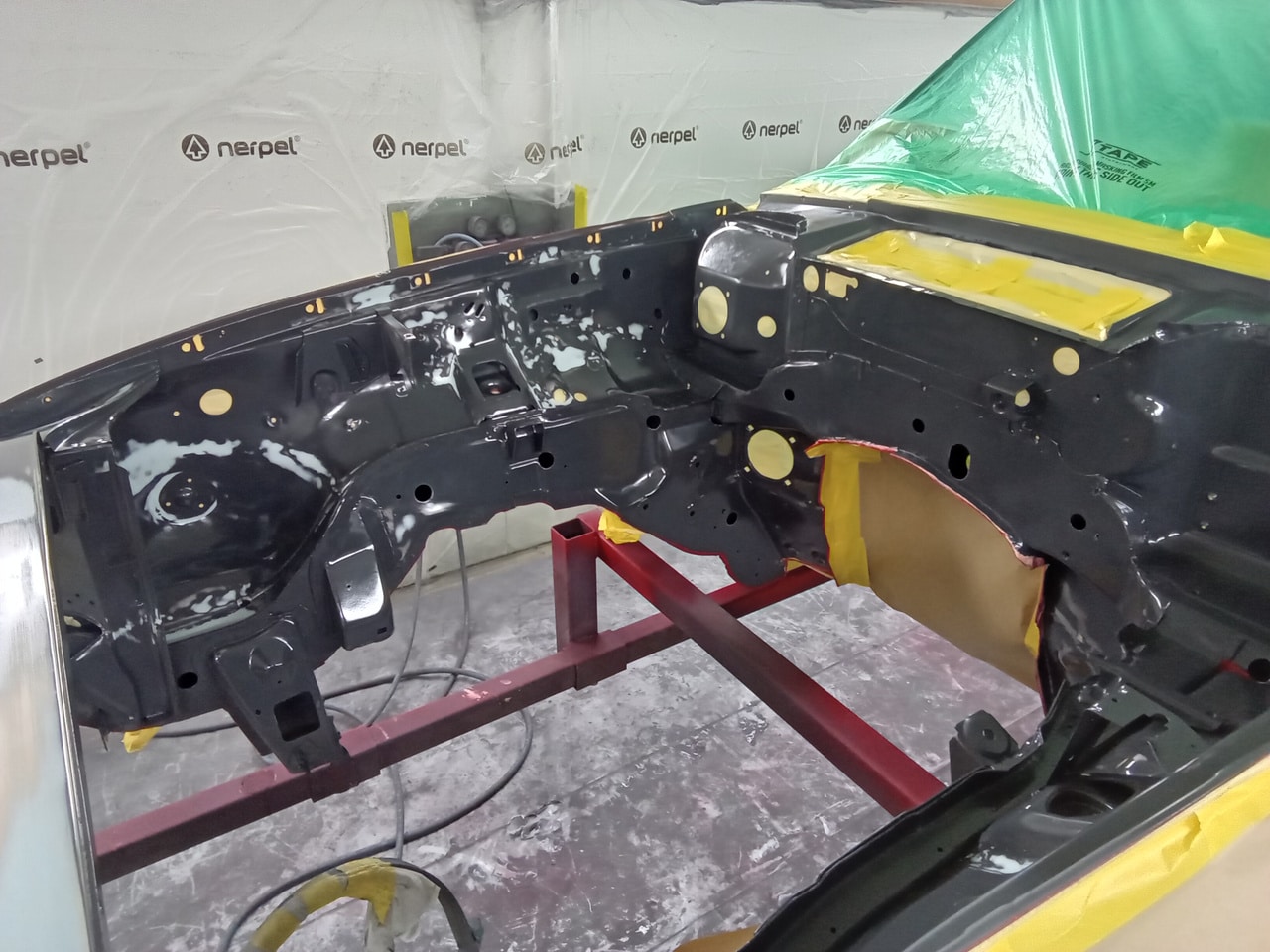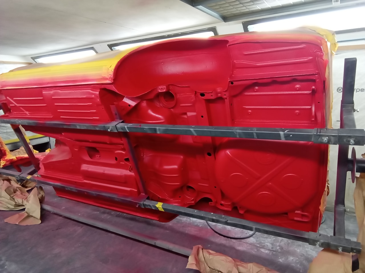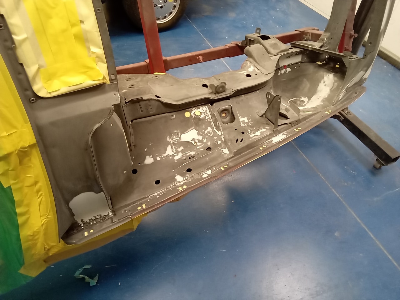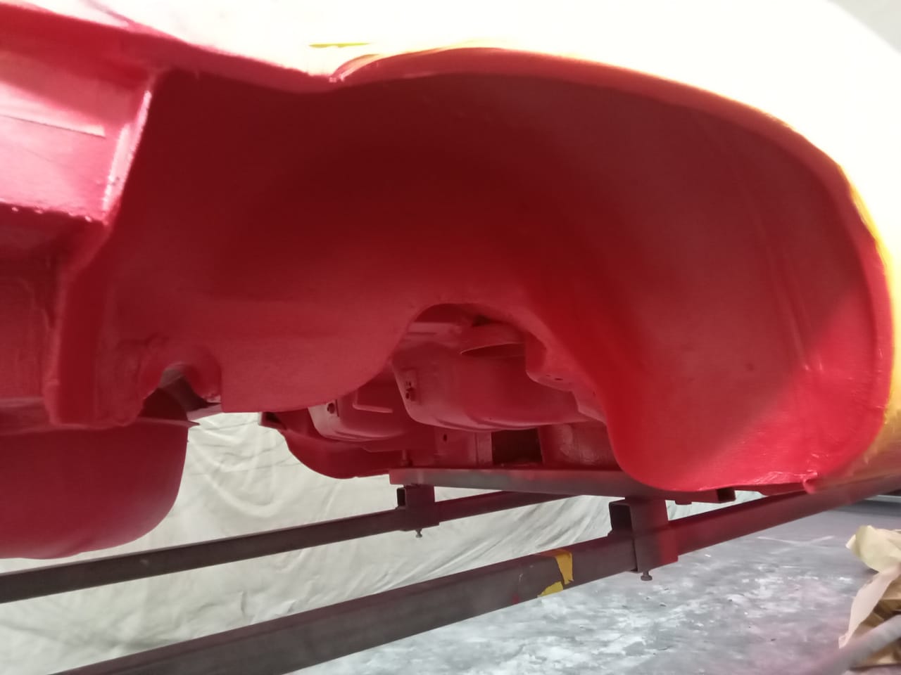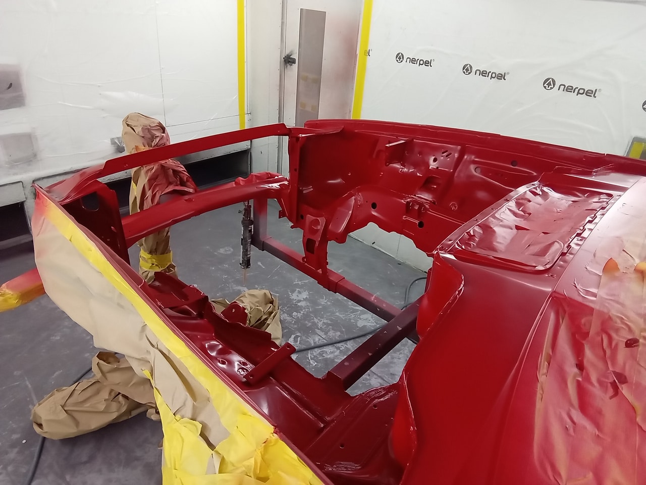 The 1978 Mercedes 350SL is well on its way to getting back to a former glory, if not even better. The paint and body team have been working their magic on the classic Mercedes convertible over the past week or so. Chris, our paint manager, has seam sealed the entire underside and engine bay of the car ahead of spraying it in colour match raptorguard. Then, he could begin the process of cleaning, prepping and painting the engine bay in its final colour.