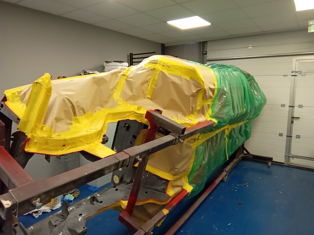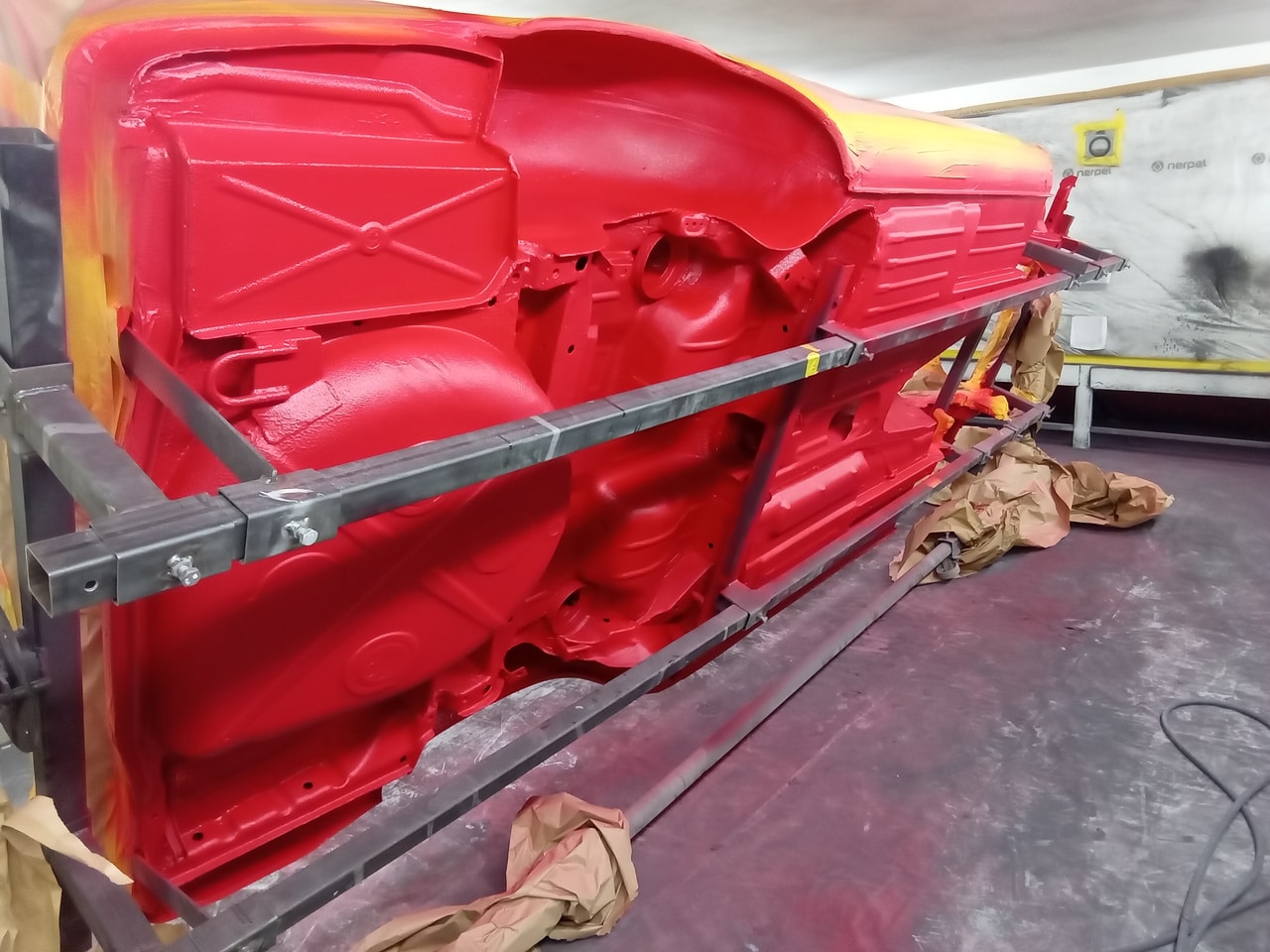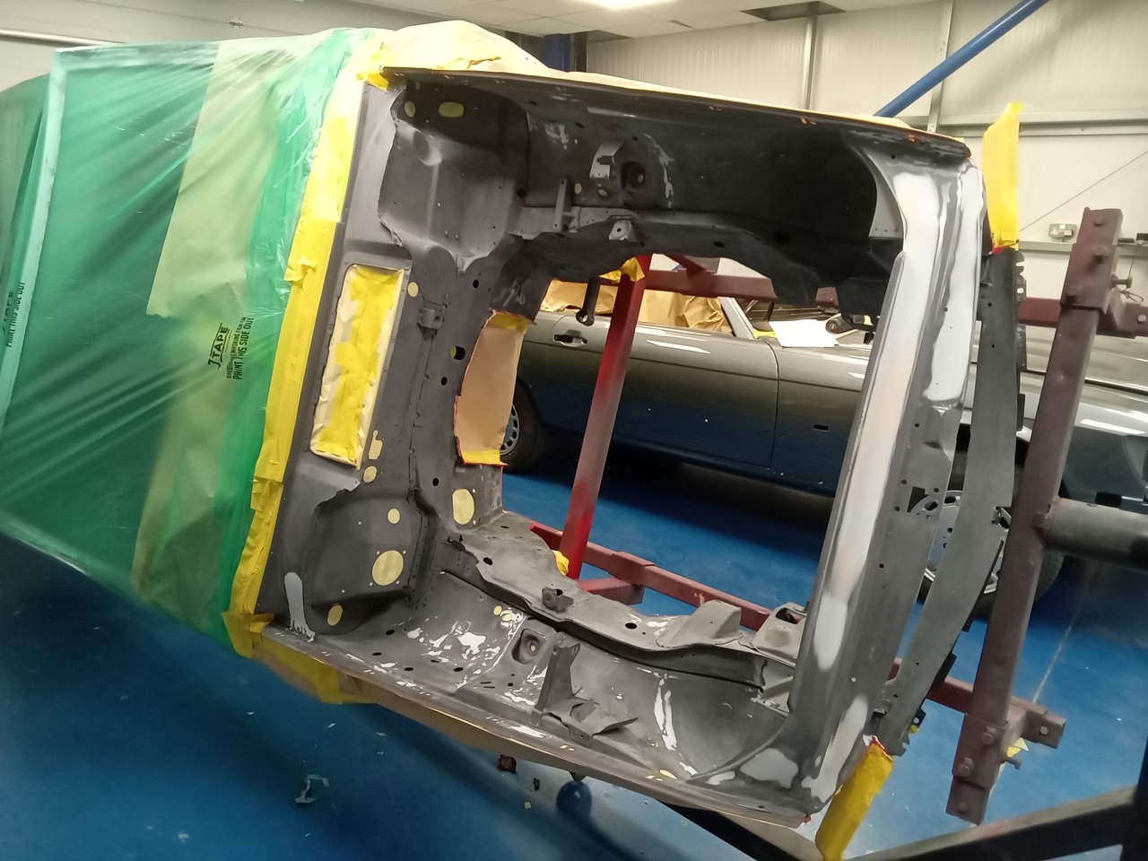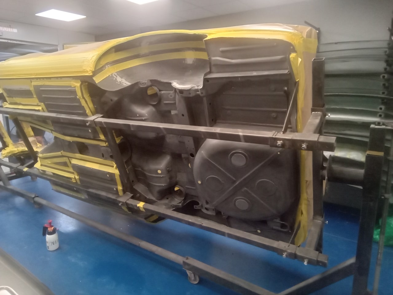 The 1978 Mercedes 350SL is well on its way to getting back to a former glory, if not even better. The paint and body team have been working their magic on the classic Mercedes convertible over the past week or so. Chris, our paint manager, has seam sealed the entire underside and engine bay of the car ahead of spraying it in colour match raptorguard. Then, he could begin the process of cleaning, prepping and painting the engine bay in its final colour.