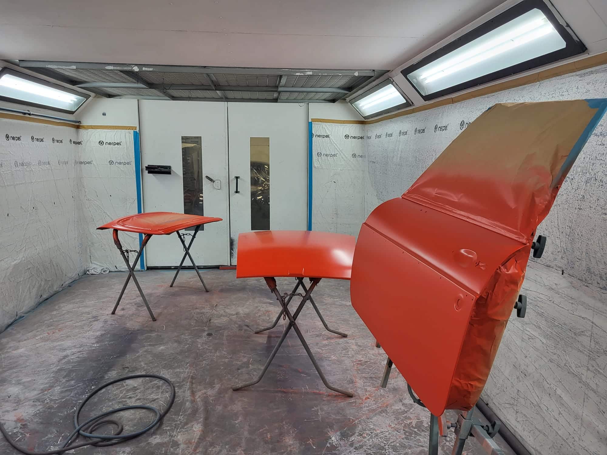After classic car technician Mauro finished all of his prep work and once the car was primed, the painting could begin.