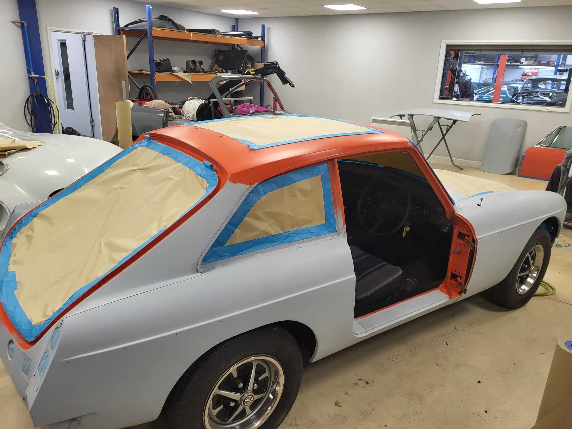 Before our 1980 MGB GT goes live on Bridge Classic Cars Competitions, it has been in the paint shop being prepped and primed ready for a new coat of paint to be applied.