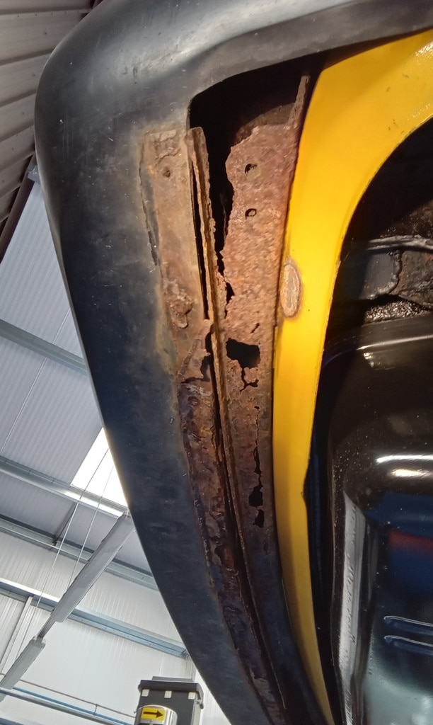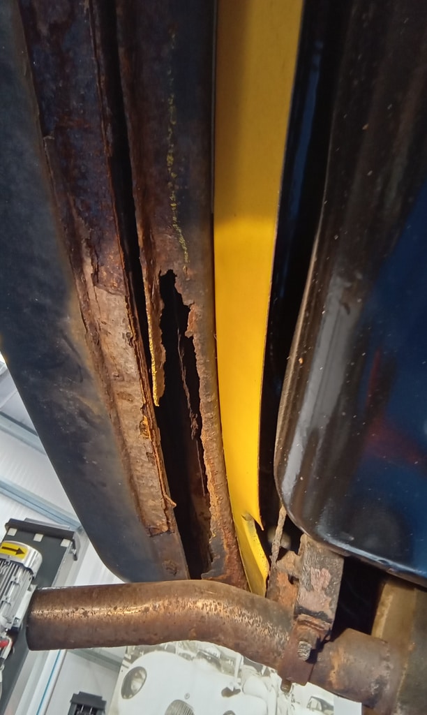 The underside is rusted in a couple of points, the ns wing to sill is rusted through and so is the inner sill as you can see in with a torch. The rear boot floor is separated from the bumper is multiple spots and there is only the fixings at the top of the bumper holding it on.
