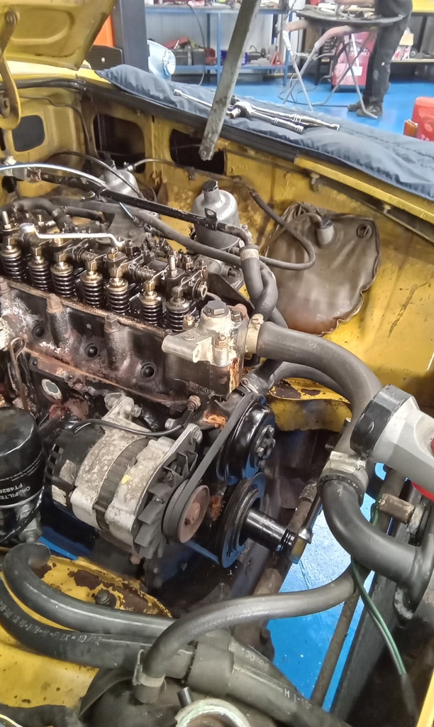 ”Adjusted tappets replaced plugs, oil, filter, steering rack boot which was leaking. Fuel filter and added a new header tank overflow pipe as was missing.”