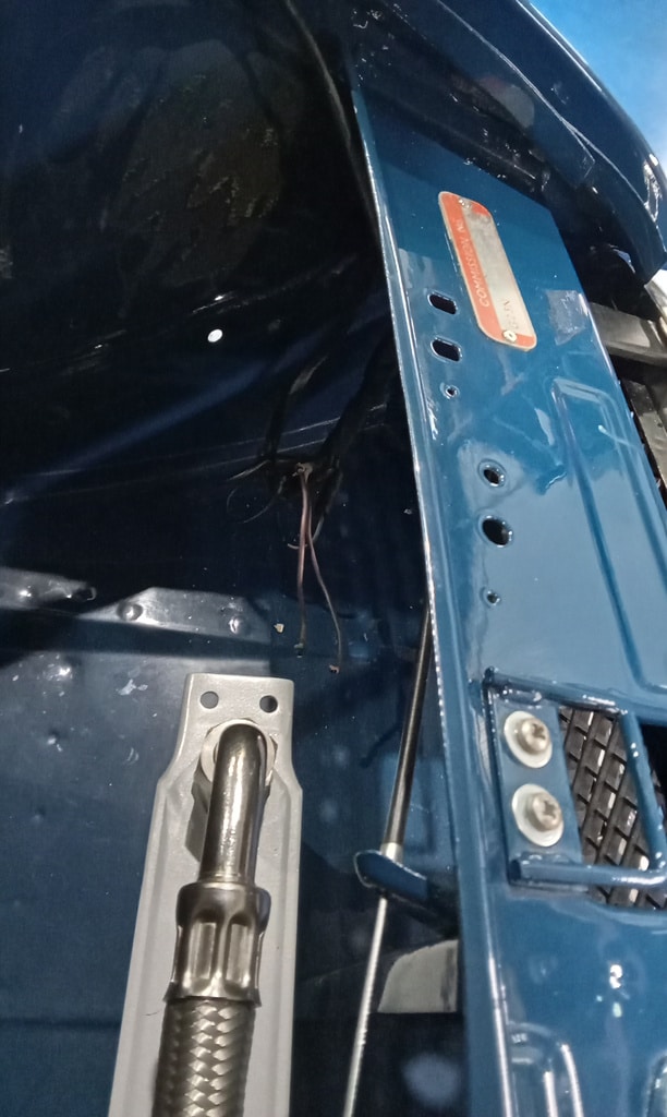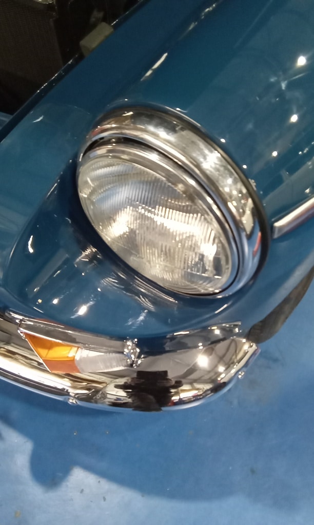 ‘Carry out nut and bolt and check over. Nearside headlight not working. Strip and Heck. Has voltage at plug but won’t light the bulb. Check wiring. Trace fault back to connector at offside. Replace connector and test, ok. Refit headlight.’