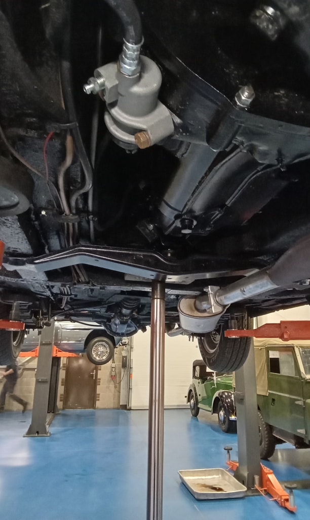 ‘Carry out nut and bolt check. Tighten everything. Fit nuts to gearbox mount and secure.grease all points. Torque wheel nuts. Check choke and adjustbarm at carbs. Check fuel level. Fit roof. Use hot air gun to warm roof window panels and smooth out. Hoover out and wipe over.’