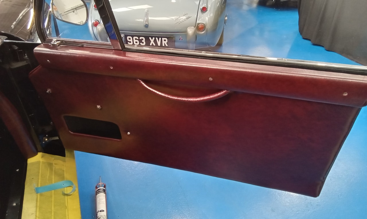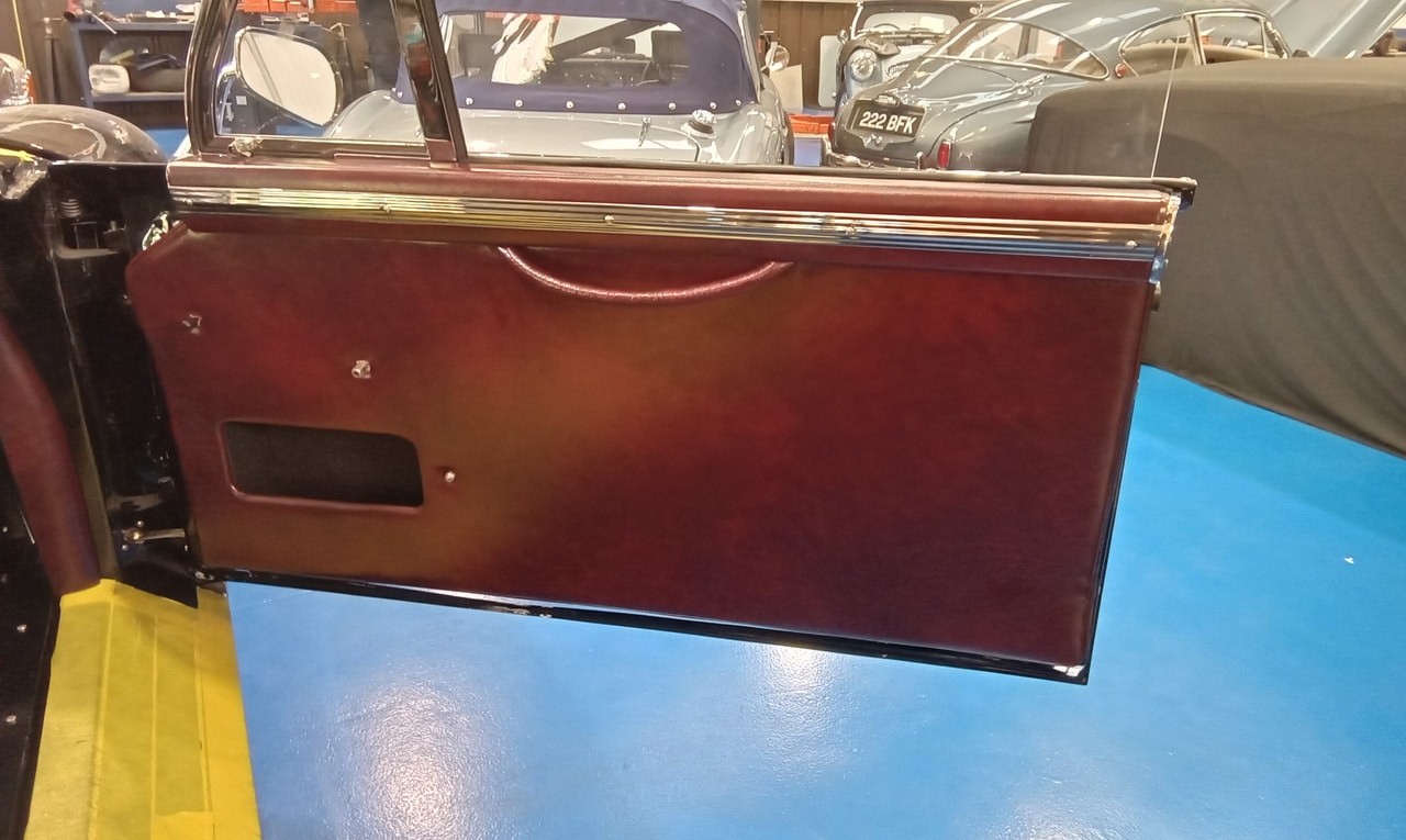 Our in-house trim team have been marching ahead with getting the 1953 Aston Martin DB2/4’s interior in place. Our trimmer Lydia has made each piece for the classic GT car by hand, tailoring individual pieces to work on the handmade classic Aston Martin – all the way down to the door pulls which have been handstitched.