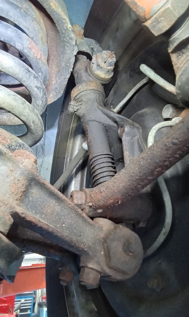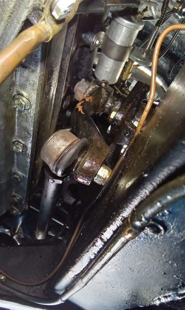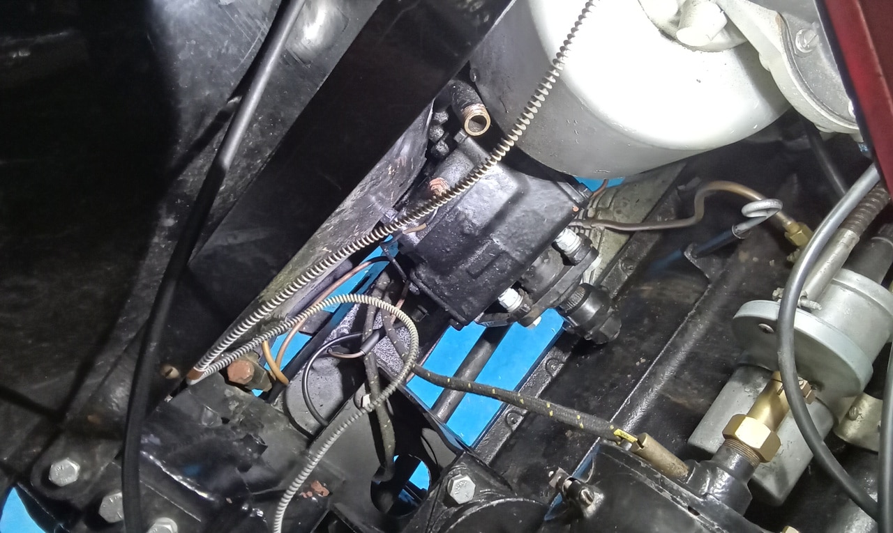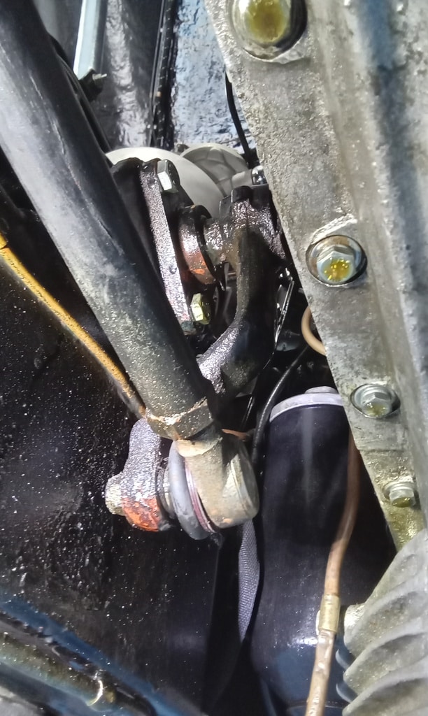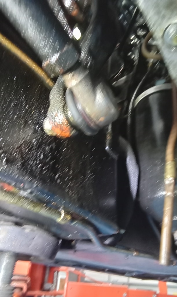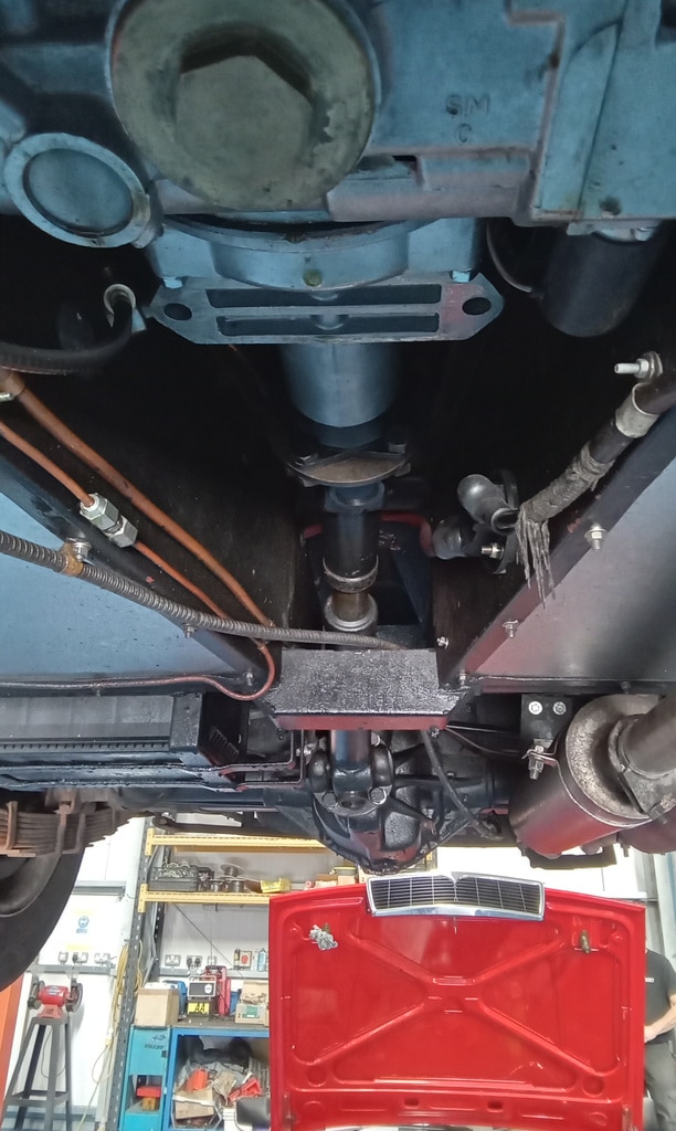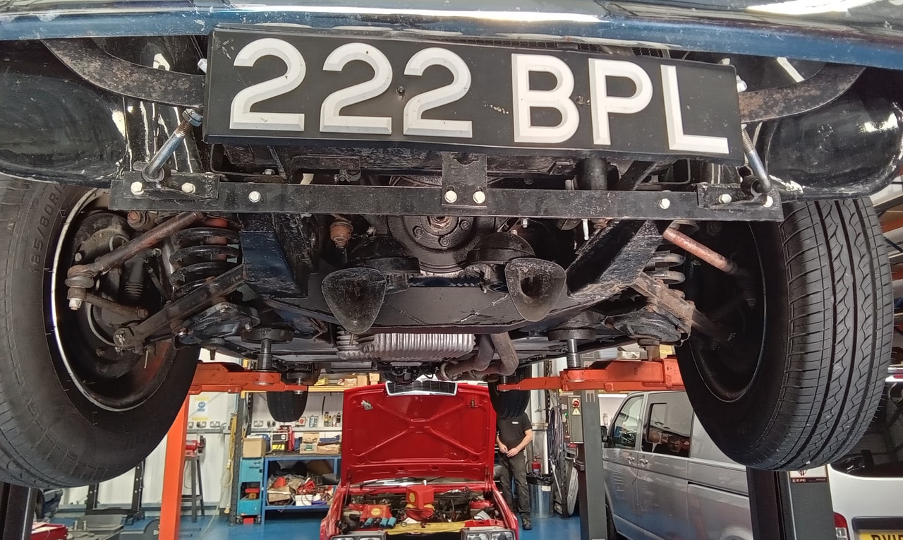 ”Look into customer reported faults and note anything else whilst looking over. Steering seems OK when turned using steering wheel. But when you try to go lock to lock turning via the road wheel steering tightens up in the straight ahead position. To overcome you have to go full right hand lock and turn steering through to left hand lock and it will pass the tight spot. Disconnect dragging ball joint and try again. Steering now easier to turn using road wheels so suspect steering g box at fault. Check and top up steering box oil and reconnect drag link, steering tight again. Check gearbox level and top up accordingly. Raise car on ramp and have a quick look underneath. Seems OK. Take off ramp and carry out road test. Steering seems OK when turning left. Steering tries to self centre, but to the right the steering stays where it’s turned to and doesn’t self centre. Gears a bit tight maybe but when engine speed matched it slips into gear fine. From a stop when car is hot sometimes won’t go into 1st gear. Either slip into second and then it will go into 1st or raise the clutch slightly so gearbox turns gently and you can select 1st OK. I’ve come across this before with Jensens and I would say it’s not unusual because 1st gear has no synchromesh. Also from road test: Cuts out at junctions, indicators not working, switch fault, pops and bangs on over run, handbrake poor.”