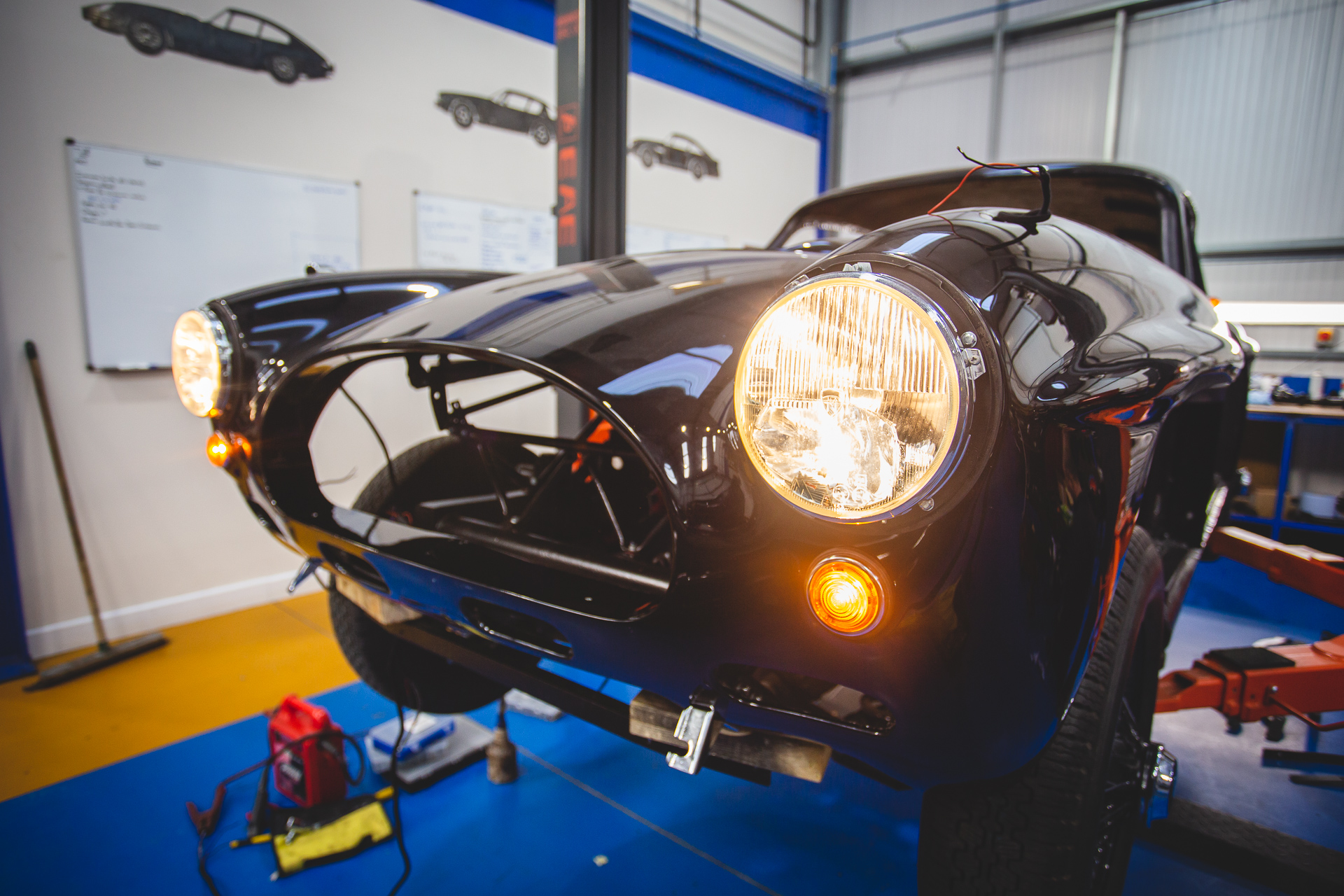 We’ve made great progress on our beautiful 1960 Jensen 541 R. Bob has installed the wiring harness, front and rear lights and indicators. Paul has fitted the bonnet and bonnet support struts.