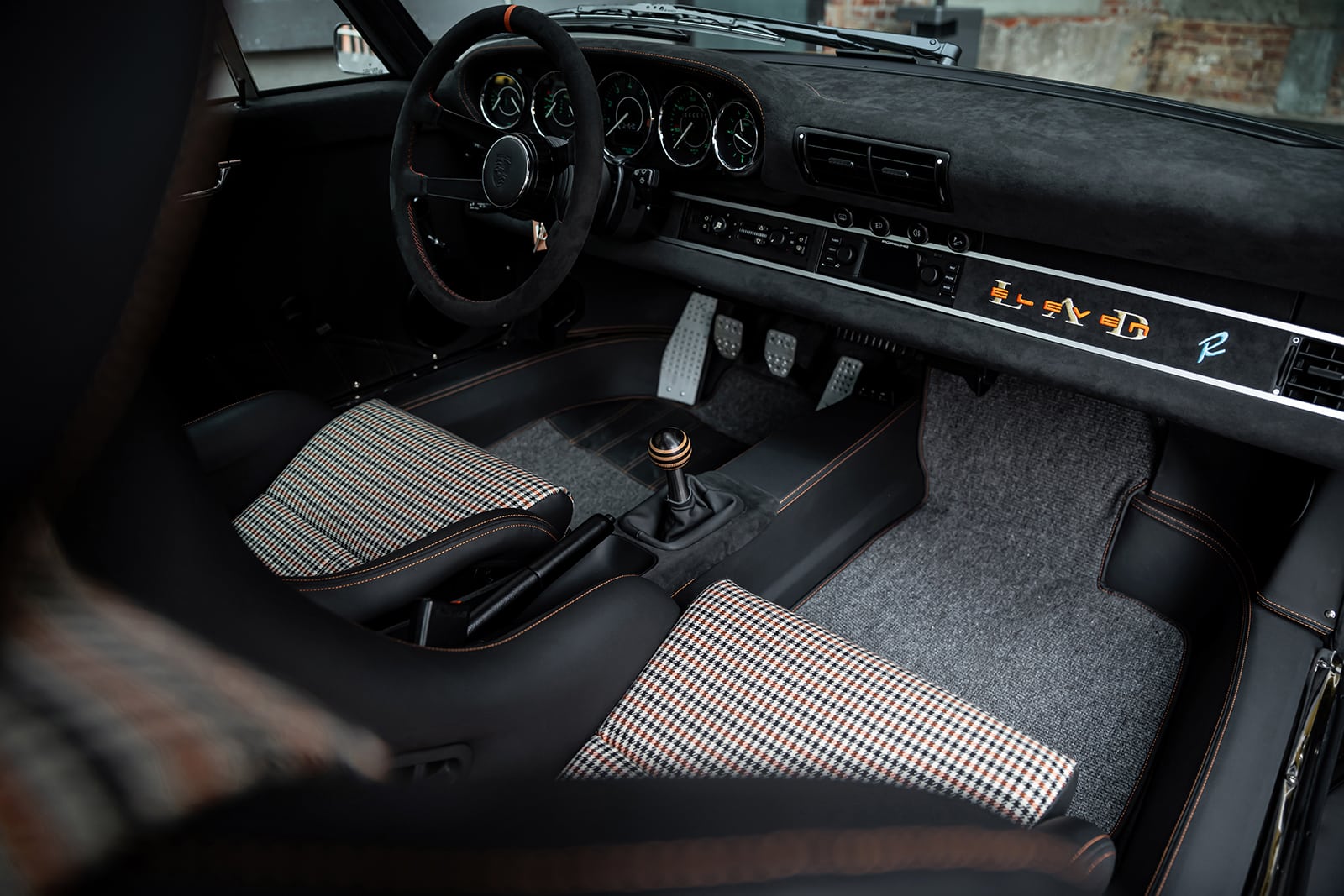 Inside, the car manages to balance period-correct style with modern usability. Recaro bucket seats are offered with either leather or cloth upholstery, complemented by classic Pepita or tartan fabric options. The dashboard and door cards are wrapped in leather, while Porsche Classic infotainment is subtly integrated to maintain the vintage aesthetic. For an added touch of individuality, custom luggage can be specified to match the interior trim.