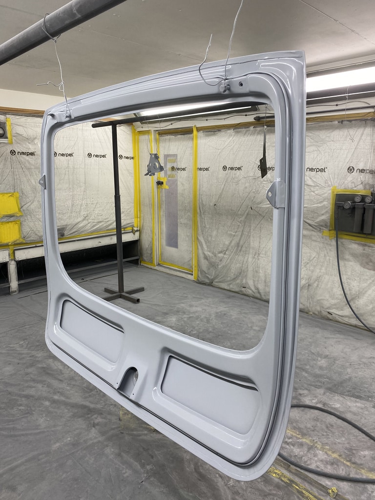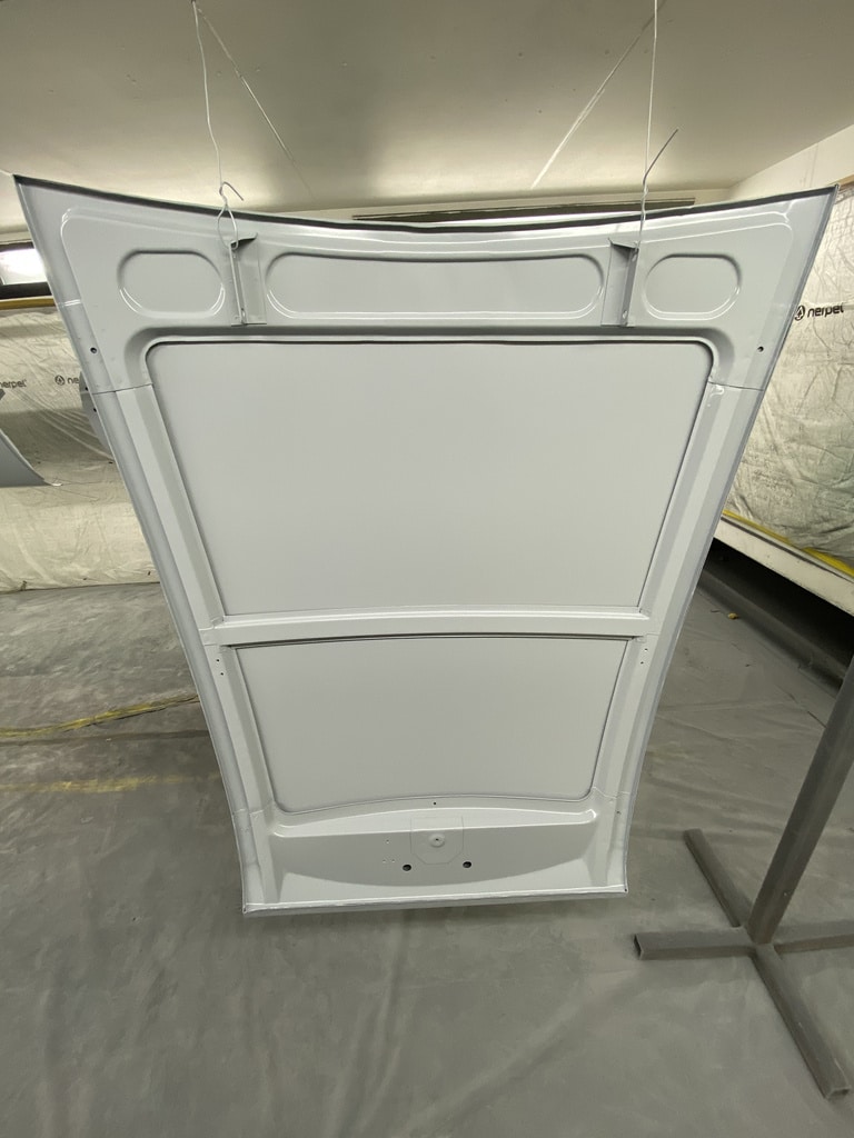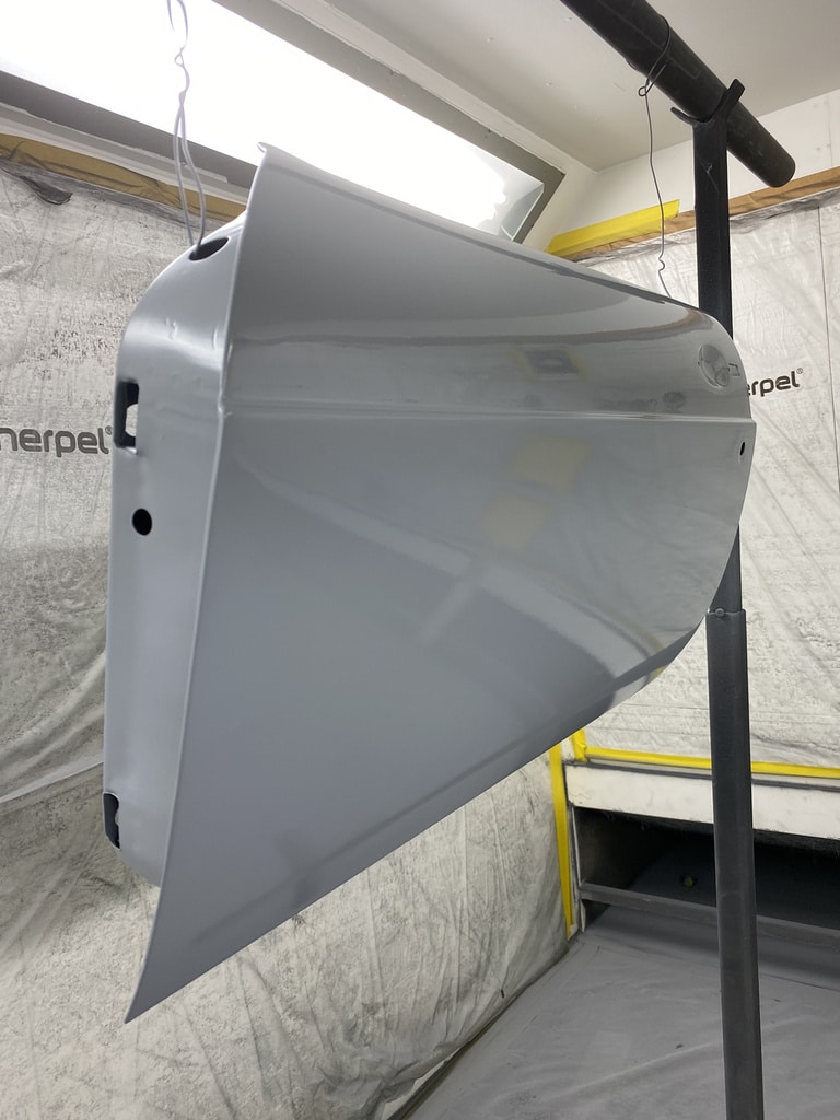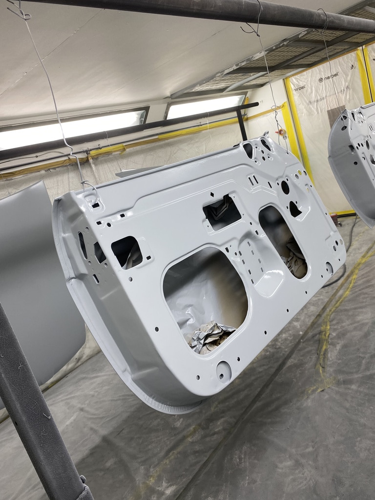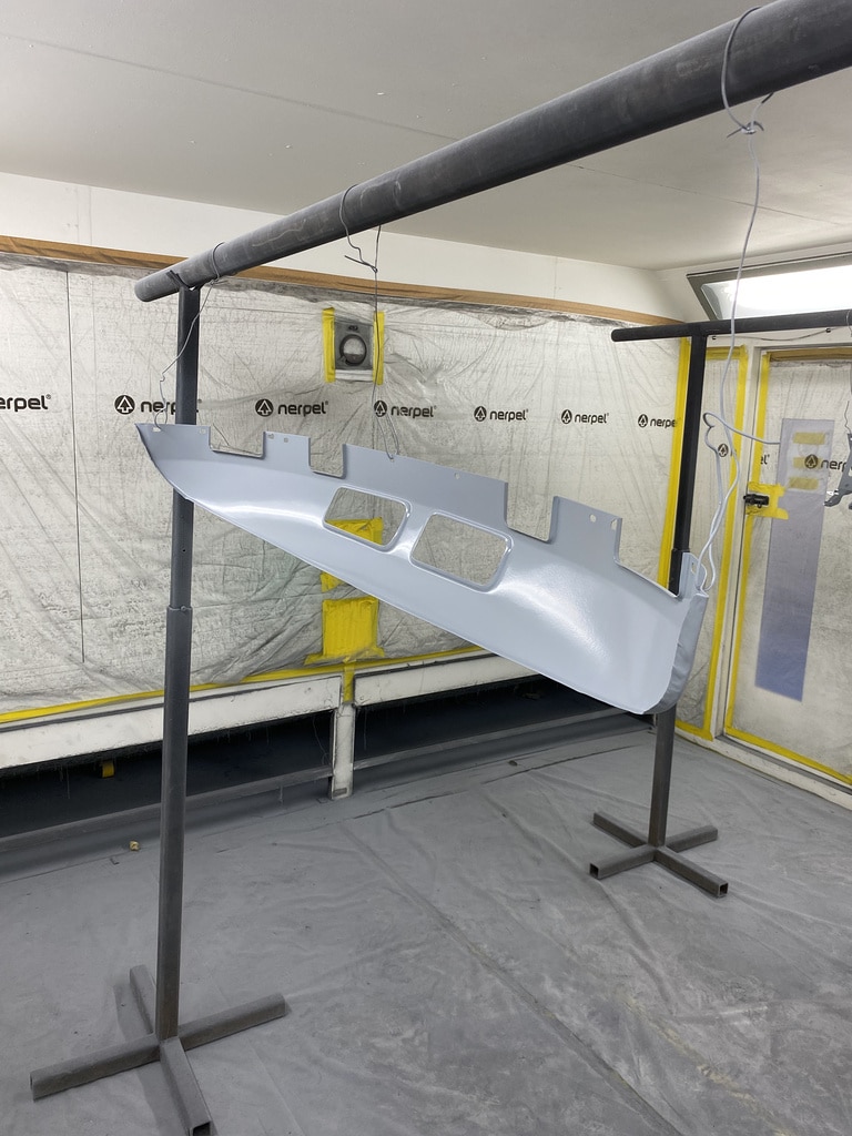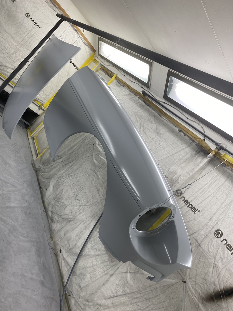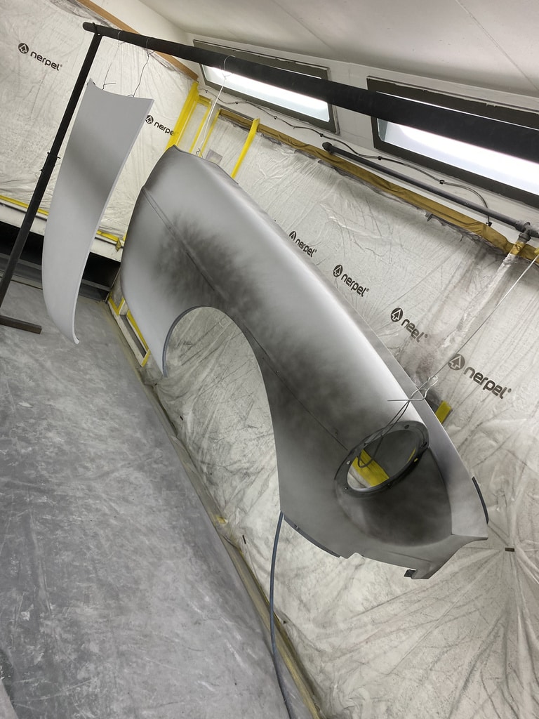 All of the parts, panels and bodyshell have had their final layers of primer sprayed so that Adam can carry out the final stages of sanding before the colour is laid down.