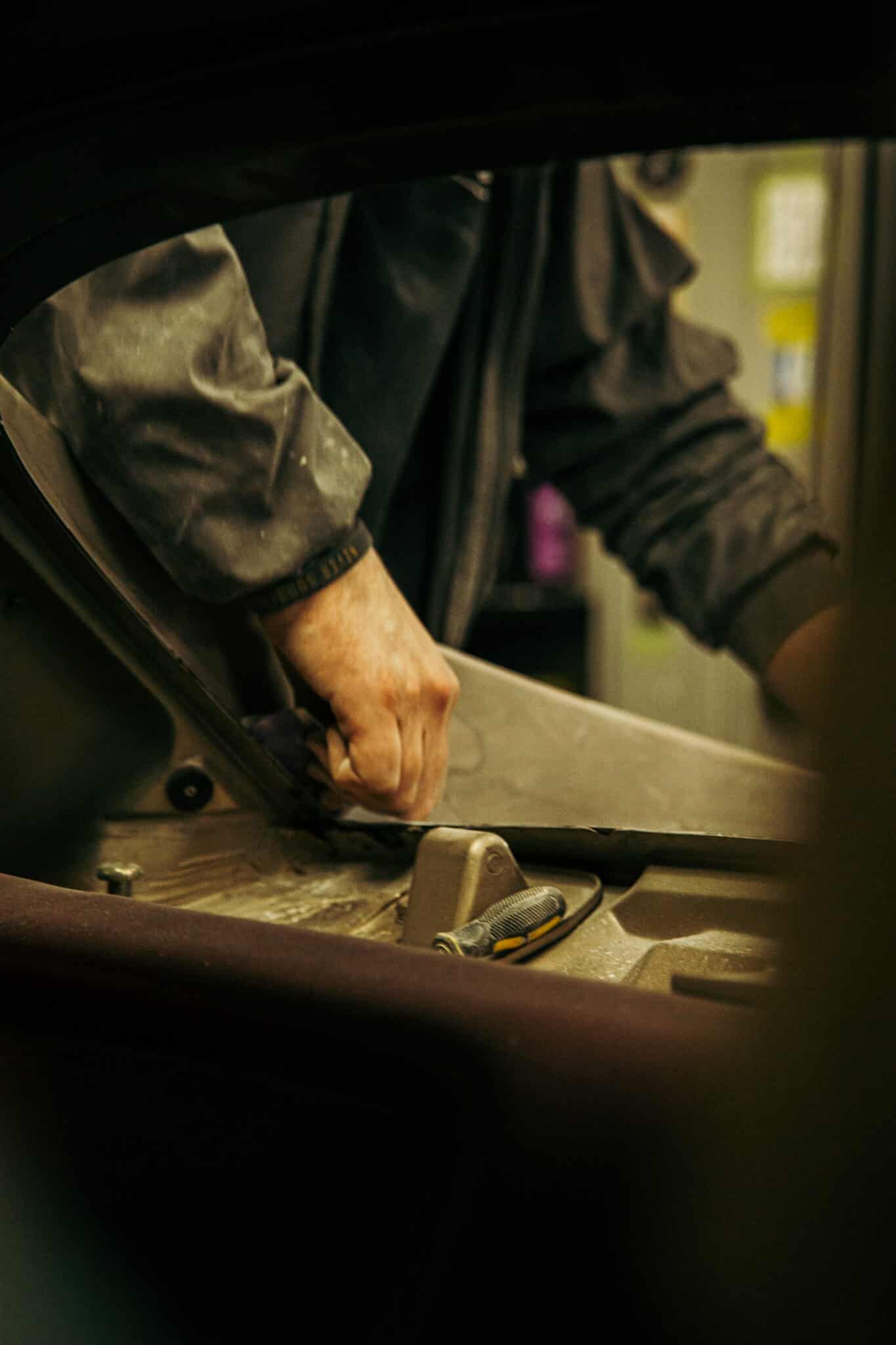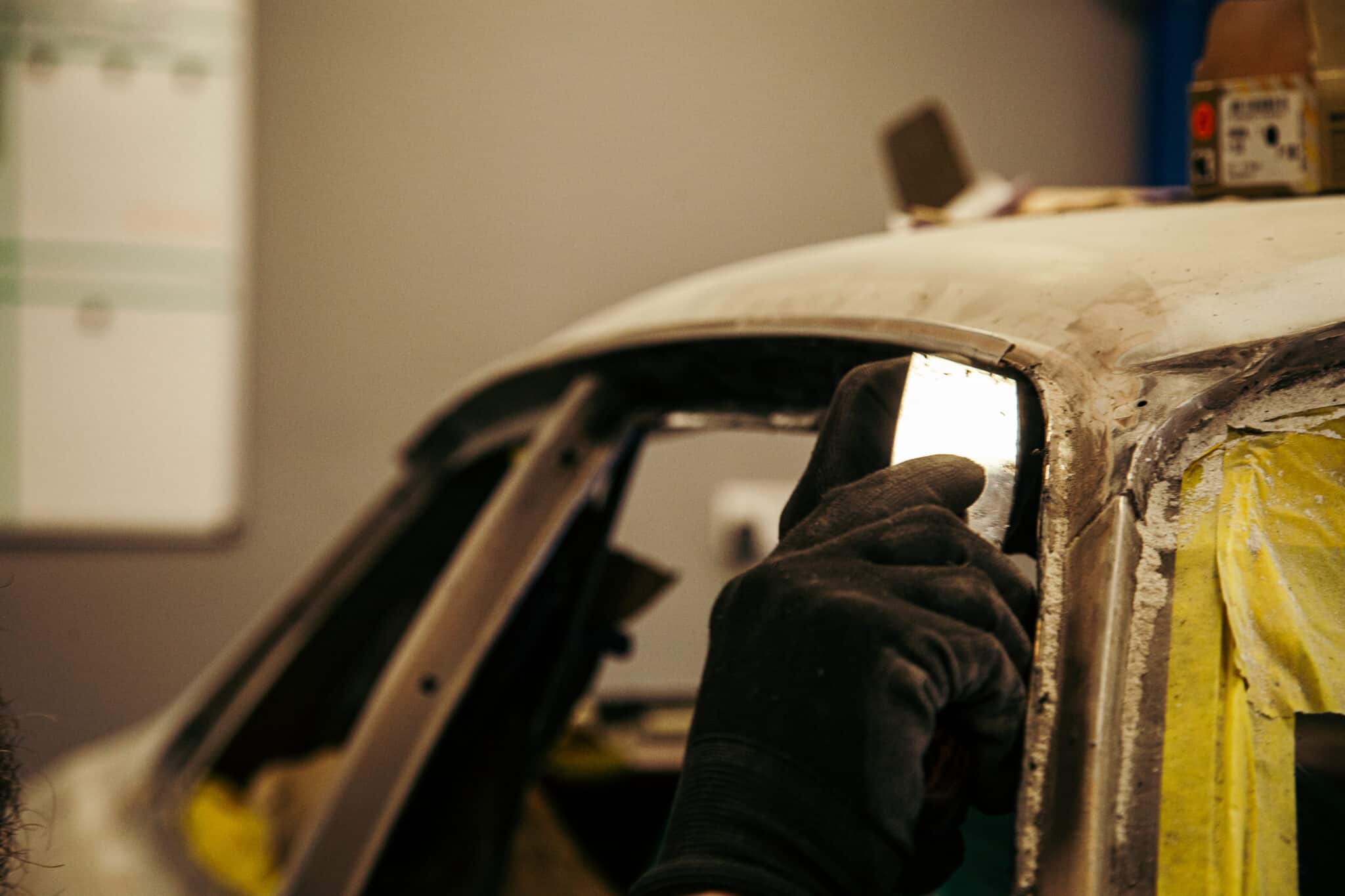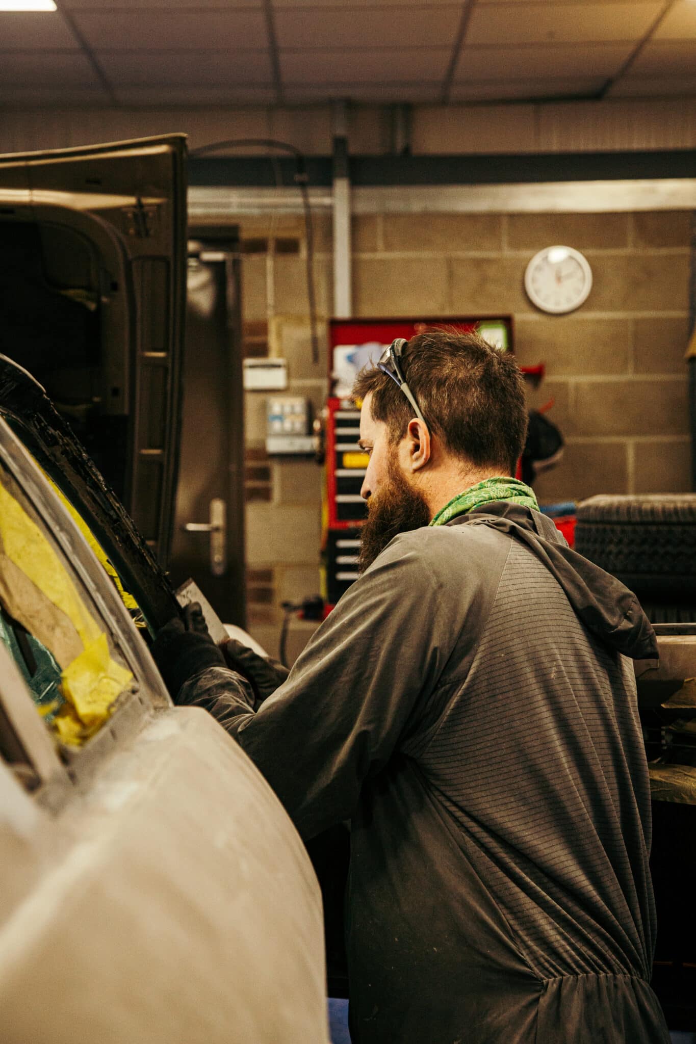 Our paint and body team are racing forward with the 1991 Jaguar XJS V12 project. Our paint and body technician Adam has been working his way round the V12 GT car treating a few areas of rust, bare metal and exposed bodywork before levelling those areas to prepare the car for priming.