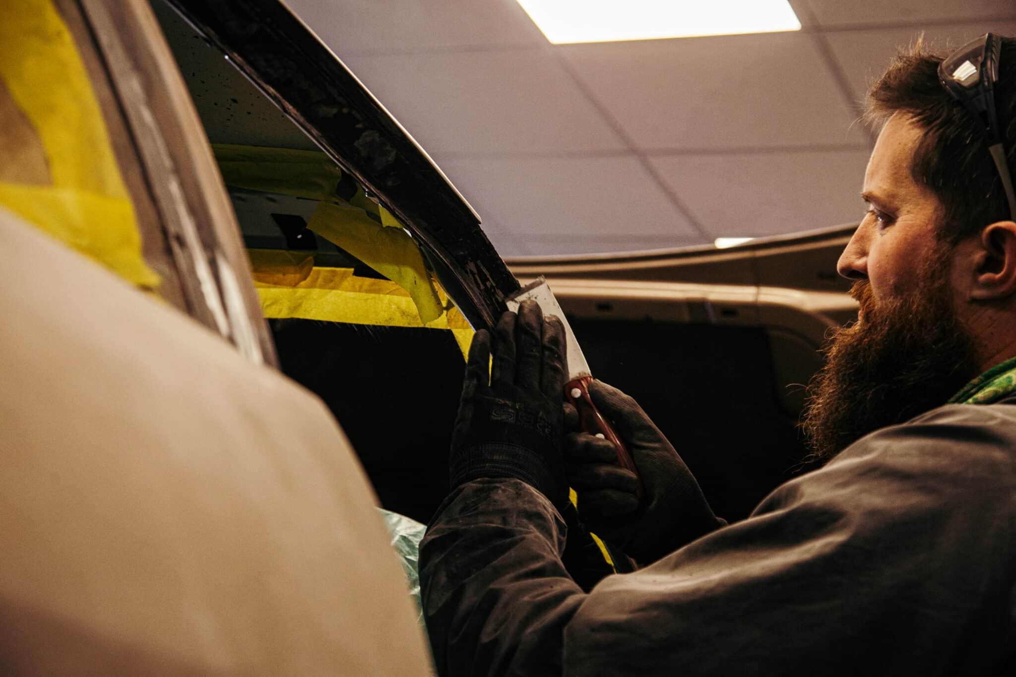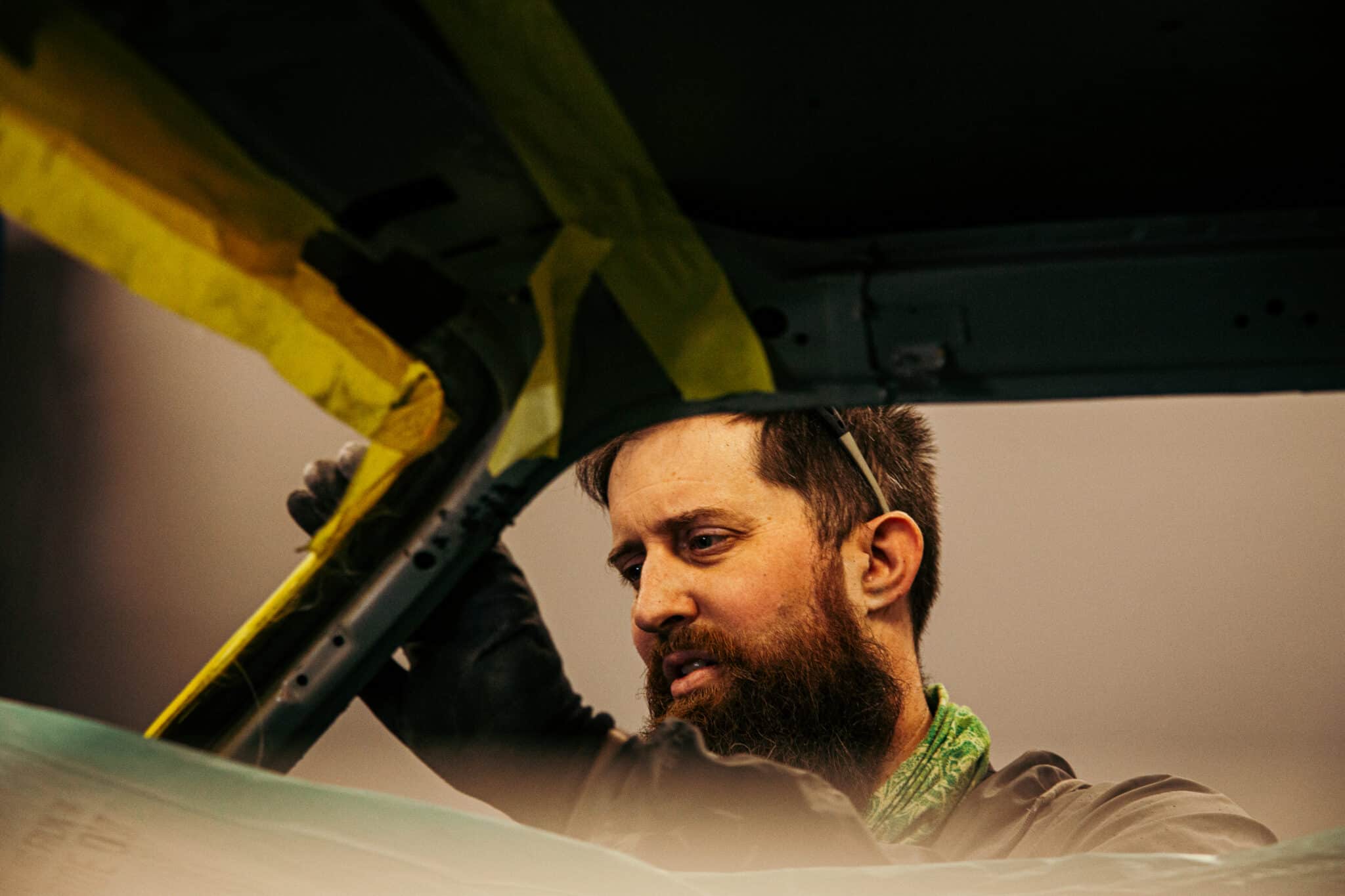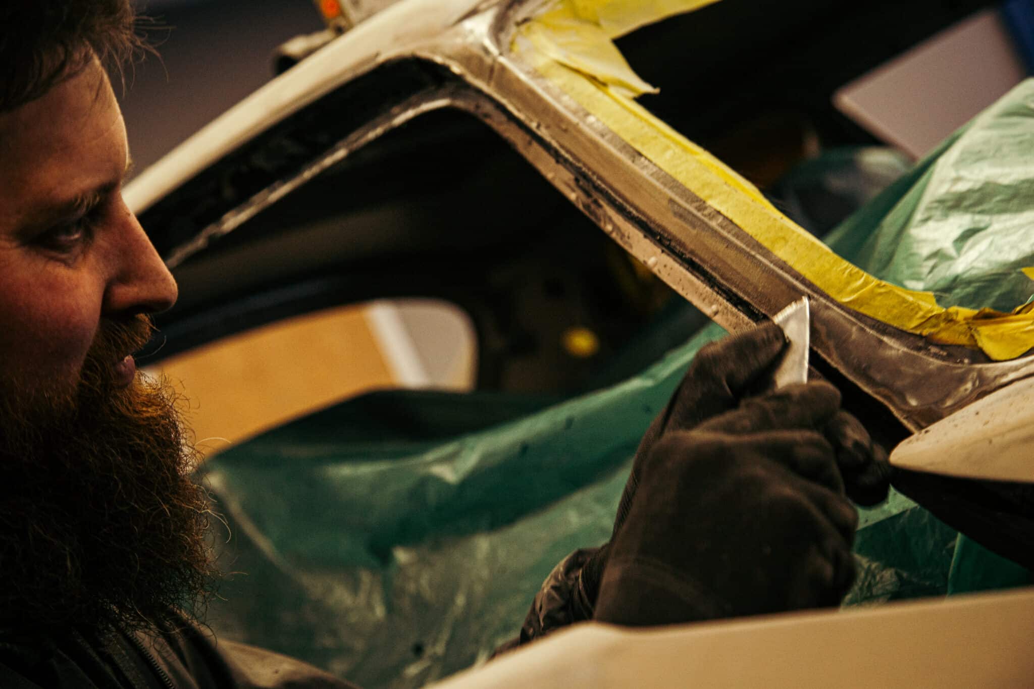 Our paint and body team are racing forward with the 1991 Jaguar XJS V12 project. Our paint and body technician Adam has been working his way round the V12 GT car treating a few areas of rust, bare metal and exposed bodywork before levelling those areas to prepare the car for priming.