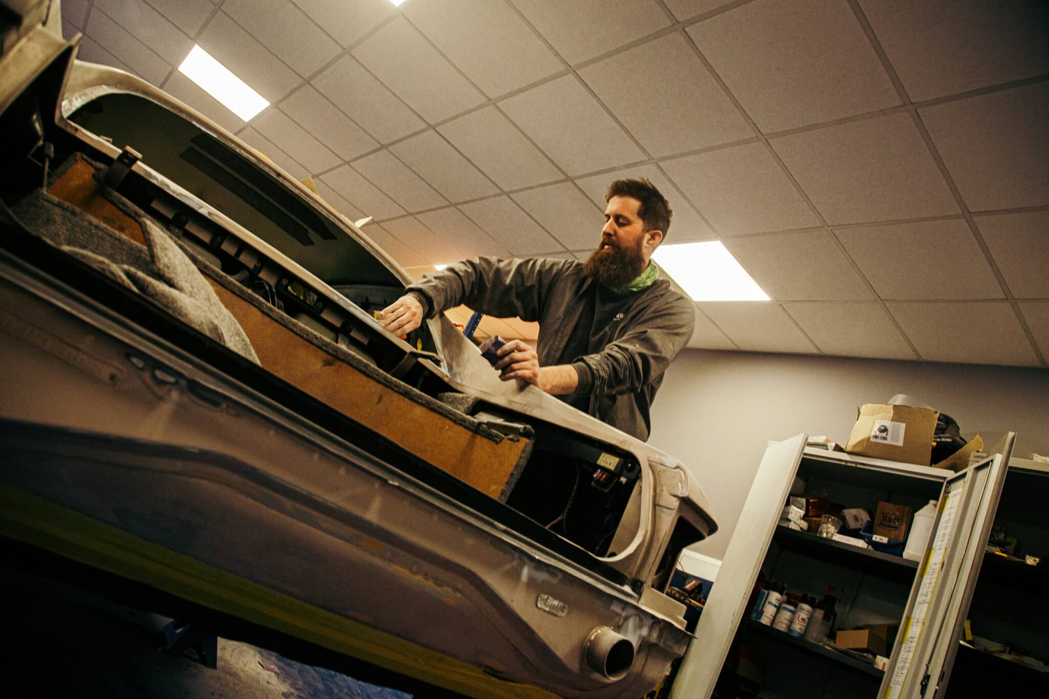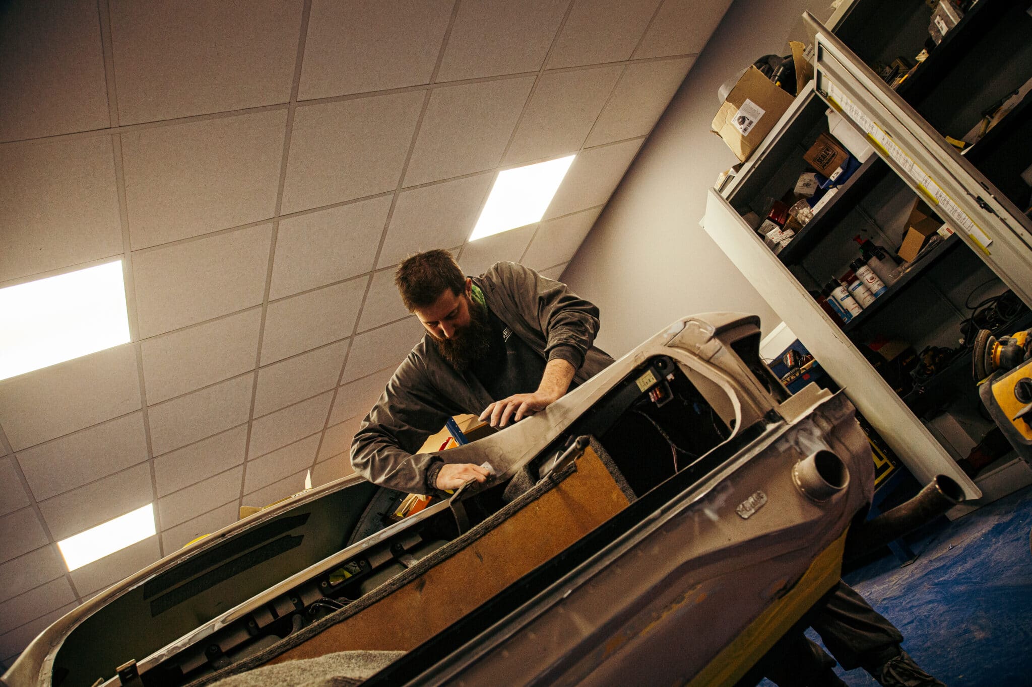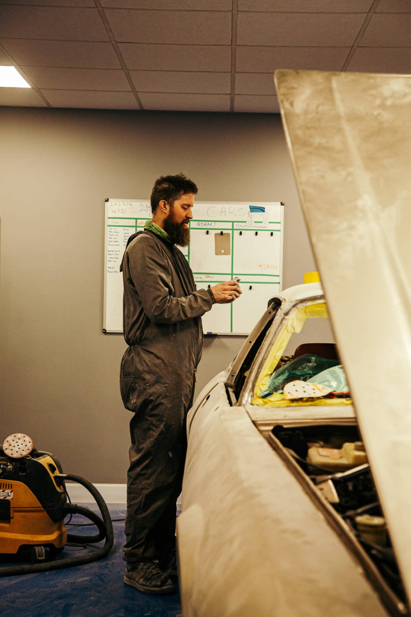 Adam, who is one of the meticulous technicians here at Bridge Classic Cars, takes great pride in everything he does. He’s been working his way through each and every area putting maximum attention into even the smallest area to give this classic Jaguar the best possible finish.