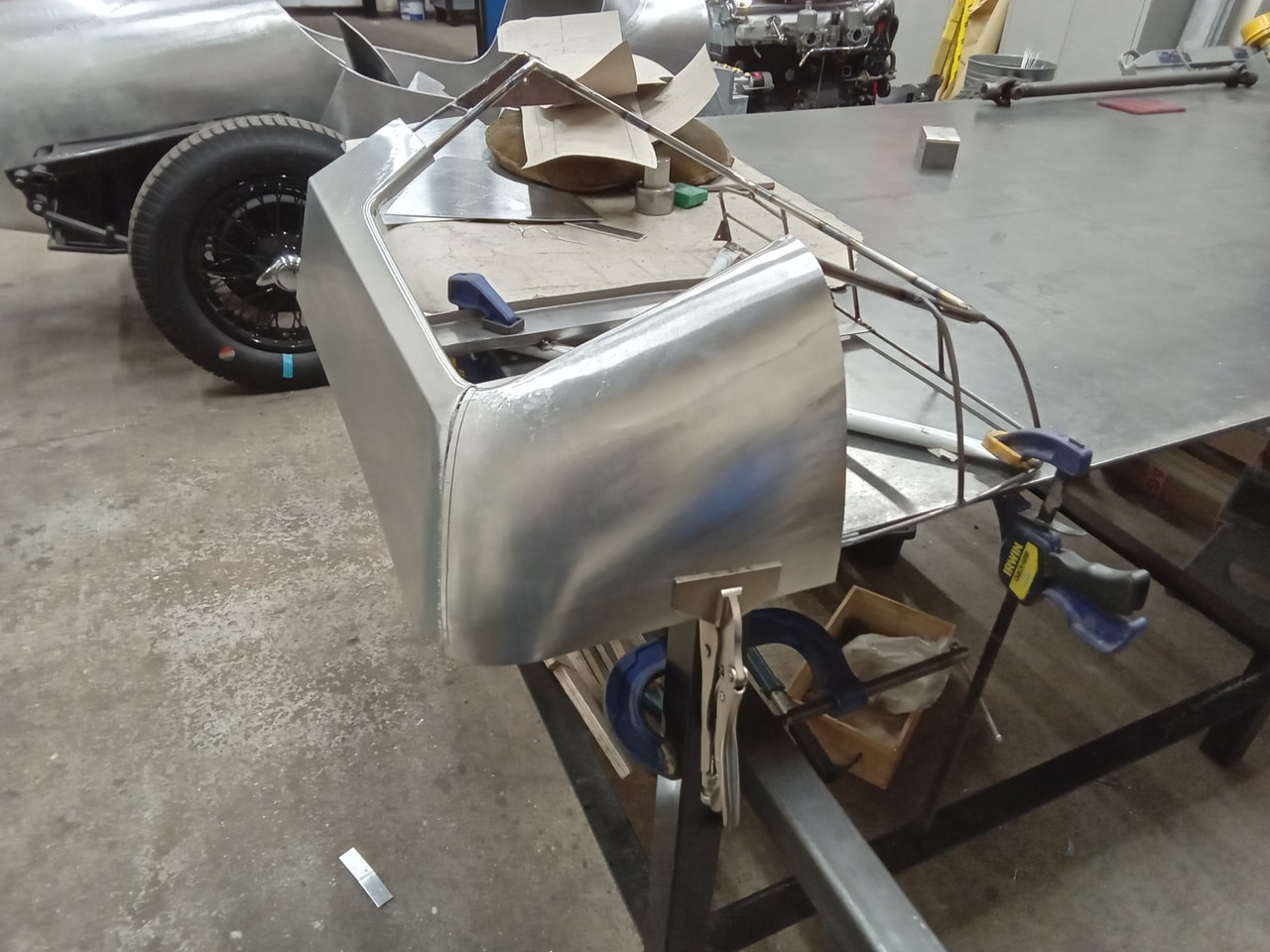 Our amazing fabricator Clinton has been making steady progress on the 1954 Jaguar XK120B. Mostly at the front end, Clinton has been handshaping the various panels for the car.