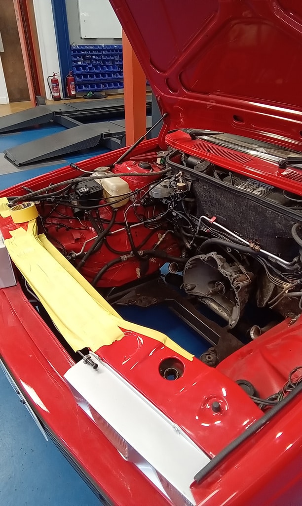 Jonn began preparation work on the engine of our 1987 Maserati BiTurbo, starting with the initial fitting of components and assessing the layout to determine the correct positioning of various parts.