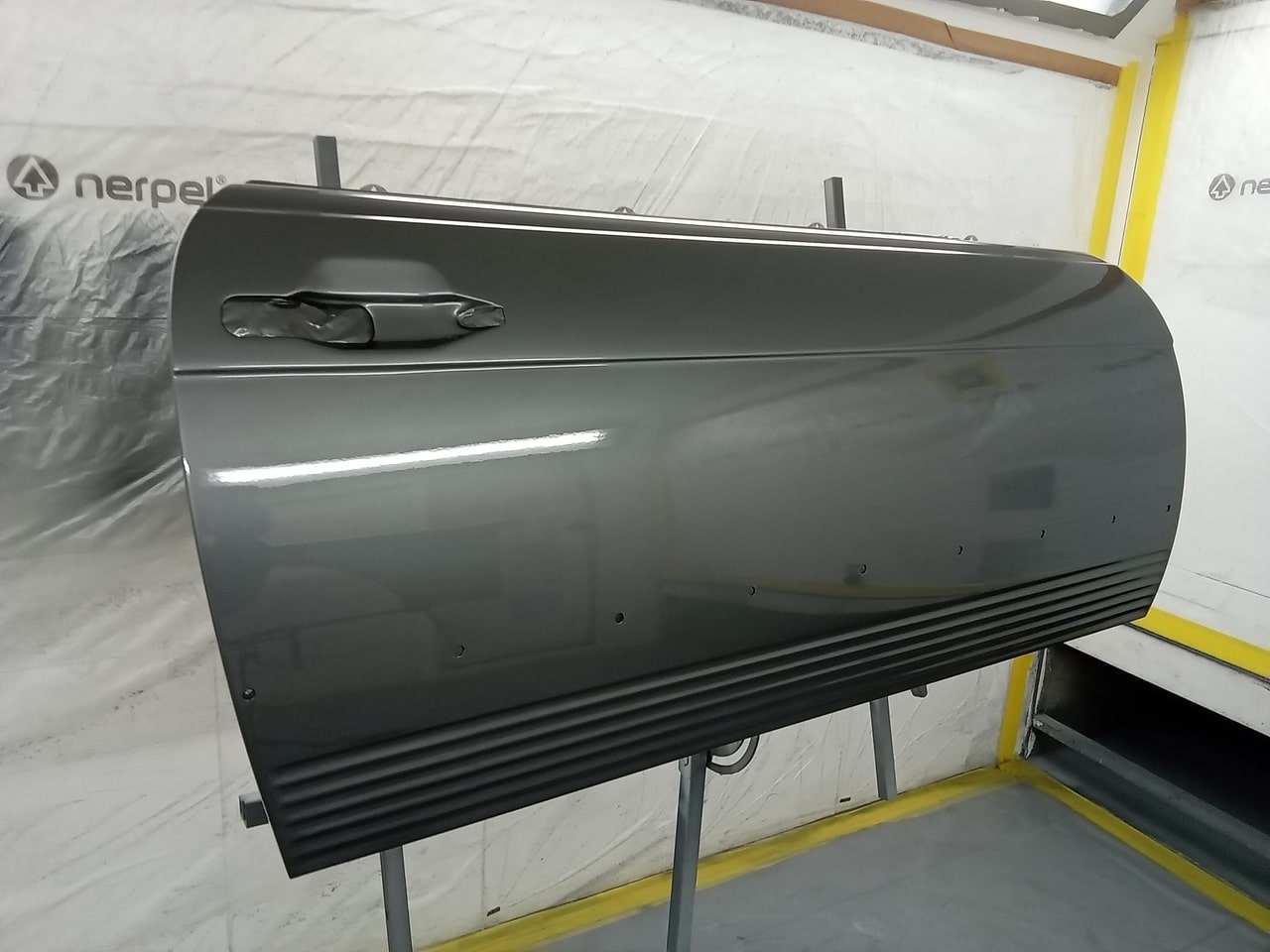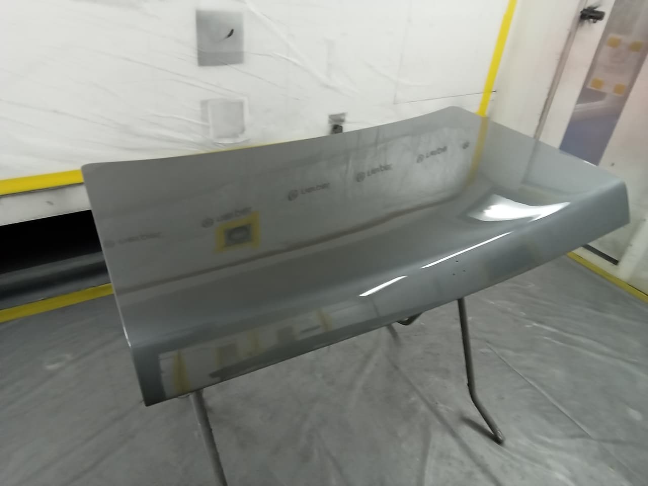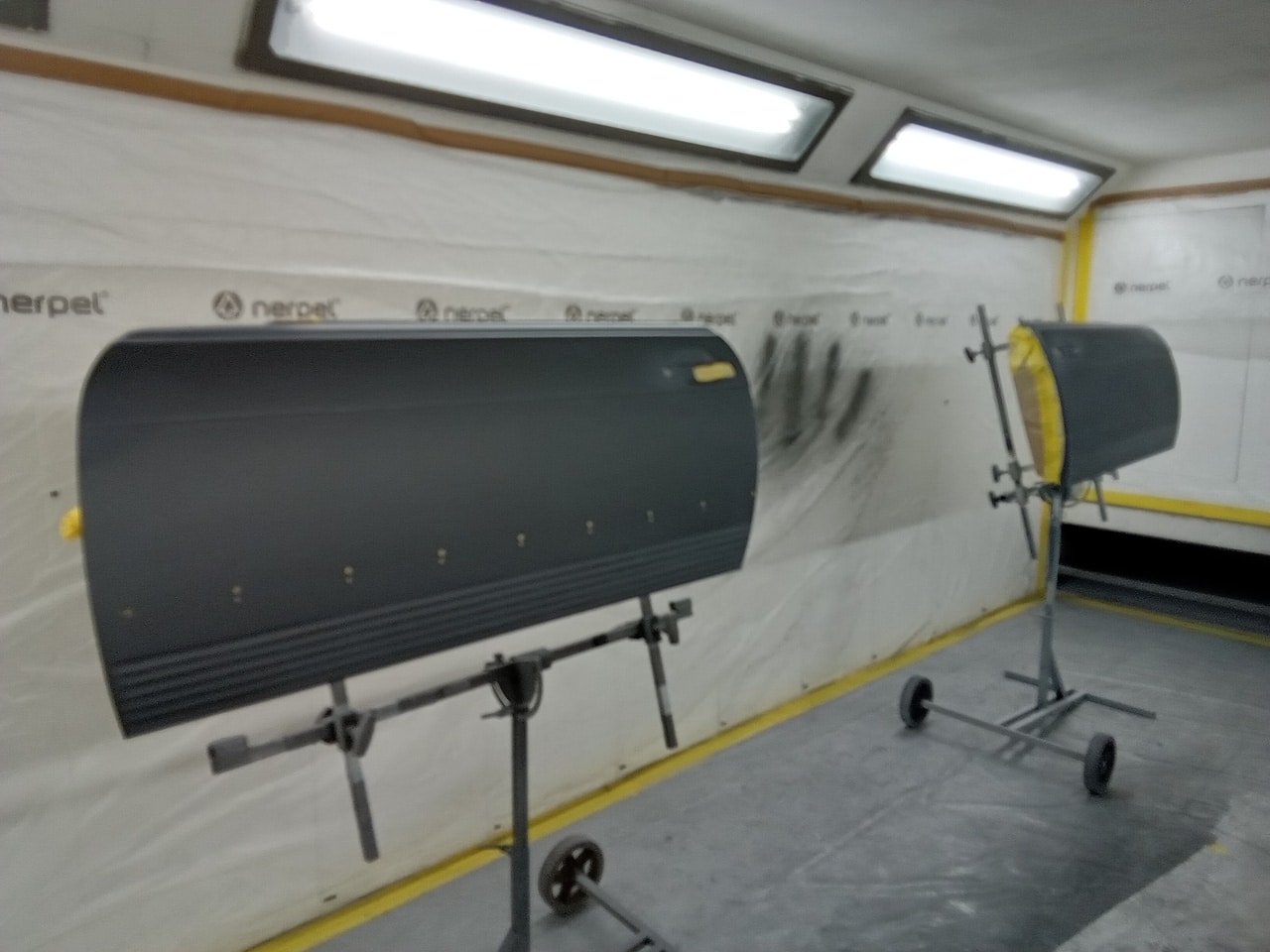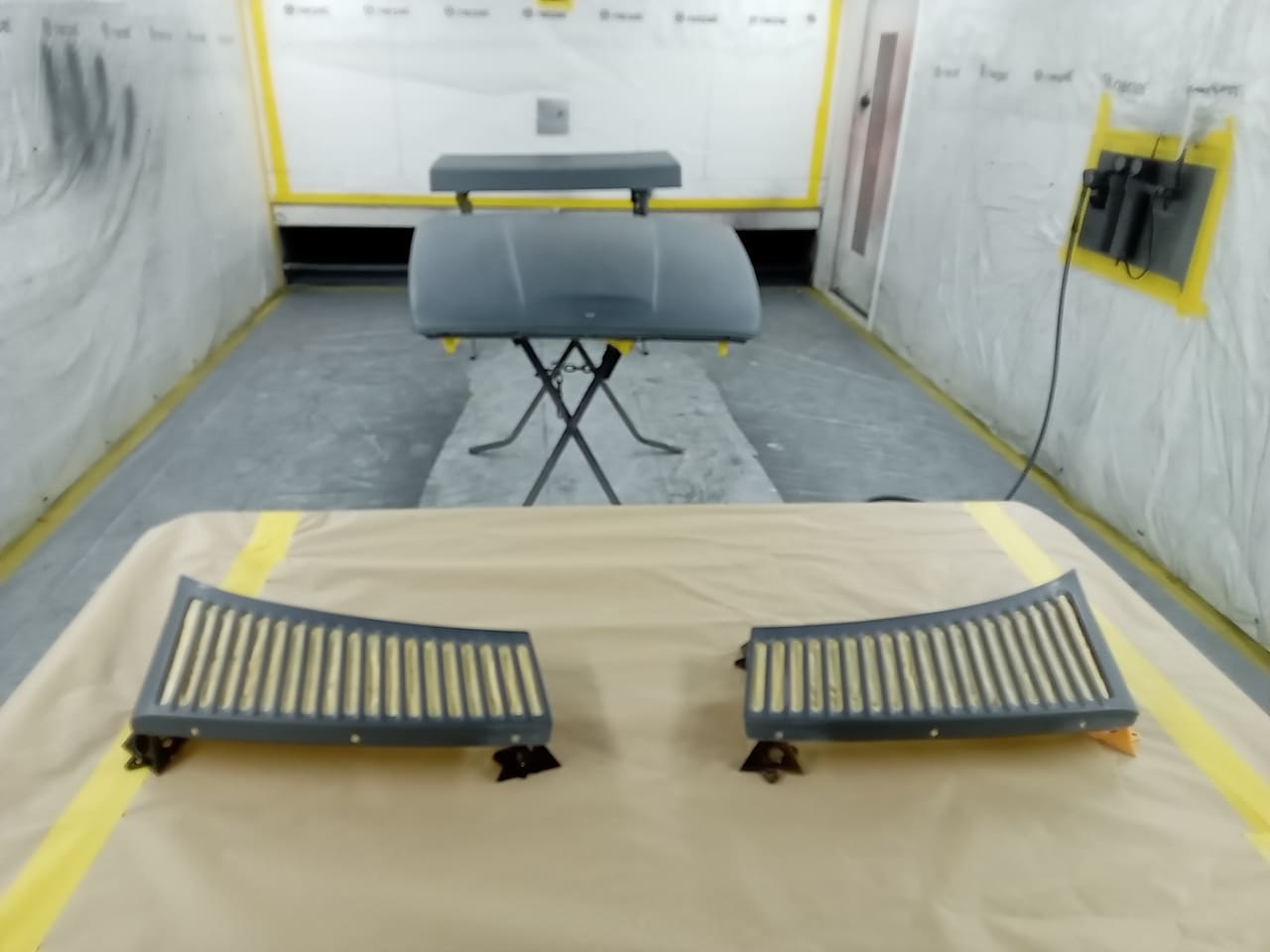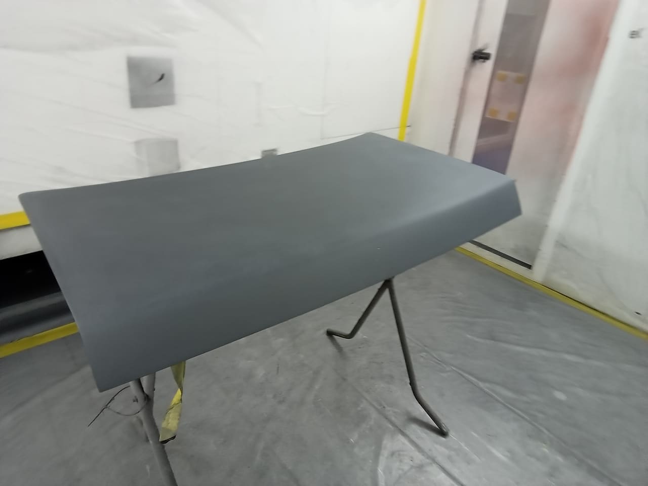 Our paint and body technician Mauro has been working his way through the various parts and panels for our 1987 Mercedes 500SL. With the body shell having been painted in the stunning, glossy Slate Grey last week, Mauro has prepped all of the other pieces to go into the booth to be matched up the shells paintwork, and the results are truly stunning.