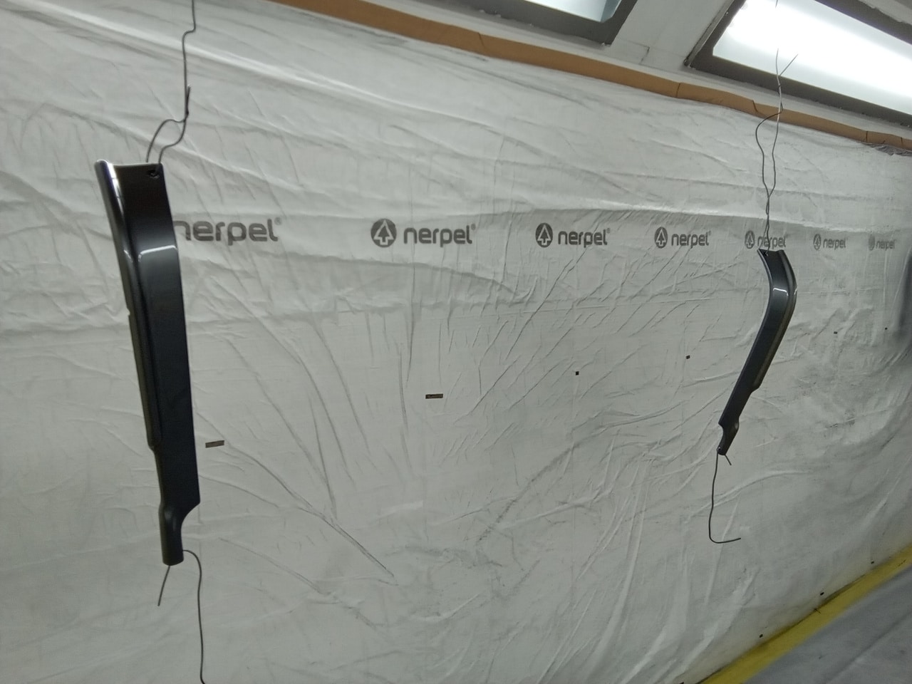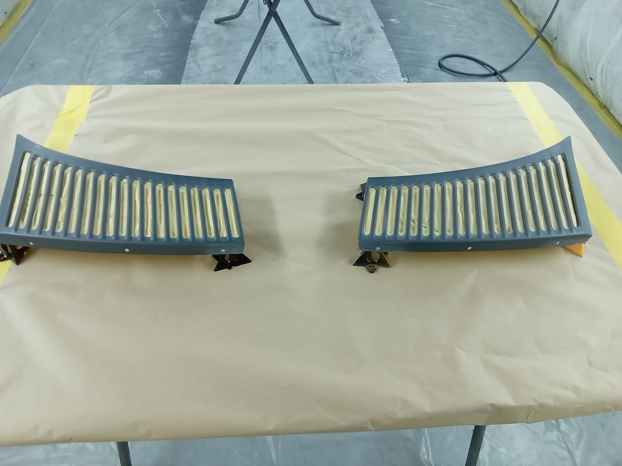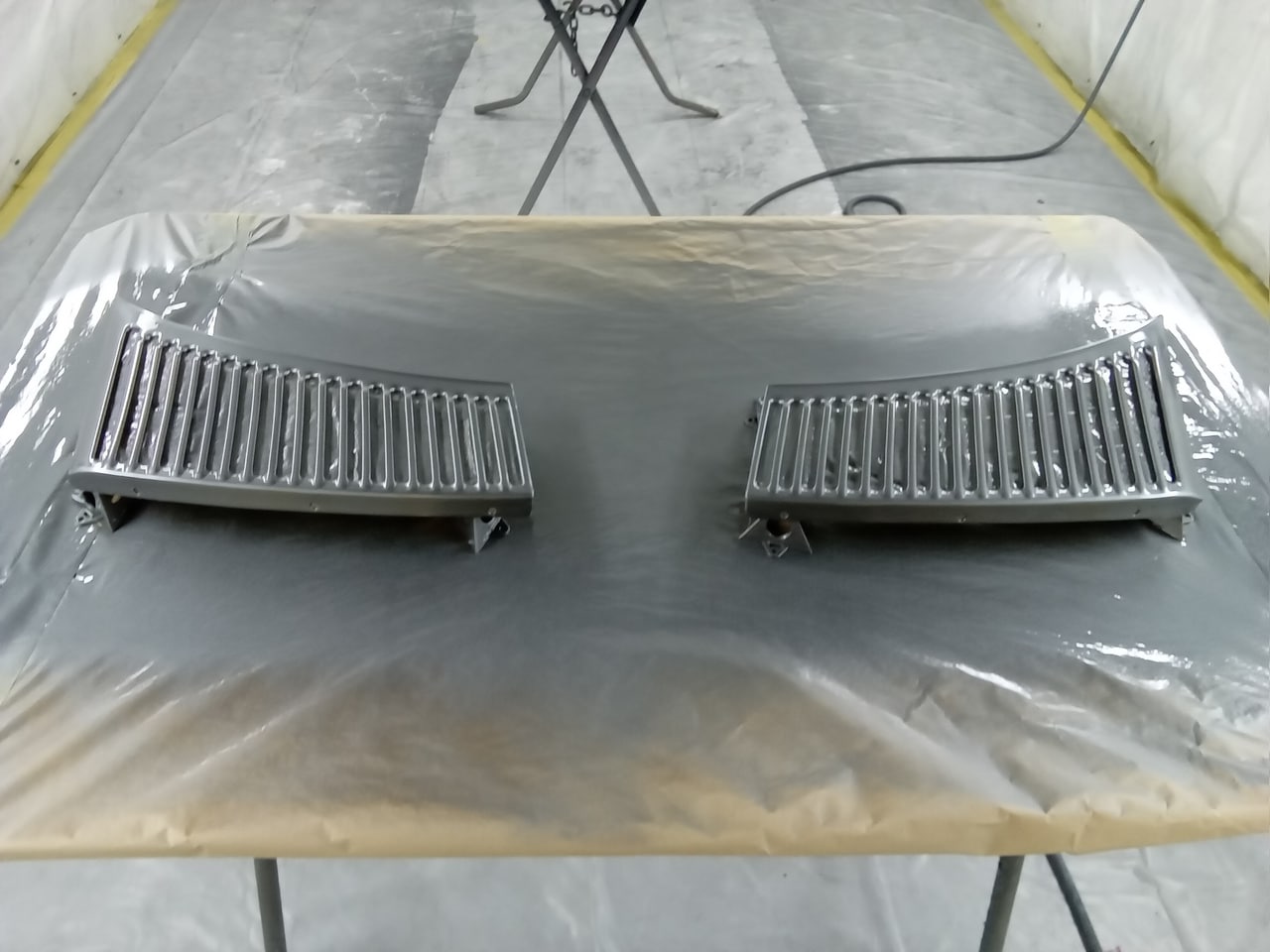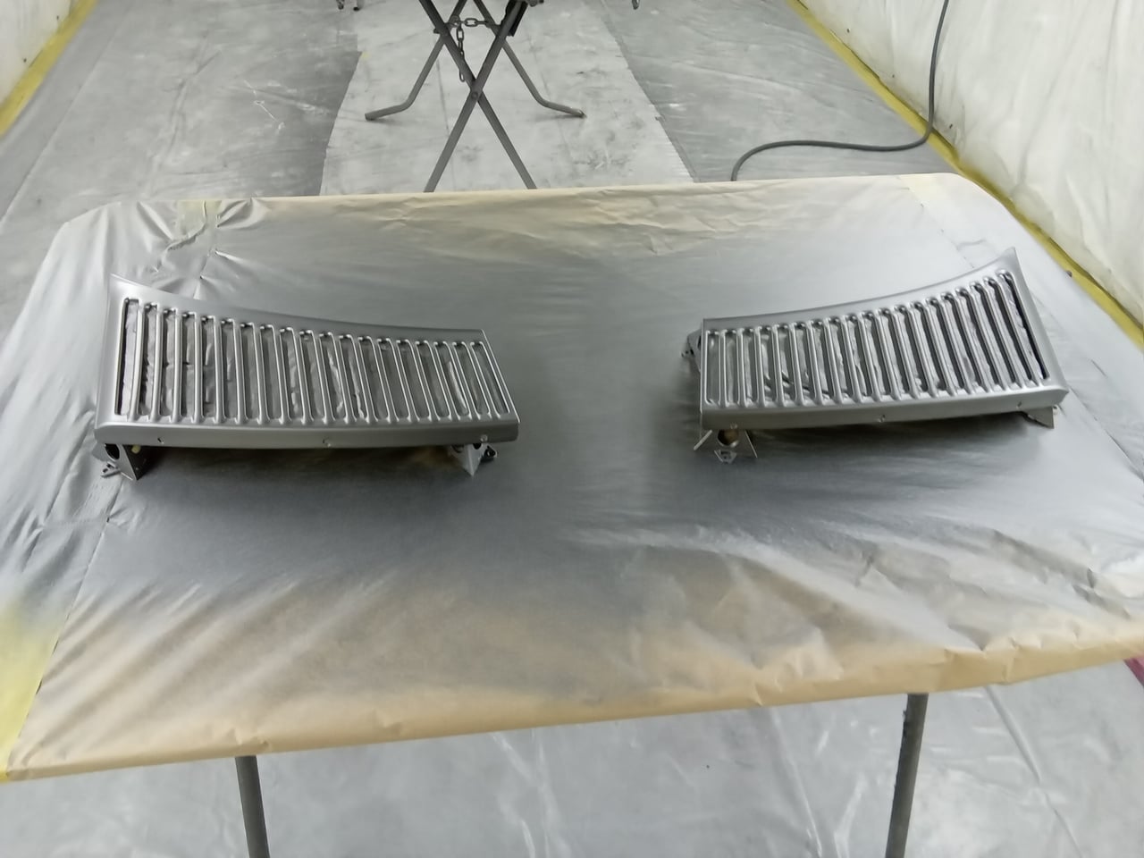 Our paint and body technician Mauro has been working his way through the various parts and panels for our 1987 Mercedes 500SL. With the body shell having been painted in the stunning, glossy Slate Grey last week, Mauro has prepped all of the other pieces to go into the booth to be matched up the shells paintwork, and the results are truly stunning.