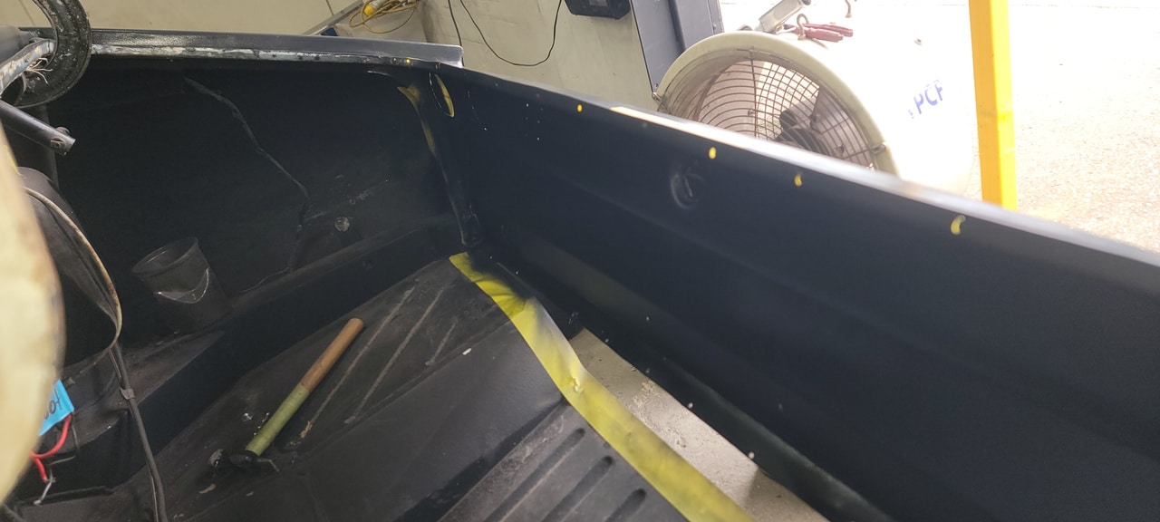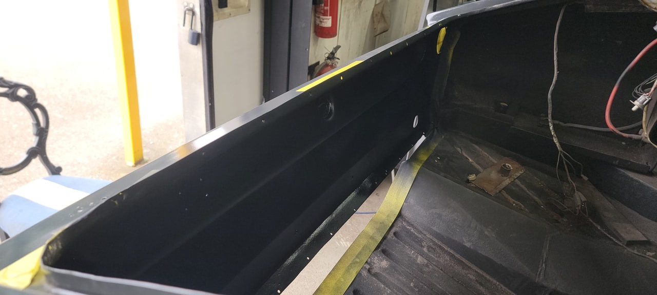 The Bridge Classic Cars fabrication team have been ticking off jobs on the 1970 Aston Martin DBS Vantage here at our restoration HQ. Greg, one of our amazing fabricators and technicians, has been working on repairing, modifying and grafting various peice into the classic Aston Martin. Meanwhile, our transporter co-ordinator Tony picked up a NSF wing for the project.