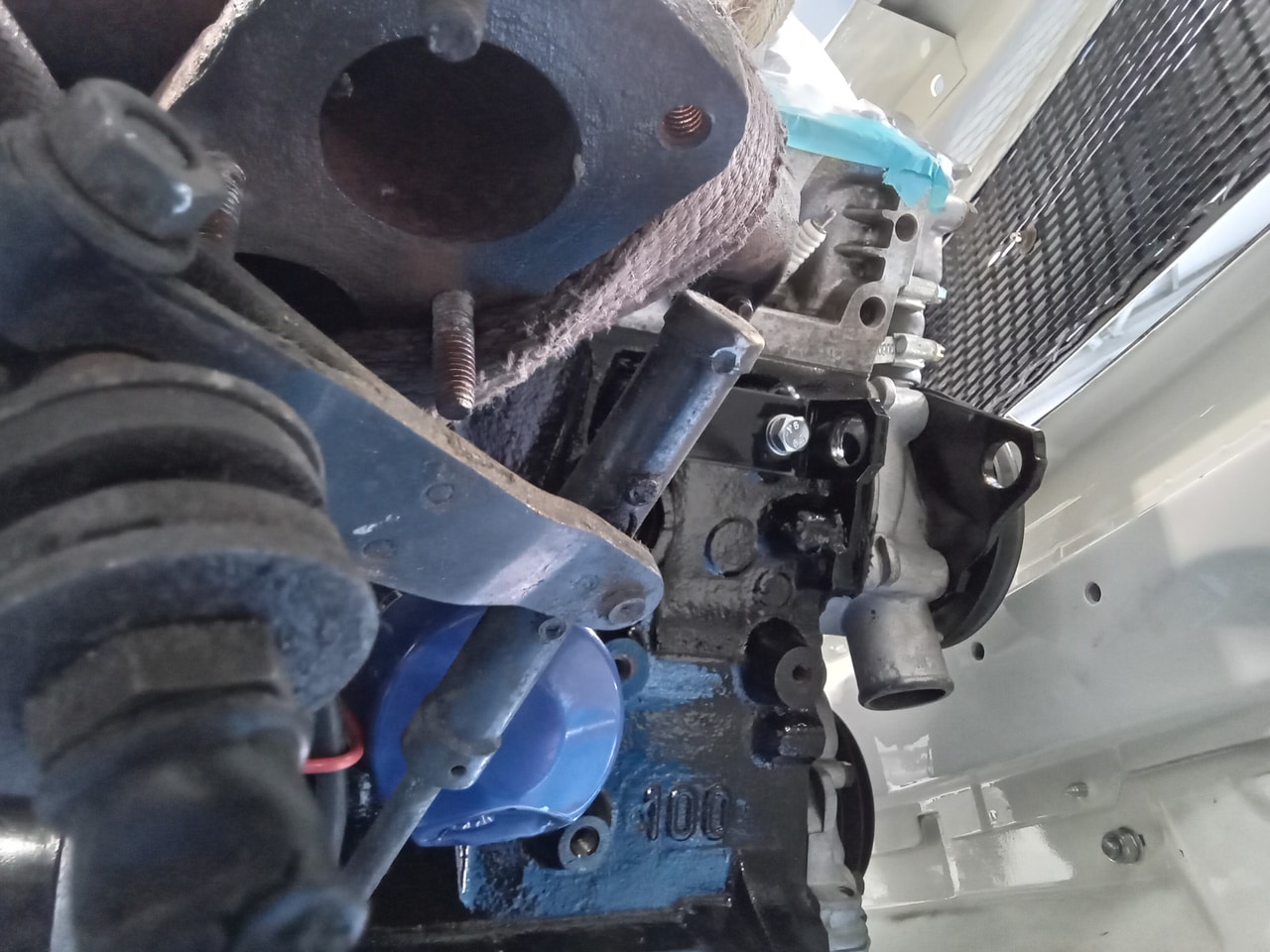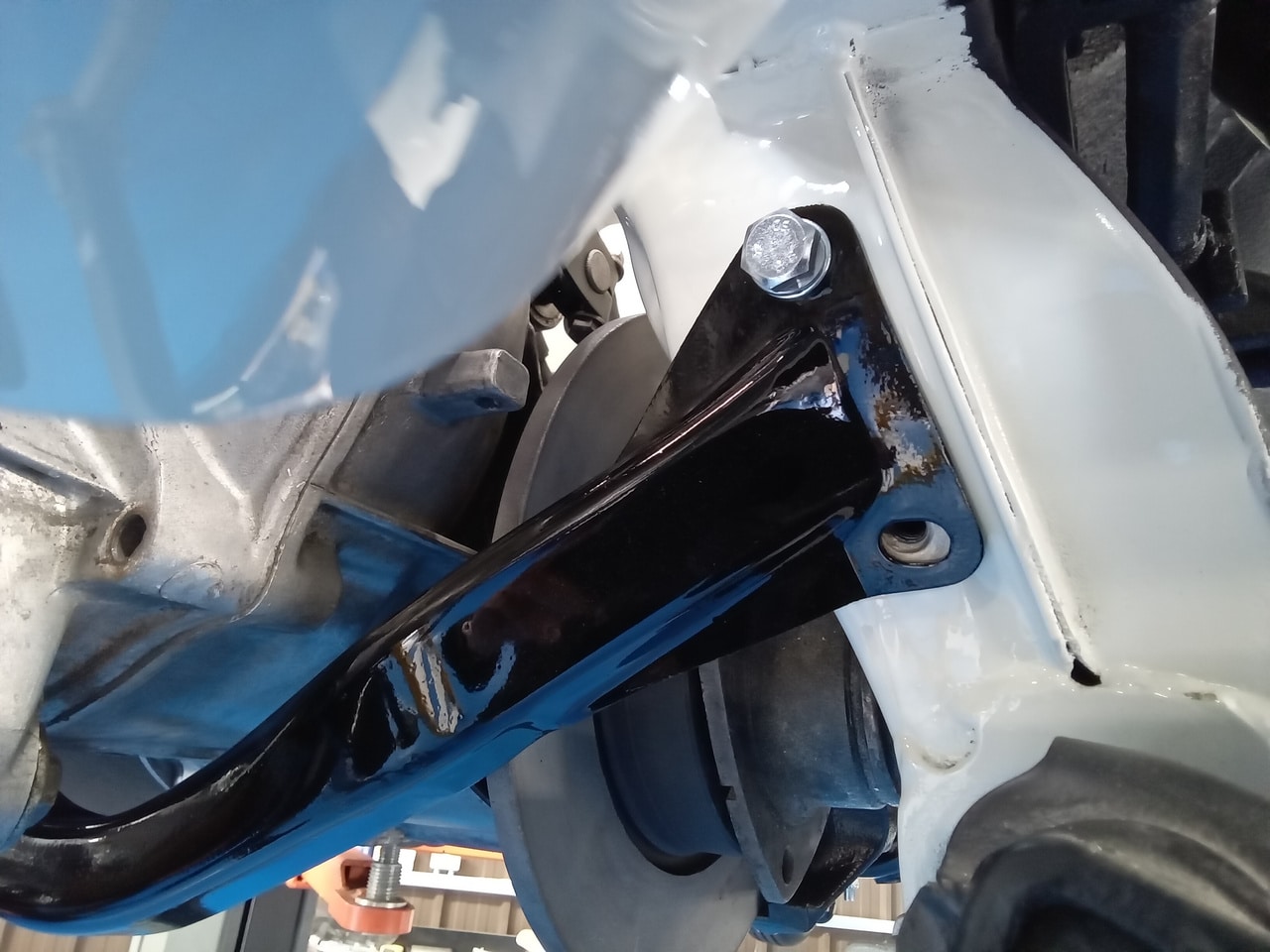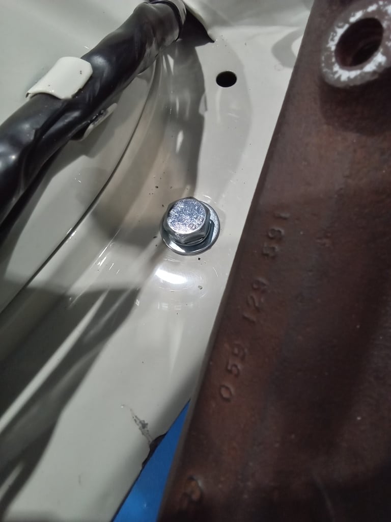 The final piece of the puzzle in this update was Dave having to fabricate a new engine mount for the car. Dave carefully put together a solution which uses a slightly wider opening in the car but now involves a steel tube the bolt feeds through as to not damage the car once it is fully tightened down.