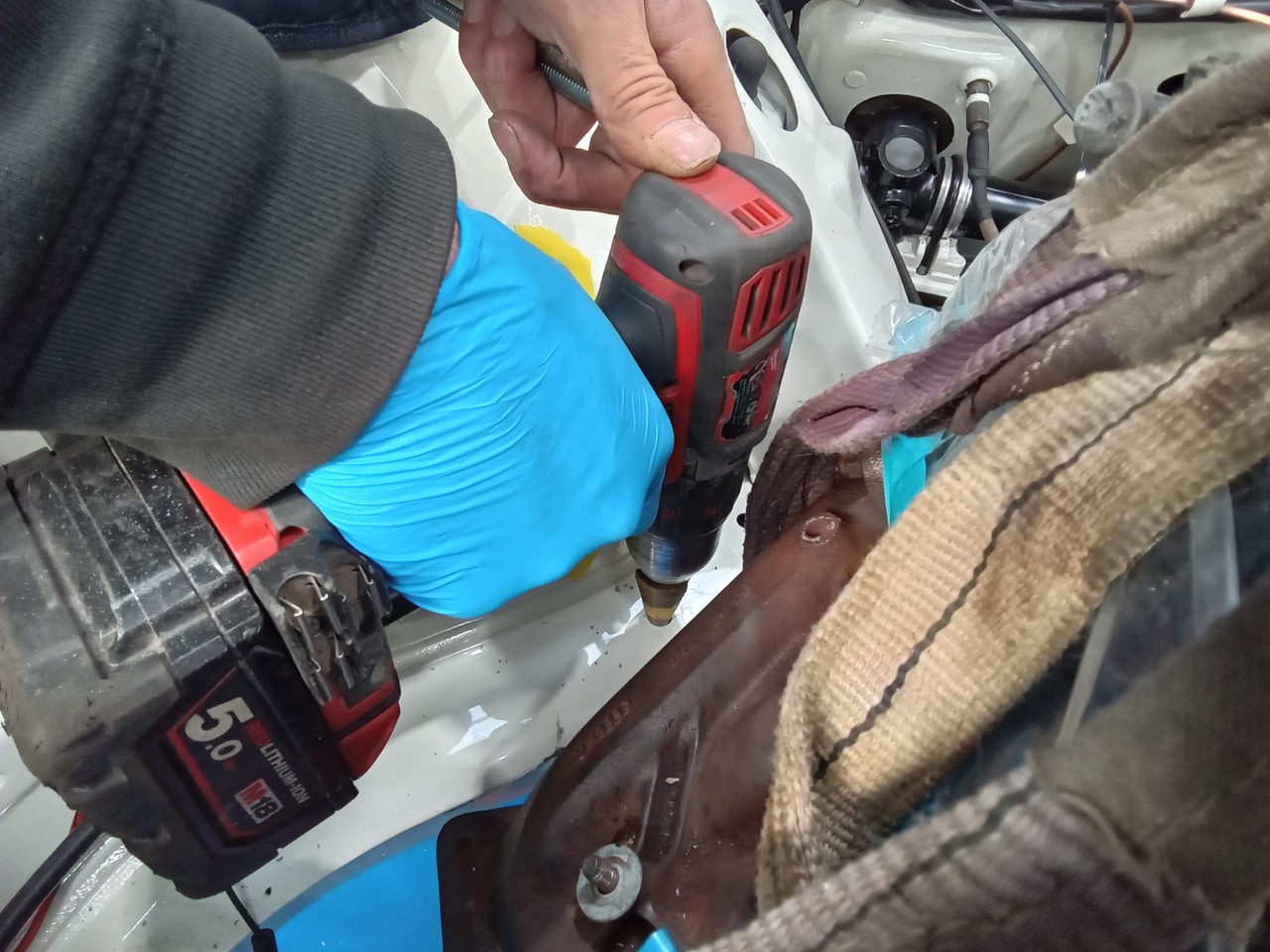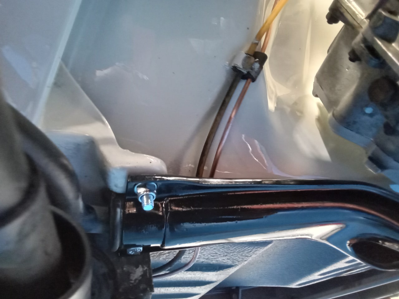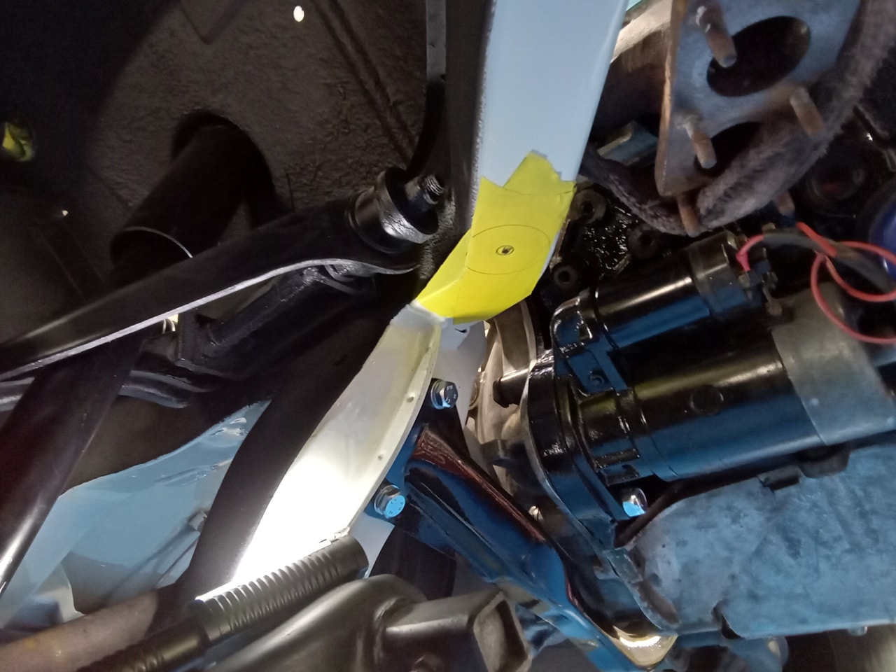 The final piece of the puzzle in this update was Dave having to fabricate a new engine mount for the car. Dave carefully put together a solution which uses a slightly wider opening in the car but now involves a steel tube the bolt feeds through as to not damage the car once it is fully tightened down.