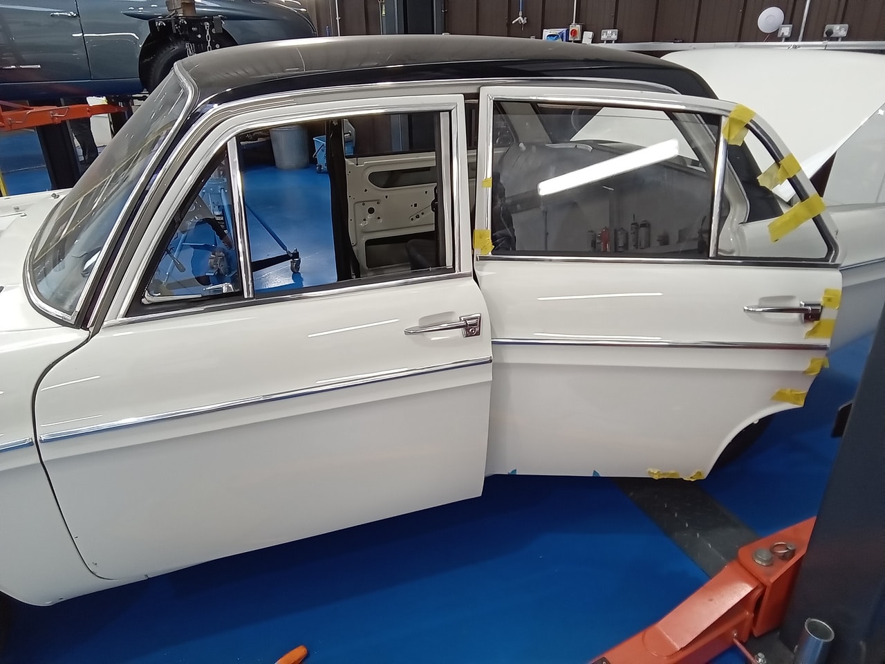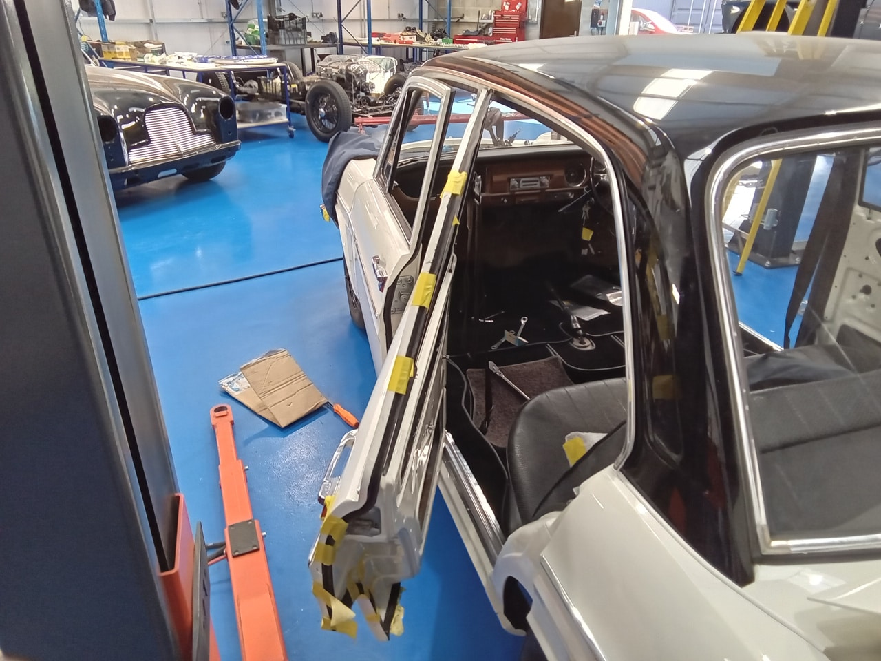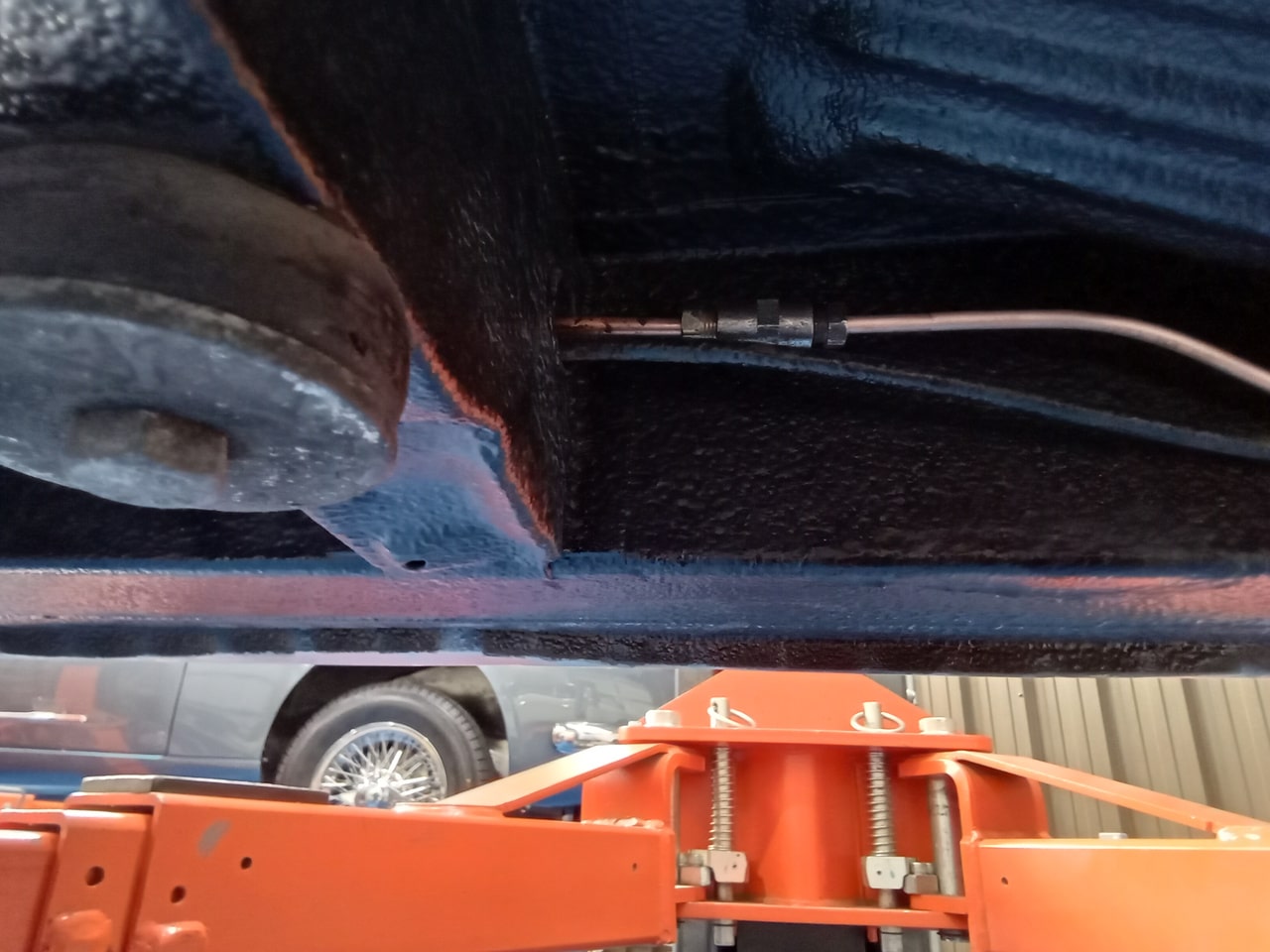 Next up, Dave carefully began to hang the doors and very meticulously adjust the doors on the hinges correctly before moving underneath the car. Dave has had to fabricate several of the mountings for this car as they are no longer available and spare parts are hard to come by including a few of the gearbox mounts.