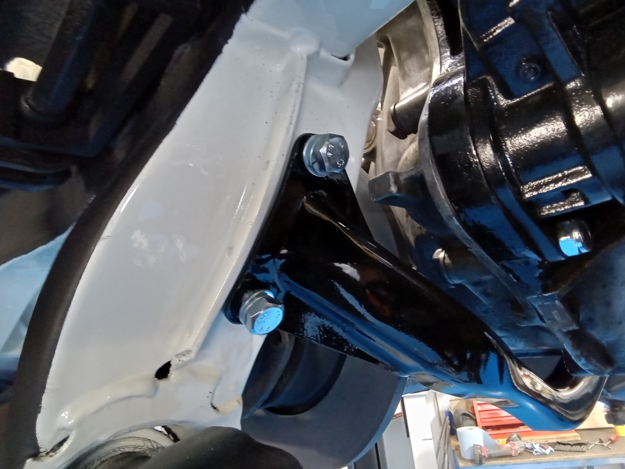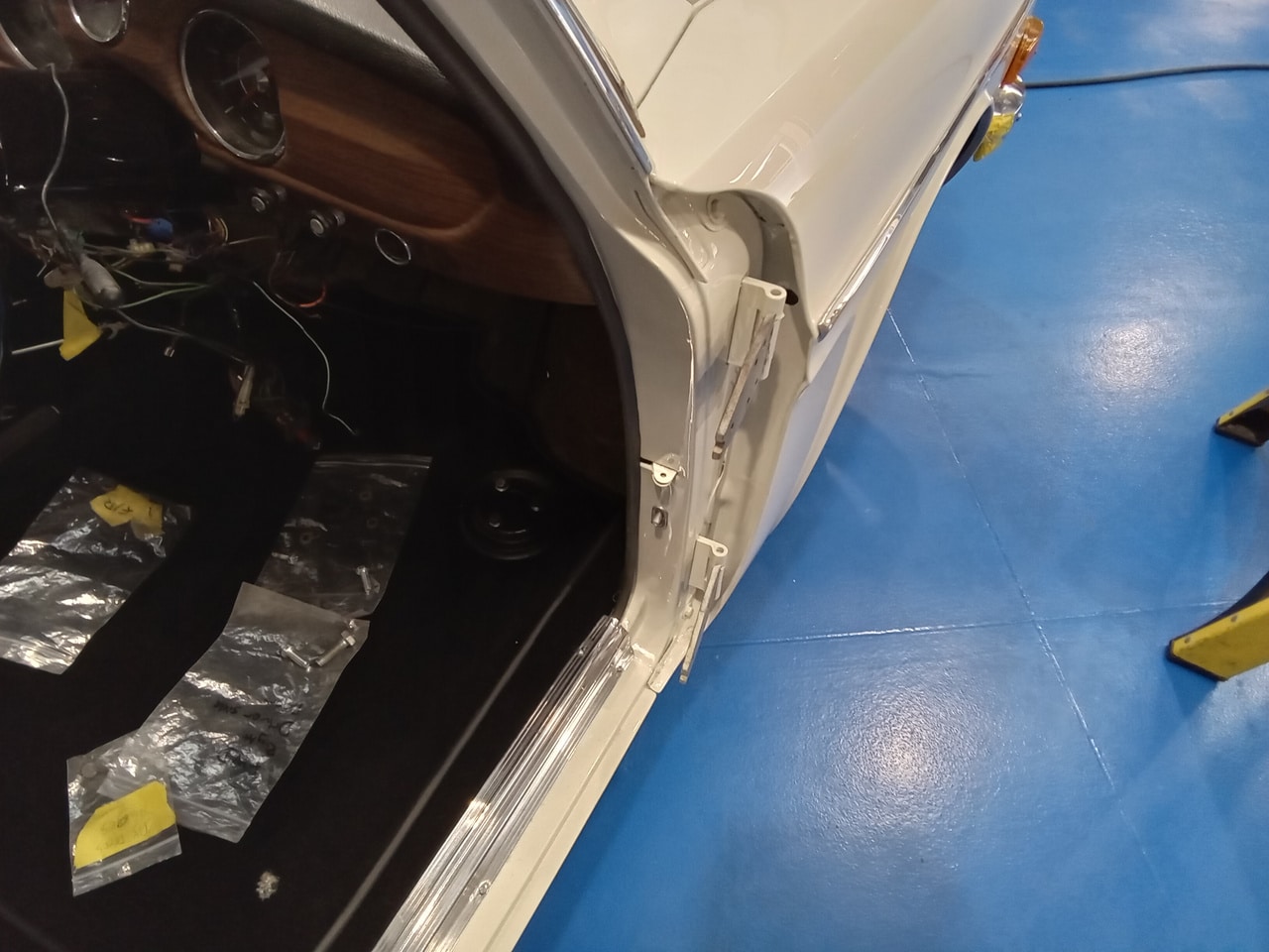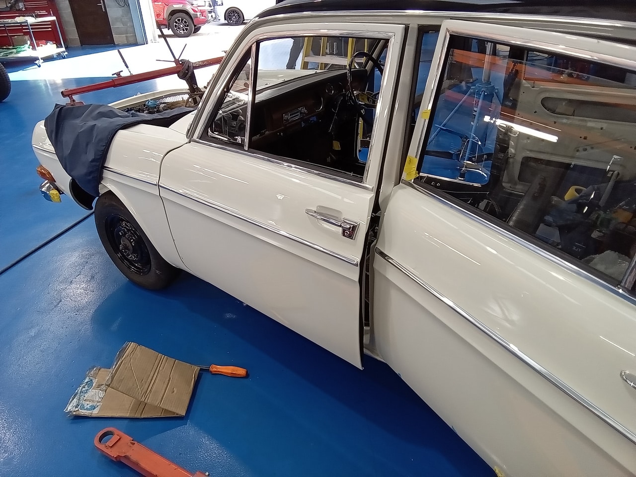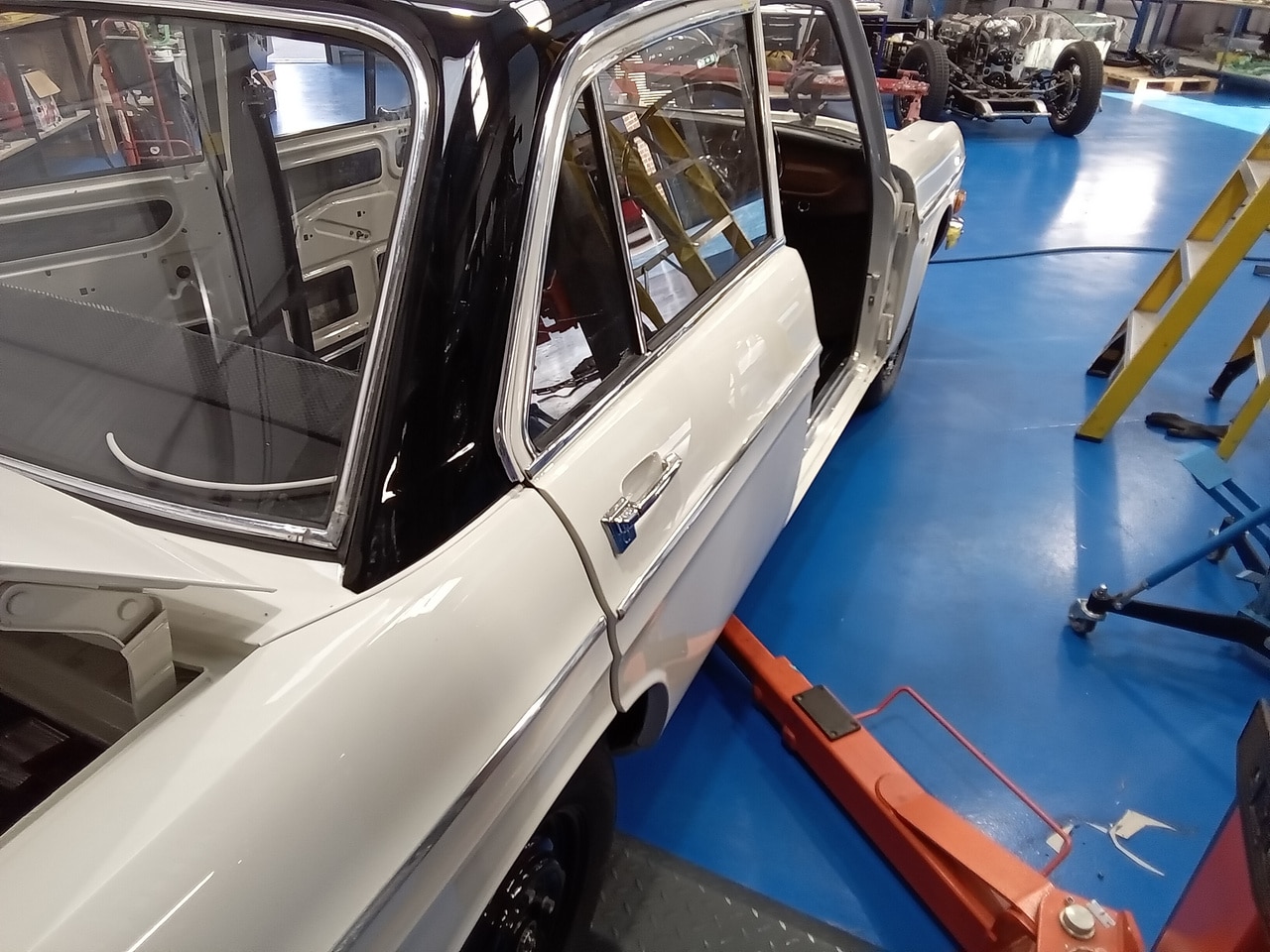 Next up, Dave carefully began to hang the doors and very meticulously adjust the doors on the hinges correctly before moving underneath the car. Dave has had to fabricate several of the mountings for this car as they are no longer available and spare parts are hard to come by including a few of the gearbox mounts.