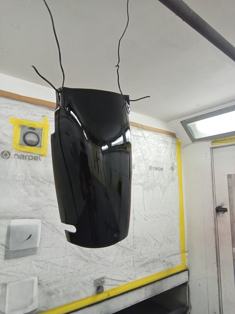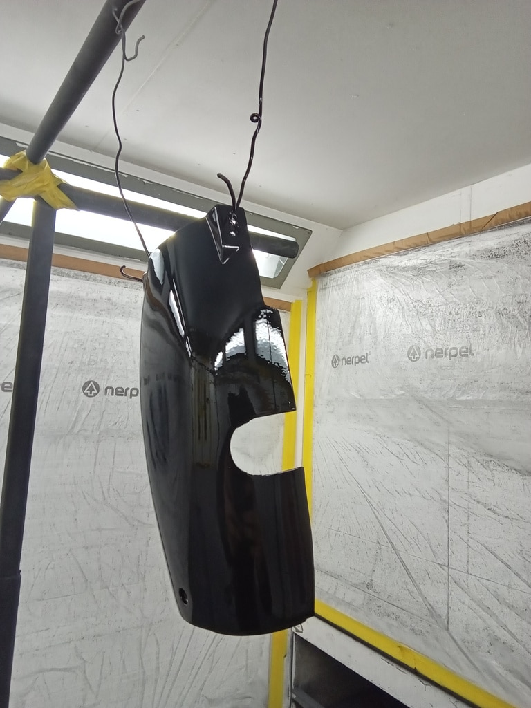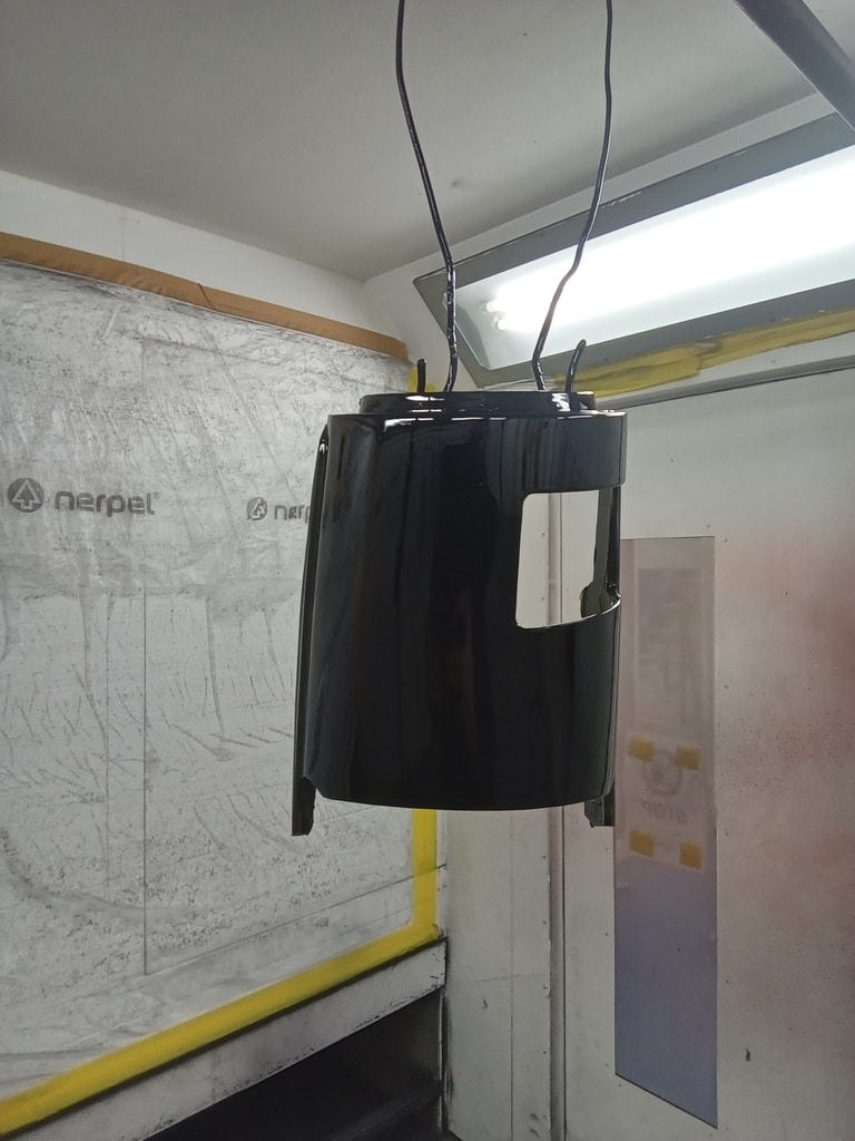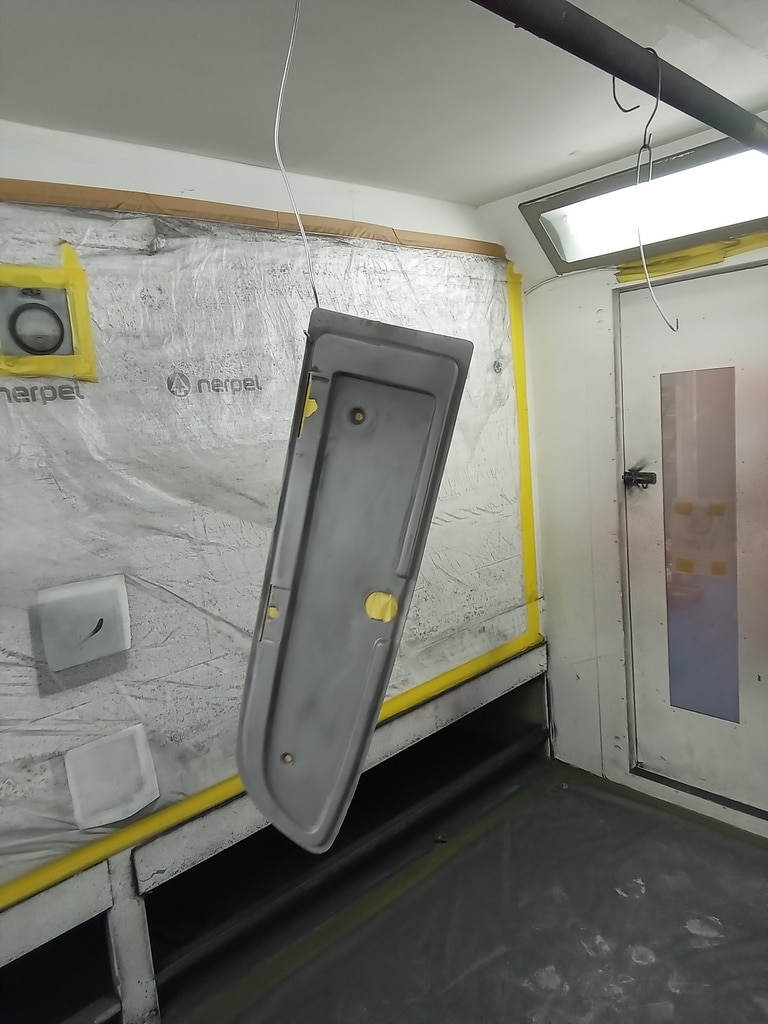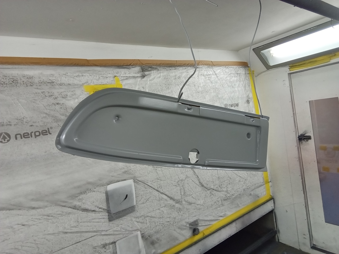 At the same time that this was going on in our restoration workshops, our paint and body team have been getting the last few bits and pieces painted and readied for the car. The glove box was sandblasted before being cleaned, painted and matte clear coated to look like the original piece, as well as the steering wheel shroud in beautiful gloss black.