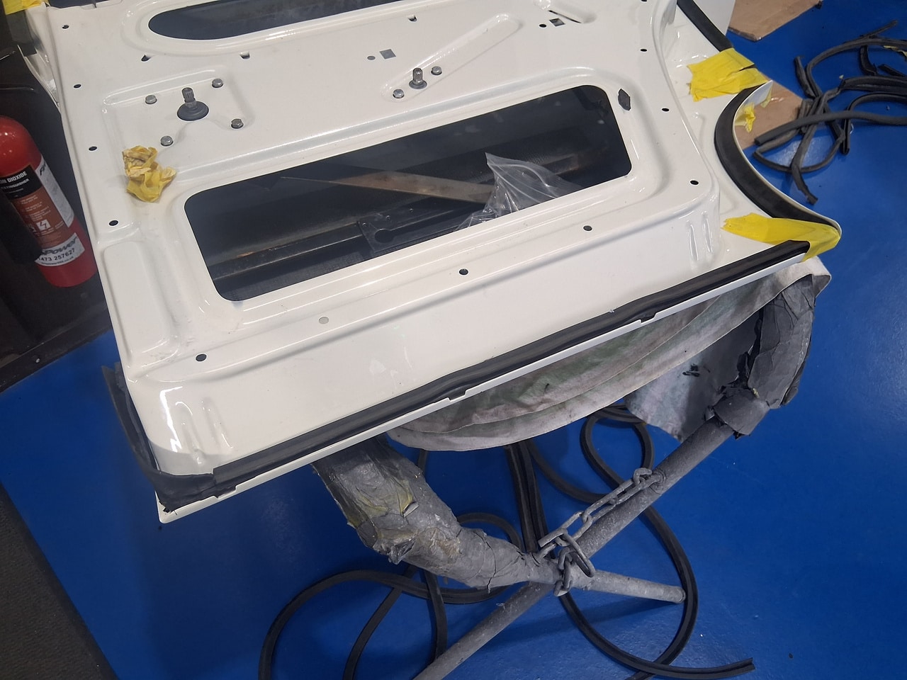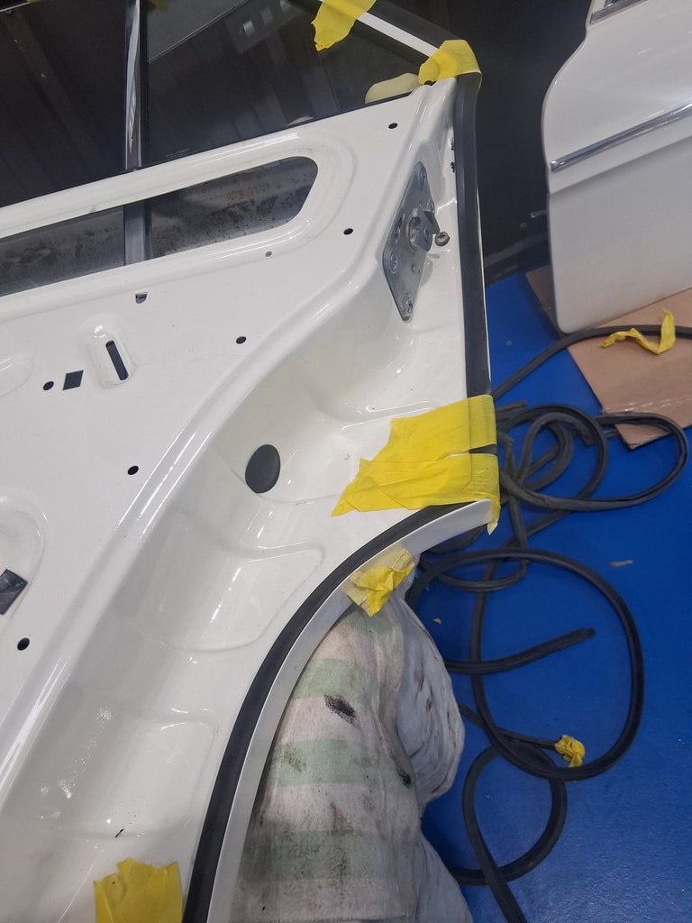 Across the workshop, our workshop manager John has been helping out to build up the doors on the car. Each of the doors needed a full set of seals installed into them, however no one actually makes those deals anymore and don’t share them between models. So, our team has been making the entire set of door seals from scratch just for this car.