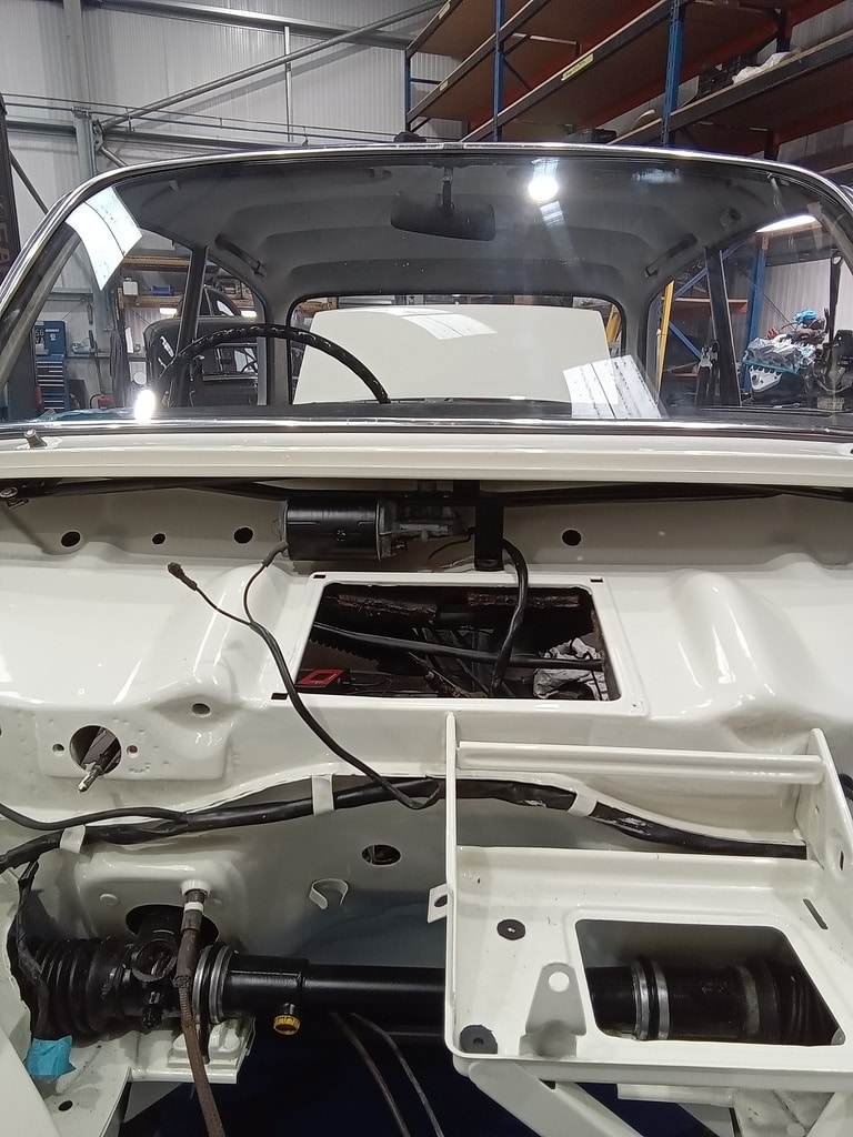 The Bridge Classic Cars team, across every department, have been working hard on our 1969 Audi 70L here at our Suffolk HQ. The restoration team have been busy laying the cars wiring harness through the firewall and throughout the car along with some of the under-bonnet pieces such as the fuse box and the wiper motor.