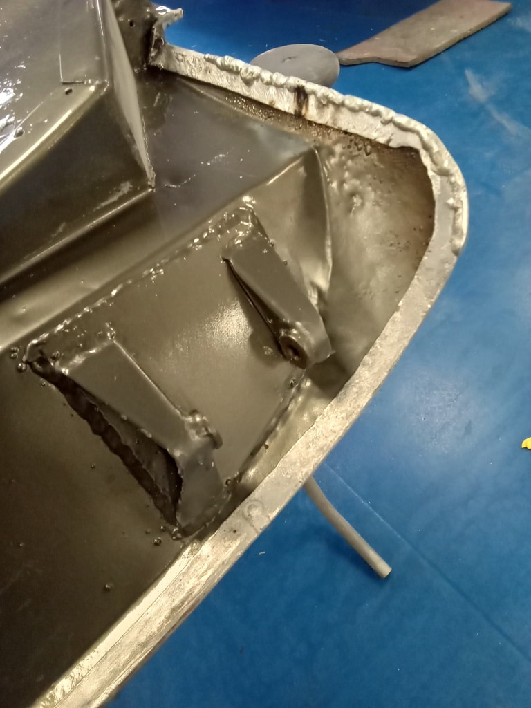 Although the 1955 Aston Martin DB2/4 Drophead may be rare, each individual car is unique and different to all the others. The Bridge Classic Cars paint and body team are currently in the process of gapping each invidual panel and section of the classic British convertible to ensure an even and uniform gap through the entire car. Areas of each panel have been carefully sanded and adjusted by our technician Mauro for the best fit, the best finish and the cleanest look. One of the big parts of acheiving that has been his adjustement to the check straps, limiting the amount of movement so as to not bend or stretch any of the hinges which can pull the panel out of shape and alignment.