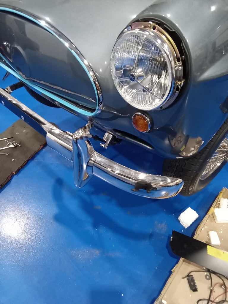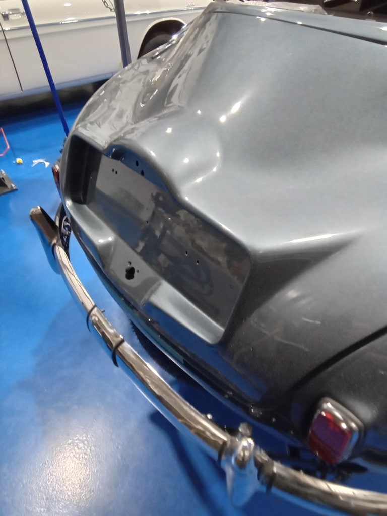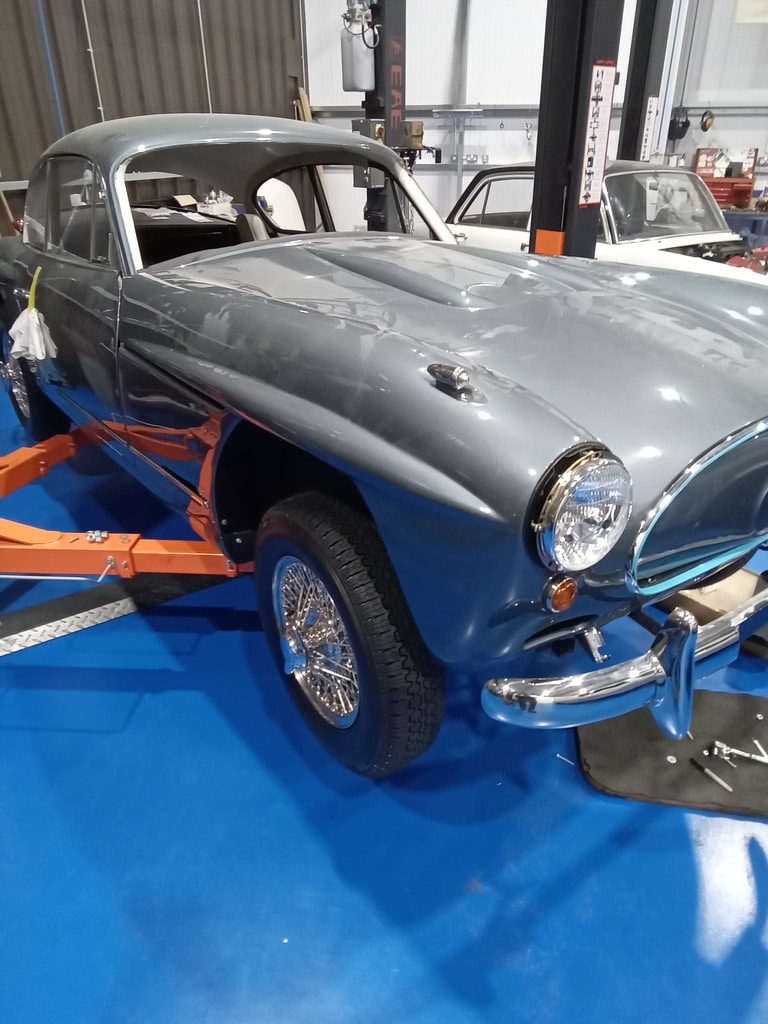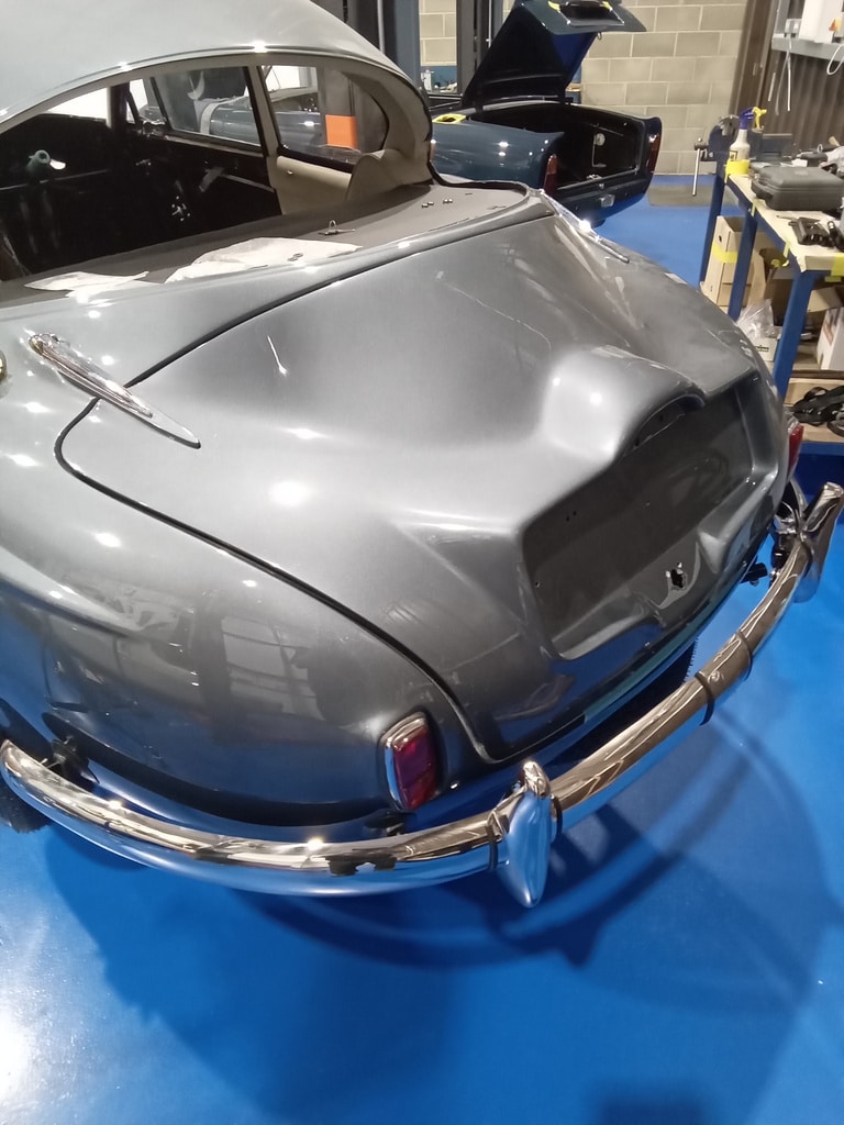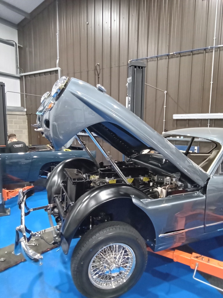 Another Jensen 541 at the Bridge Classic Cars HQ is this 1960 Jensen 541R that the restoration team are building from the group up for a customer. With most of the jobs complete under the bonnet, with the exhaust and inlet manifolds fitted to the 4-litre engine, the team here at our Suffolk workshops could begin to fit the one piece bonnet as well as the rear decklid.