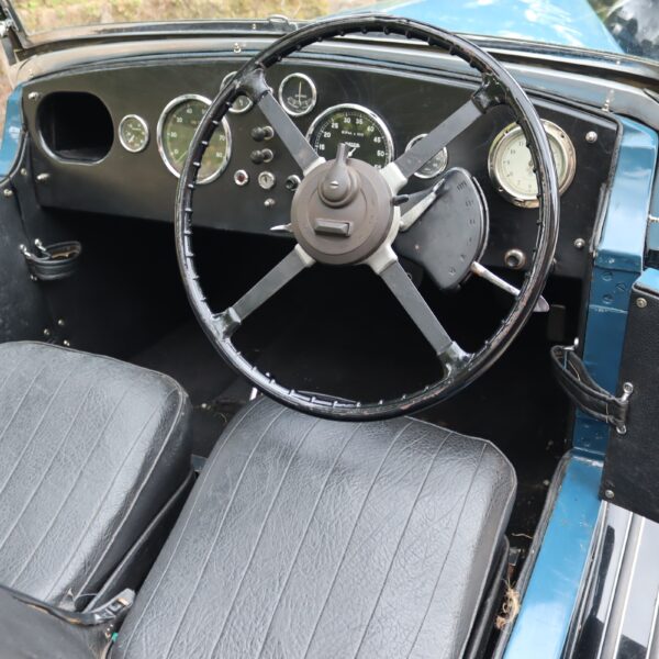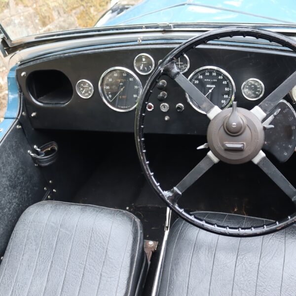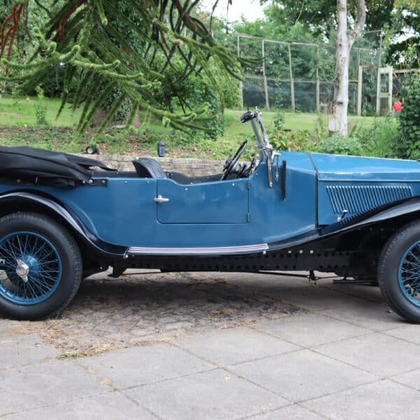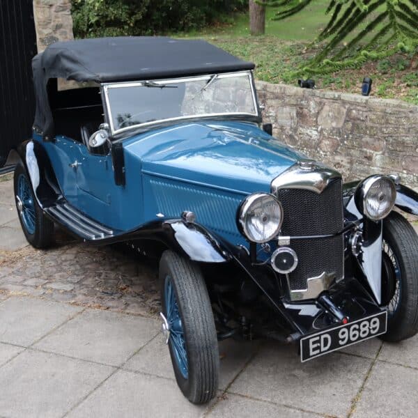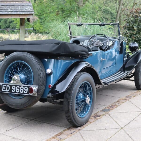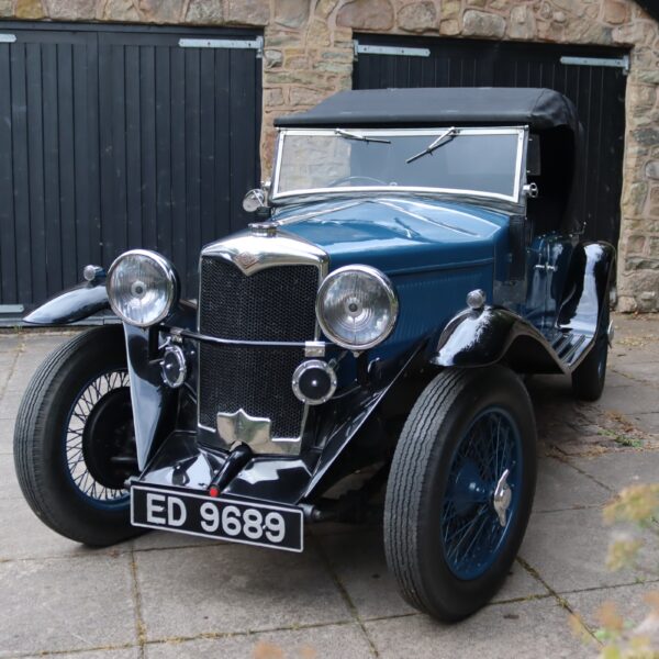 Understood to have been first registered in Warrington in January 1936, ED 9689 was originally a Merlin saloon but by the early 1960s had been rebodied with MG Tourer-style coachwork. By the late 1970s it had received an all-aluminium four-seat tourer body as presented today. In current ownership since 2014, during which time the wings and wheels have been repainted and a new dynamo installed, it remains in fine condition. The dash has also been replaced with a more period looking piece and trafficators are fitted. This stylish Riley special is supplied with a hood cover, tonneau and side screens, history file, period photos, buff logbook and current V5c document.